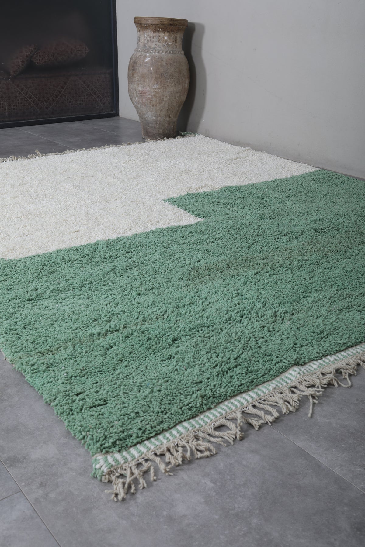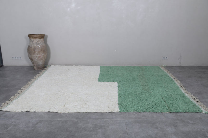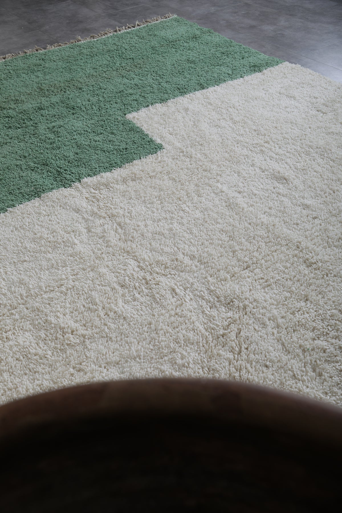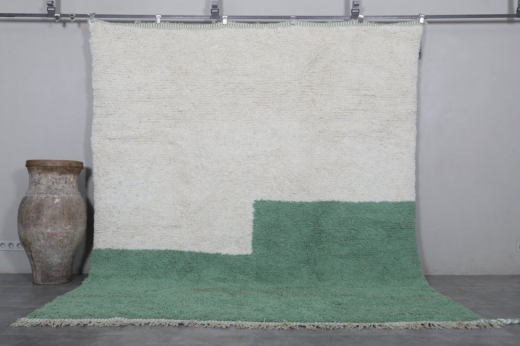 Large Moroccan rug - 8.5 x 10.2 Feet, green and cream color block | Handwoven berber style