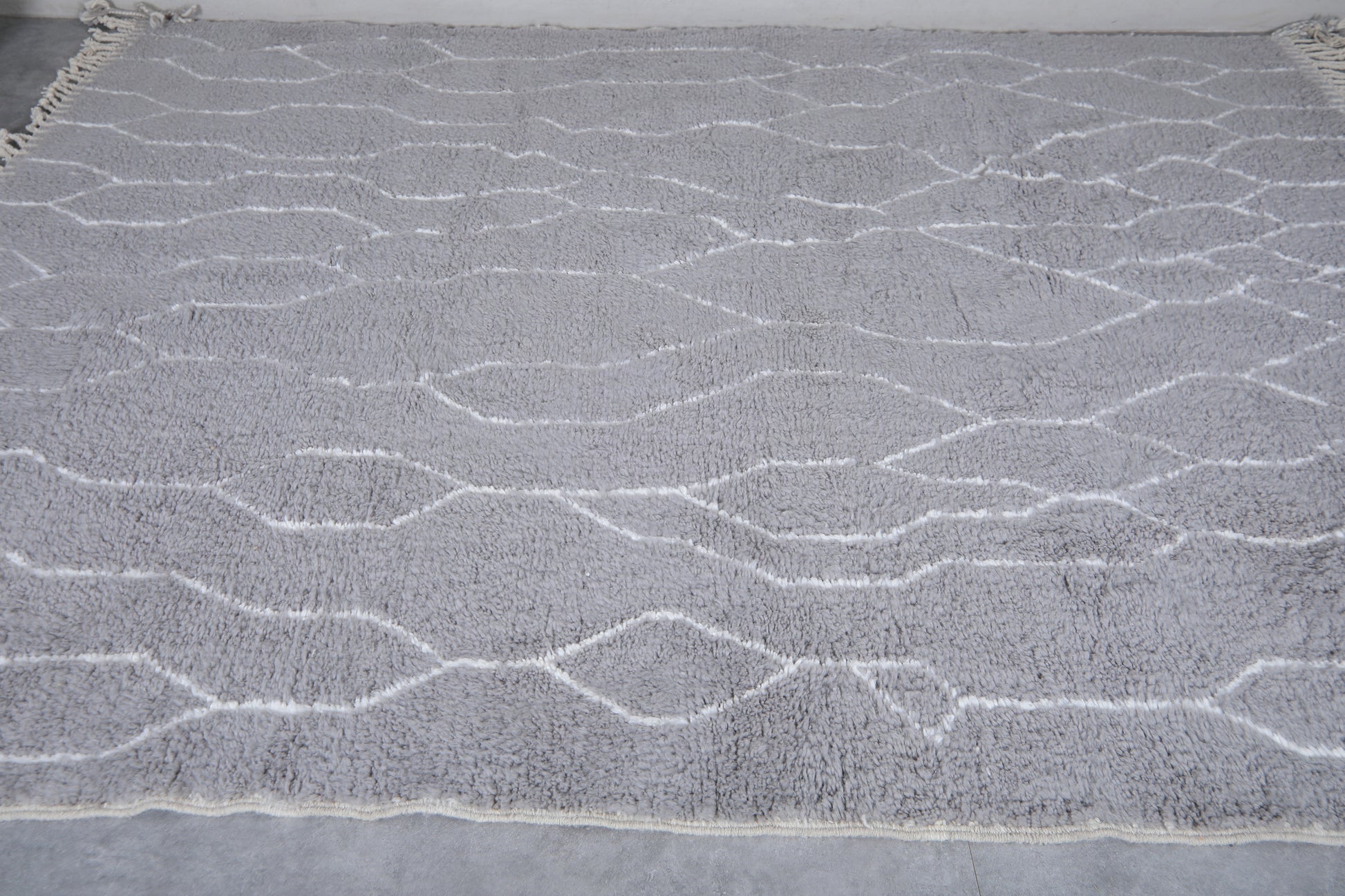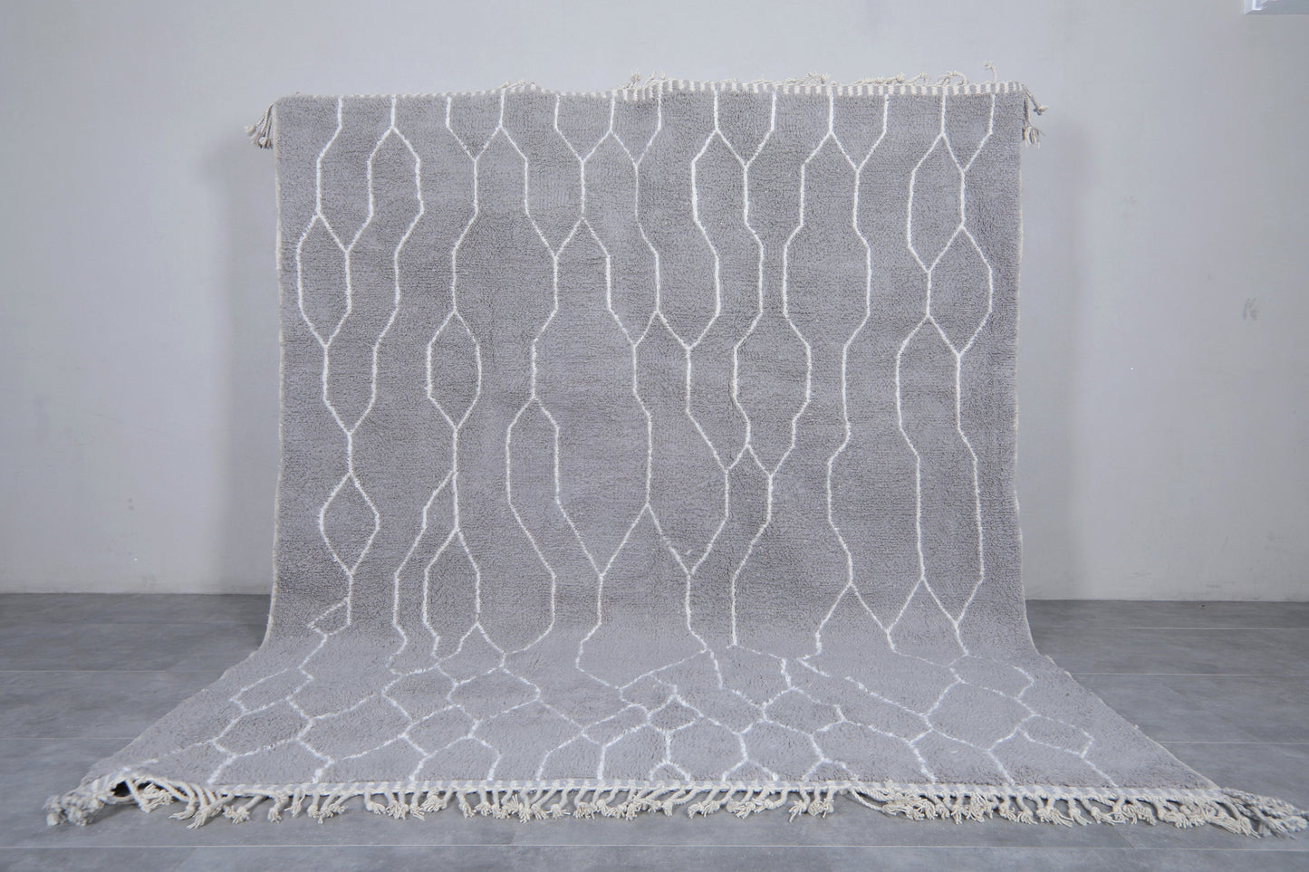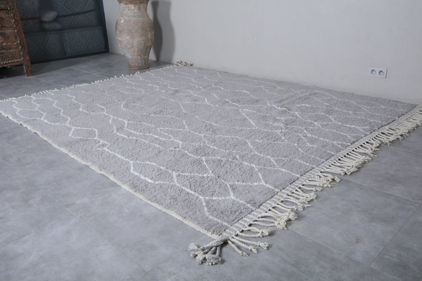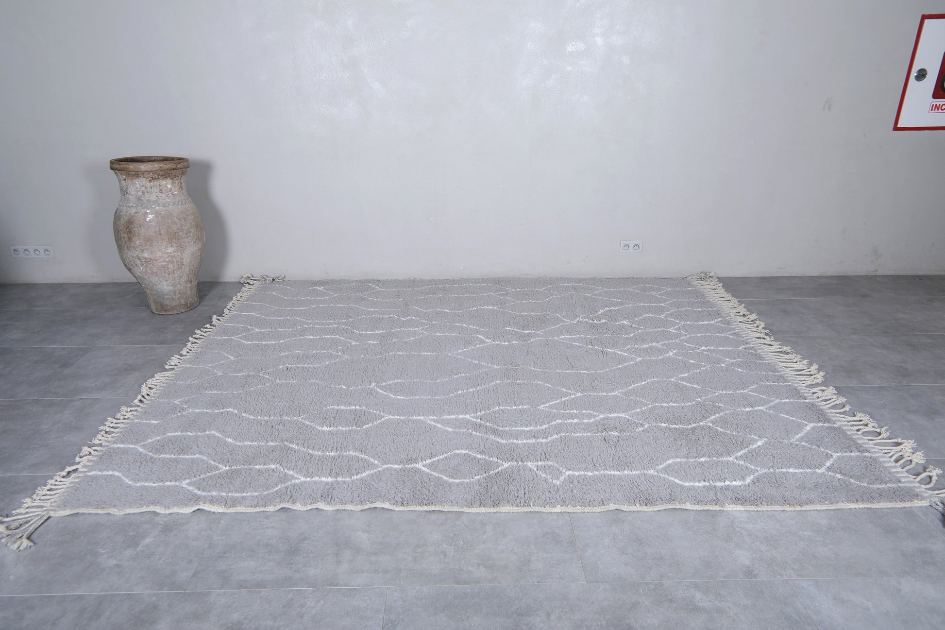 Transform your space with this stunning Beni Ourain Moroccan Rug, sized at 8.2 x 10.1 feet (252 CM x 310 CM). Handwoven from premium wool, this rug features a sophisticated gray base with an intricate white geometric pattern, embodying timeless Moroccan artistry. Its soft texture and natural warmth make it perfect for living rooms, dining areas, or bedrooms. Durable and eco-friendly, it complements both modern and traditional décor styles. Add this versatile, handcrafted masterpiece to your home for a touch of luxury. Order now for authentic Moroccan charm!