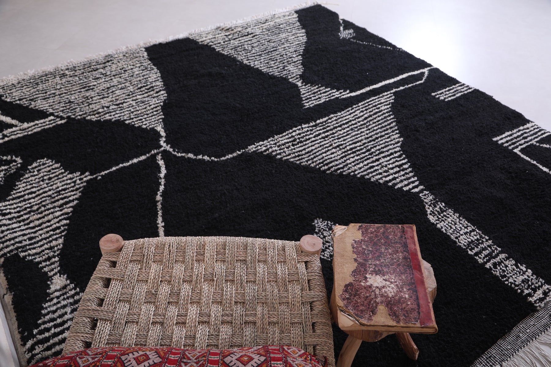 Make a bold statement with this black Moroccan rug, handwoven for dramatic contrast and timeless texture in any space.