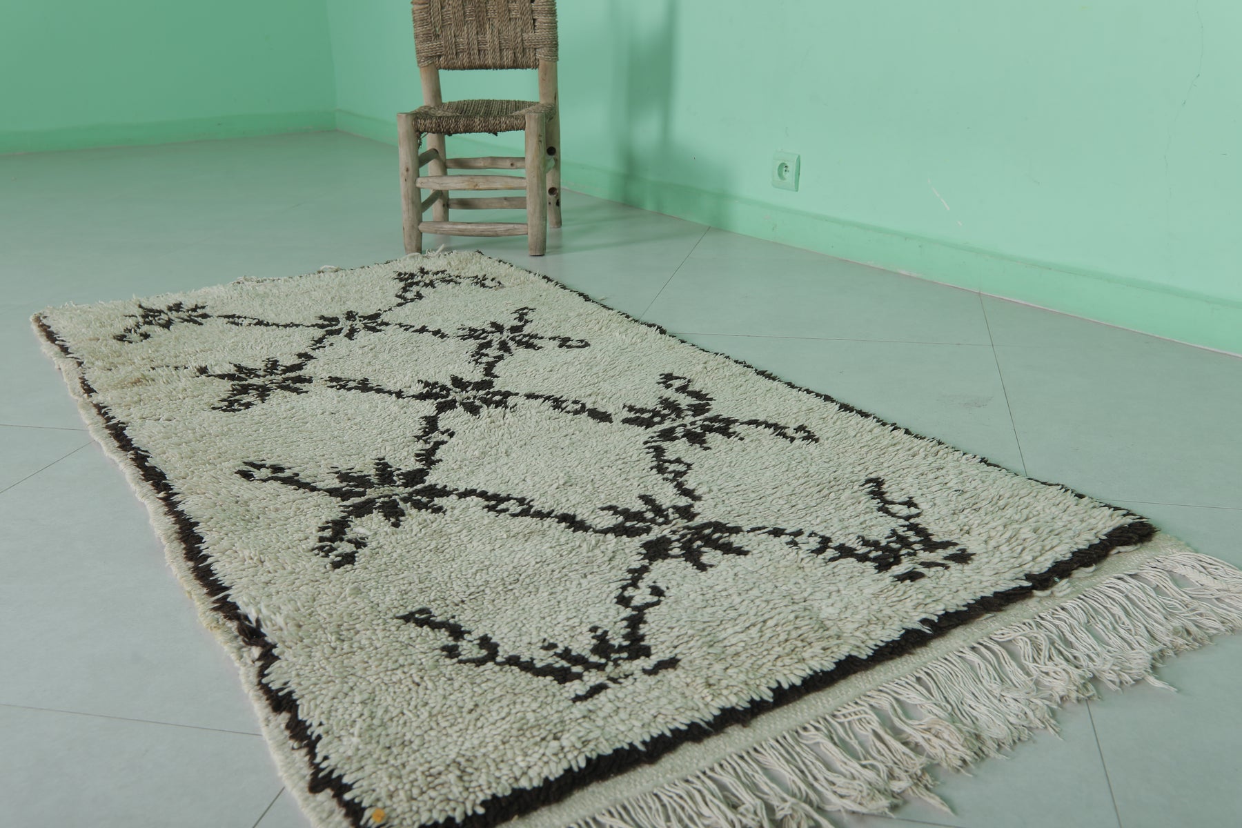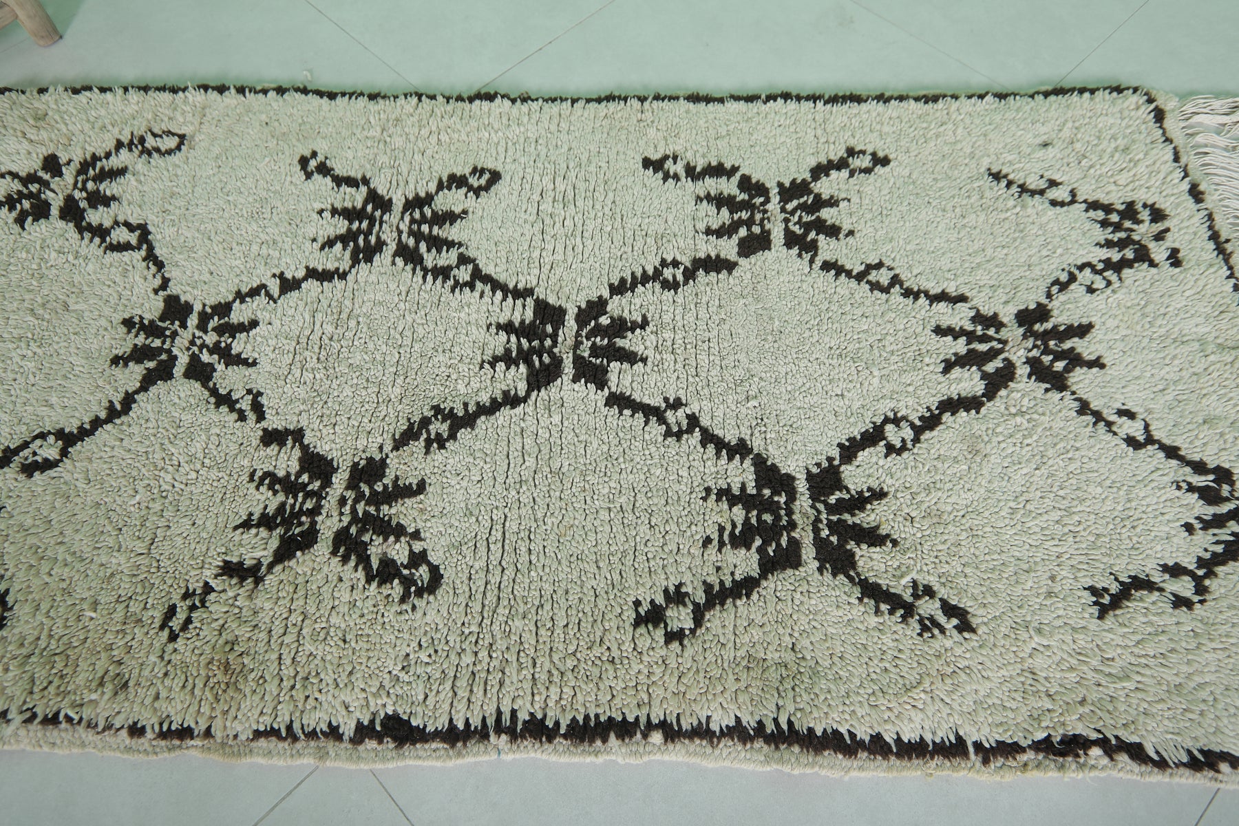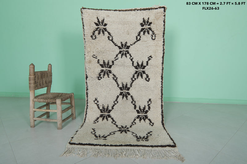 Elevate your home decor with this exquisite Moroccan Berber rug, featuring intricate crown-inspired motifs on a soft, creamy wool backdrop. Measuring 2.7 x 5.8 ft, this handwoven piece blends timeless Berber design with modern elegance.