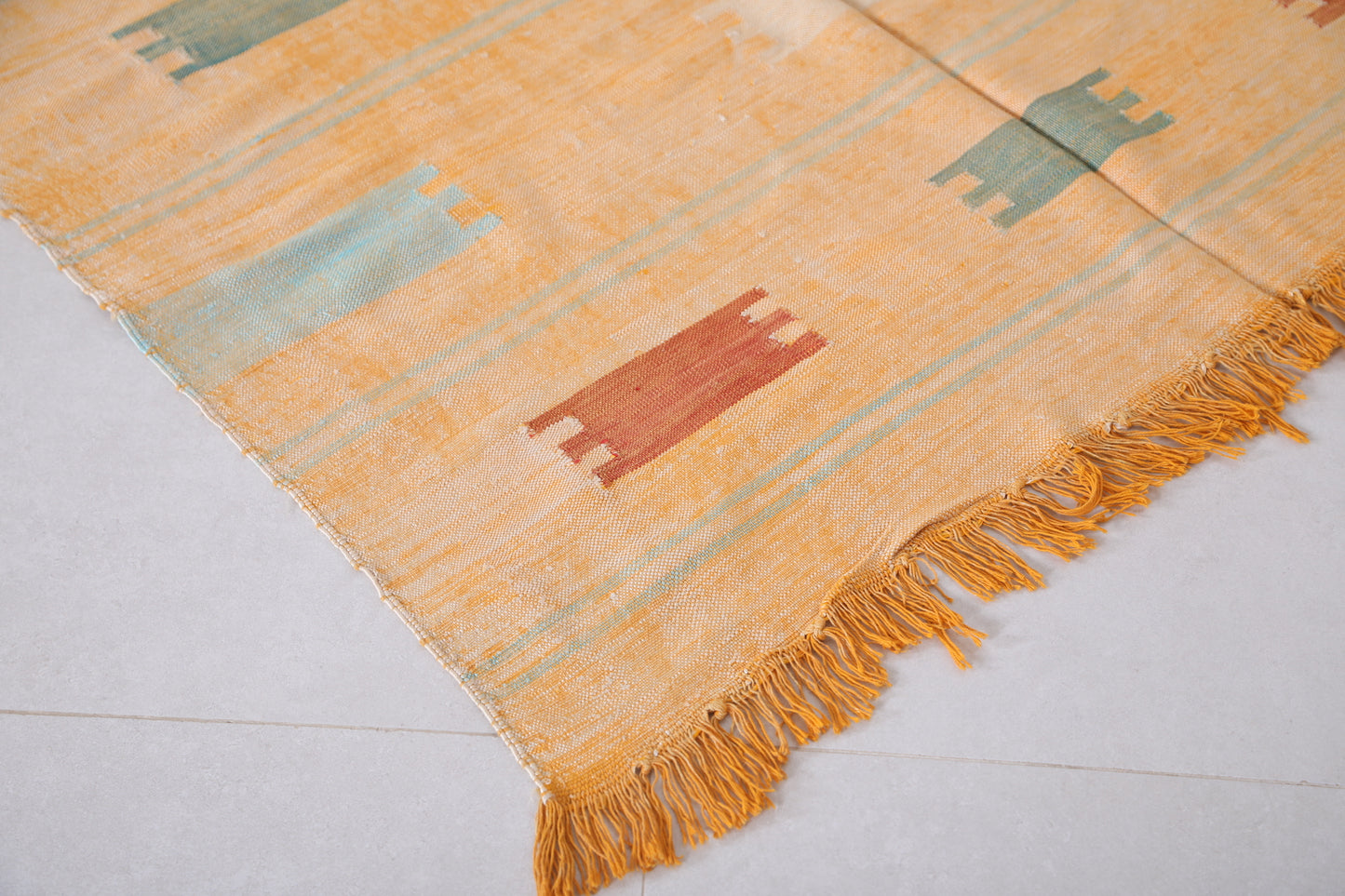 Moroccan Rug Yellow - Hand Woven Kilim Rug - Custom Rug
