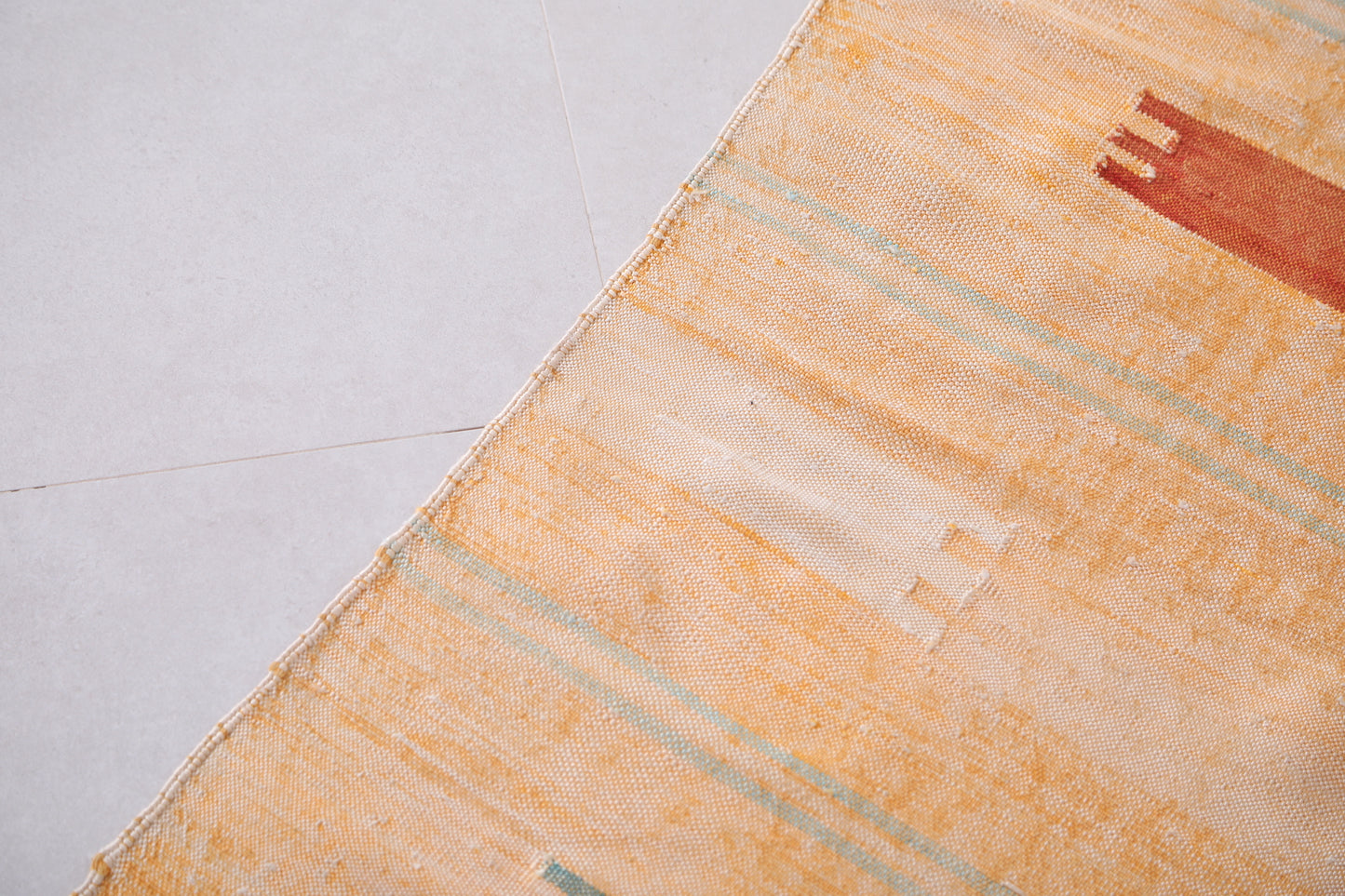 Brighten your décor with this yellow Moroccan kilim runner—handwoven for lightweight charm and cultural elegance.