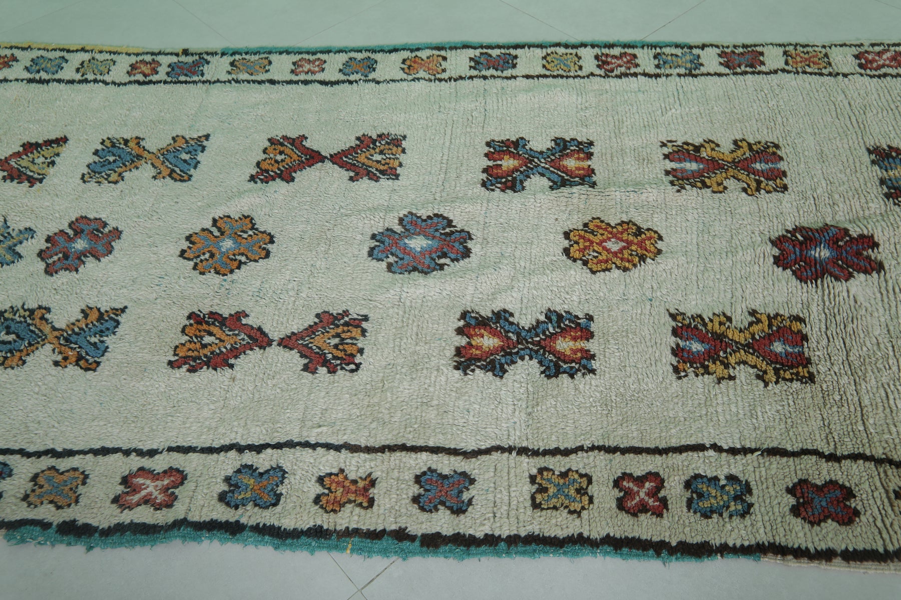 Add timeless charm to your home with this Moroccan runner Berber rug, measuring 4.1 x 12.3 ft. Meticulously handwoven by skilled artisans, this rug features intricate Berber motifs and a vibrant palette of traditional colors. Perfect for hallways, entryways, or narrow spaces, its premium wool construction ensures durability and a soft texture underfoot. The rug’s versatile design makes it a standout piece for both modern and classic interiors, combining functionality with cultural authenticity. Transform your space with this exquisite Moroccan runner and experience the perfect blend of tradition and style.
