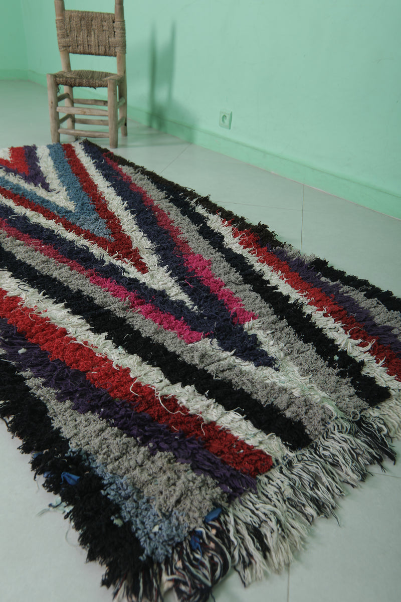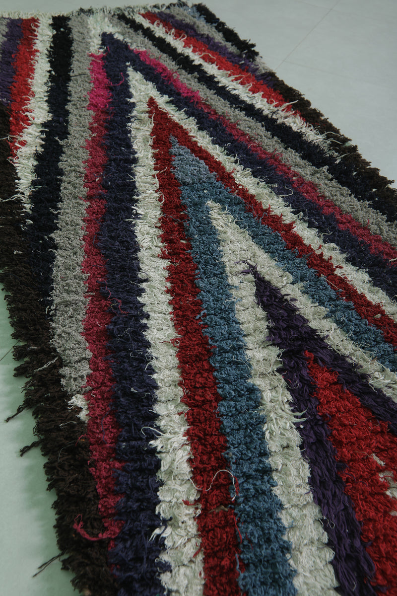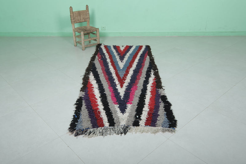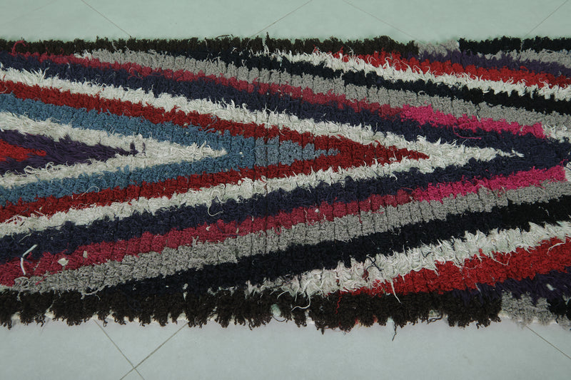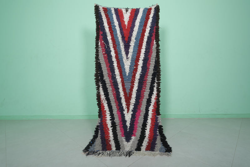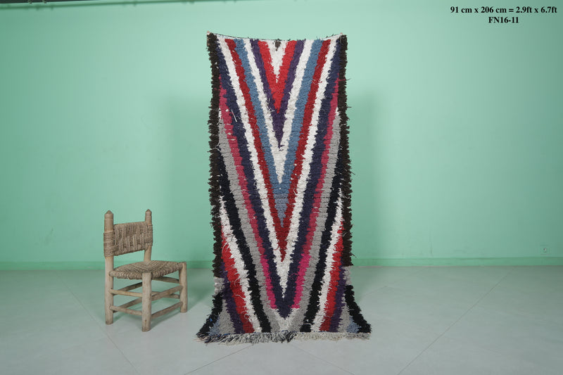 Moroccan Runner Boucherouite Rug 2.9 x 6.7 Feet - Striking V-Pattern Hallway Rug