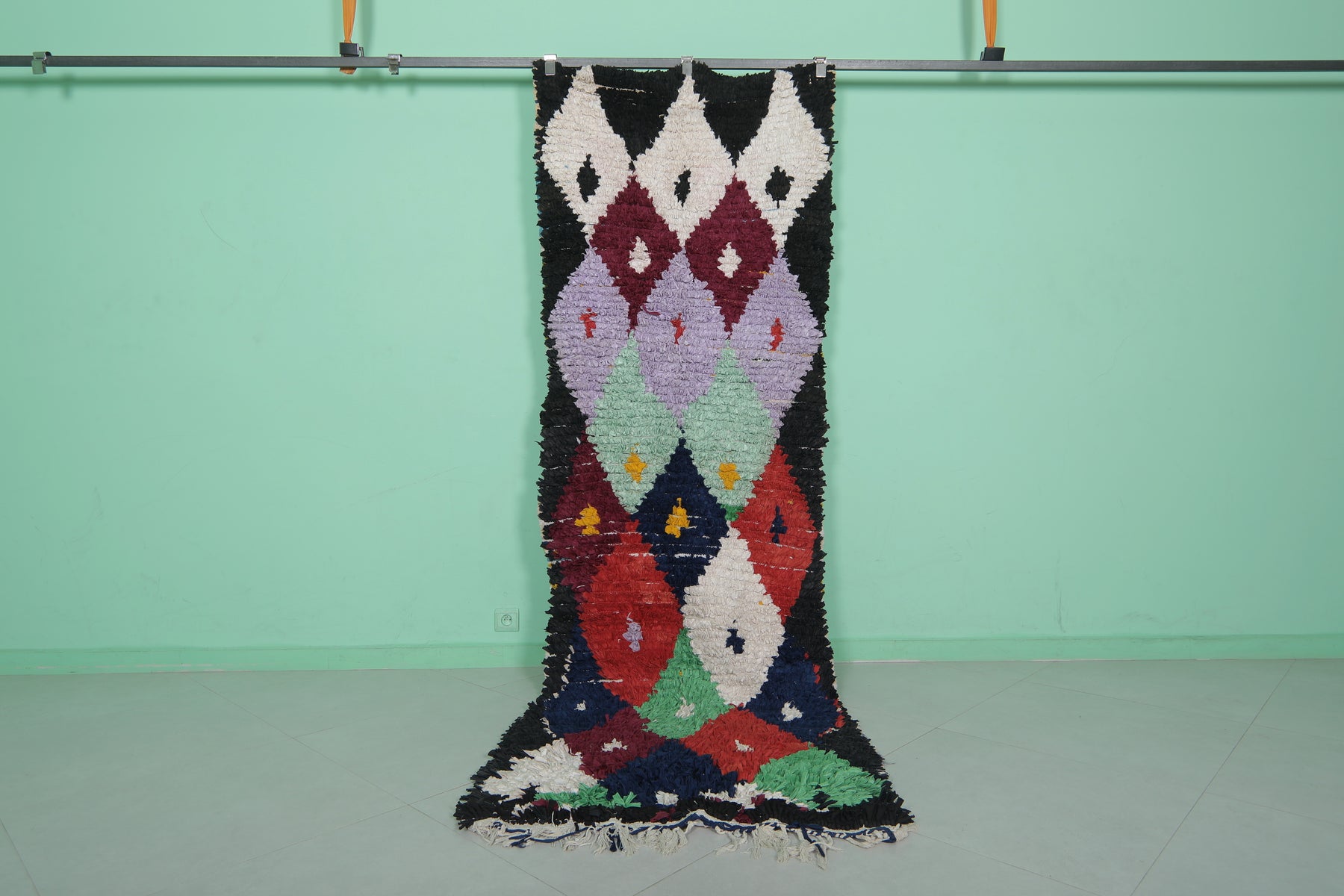 Enhance your hallway or large spaces with this stunning Moroccan Runner Rug, measuring 3.1 x 8.1 FT. Featuring bold diamond patterns in vibrant hues of black, white, red, and green, this handwoven masterpiece reflects the beauty of traditional Moroccan craftsmanship. Perfect for entryways, dining areas, or as a statement runner, its durable construction and eco-friendly design make it a sustainable and stylish choice. Crafted from recycled textiles, each rug is unique, adding charm and character to your home.