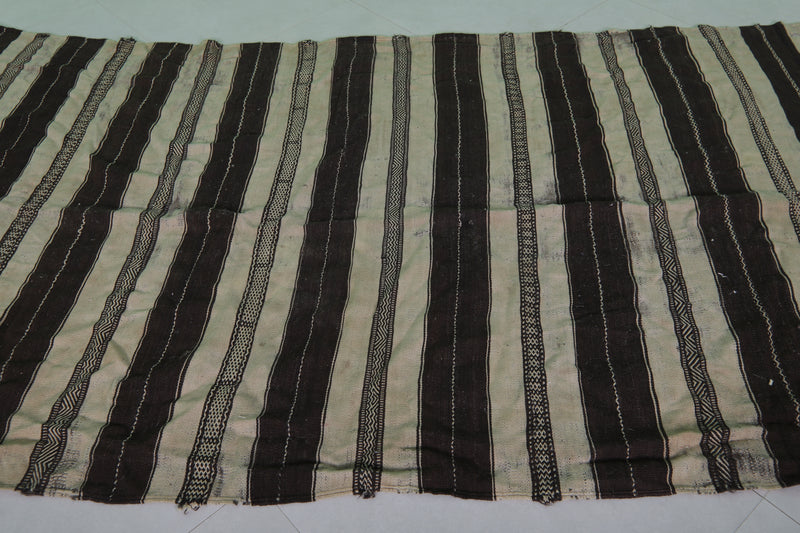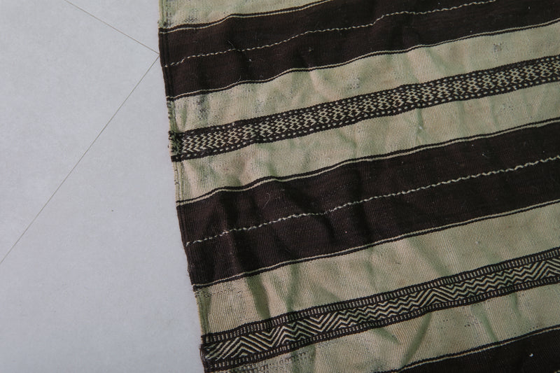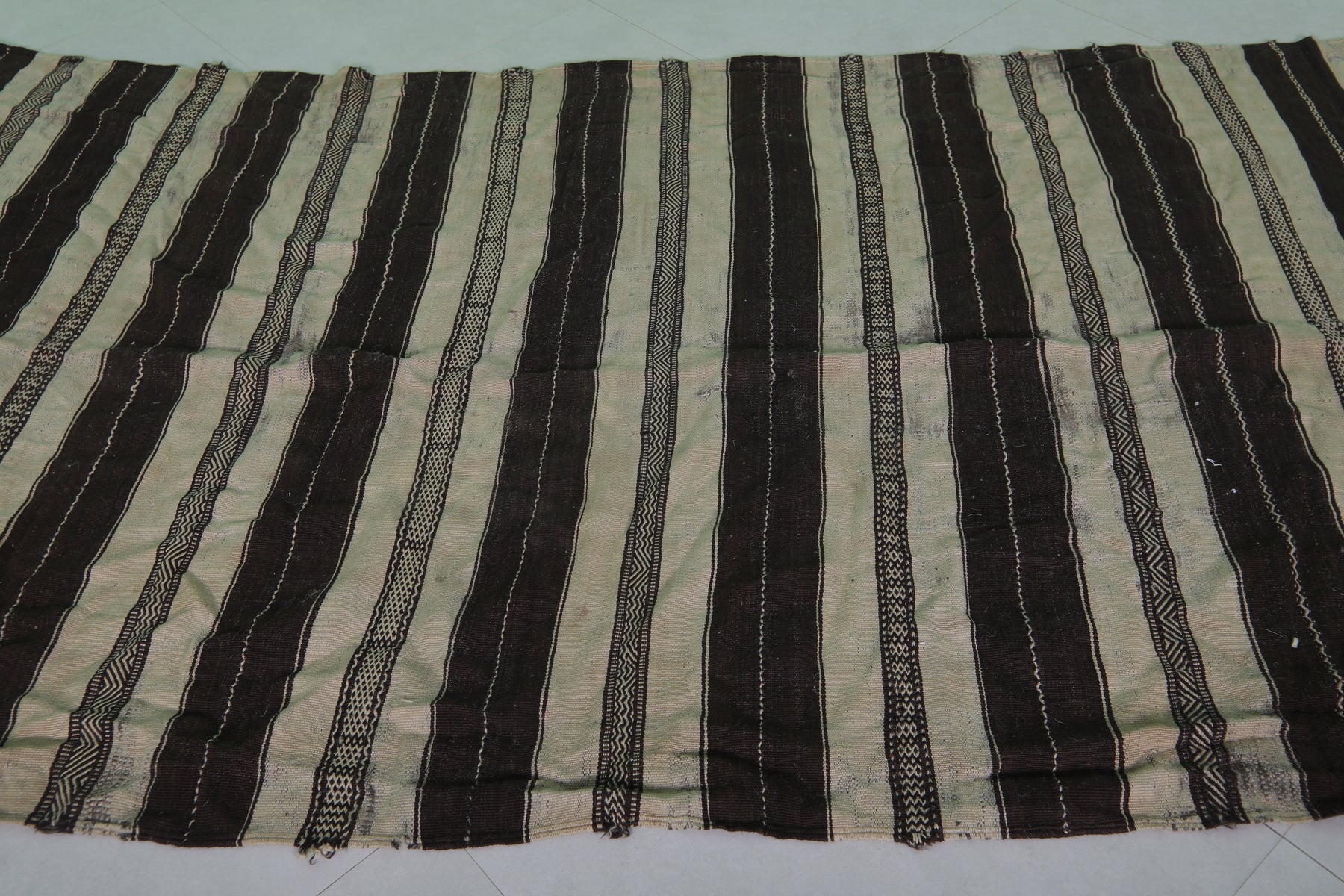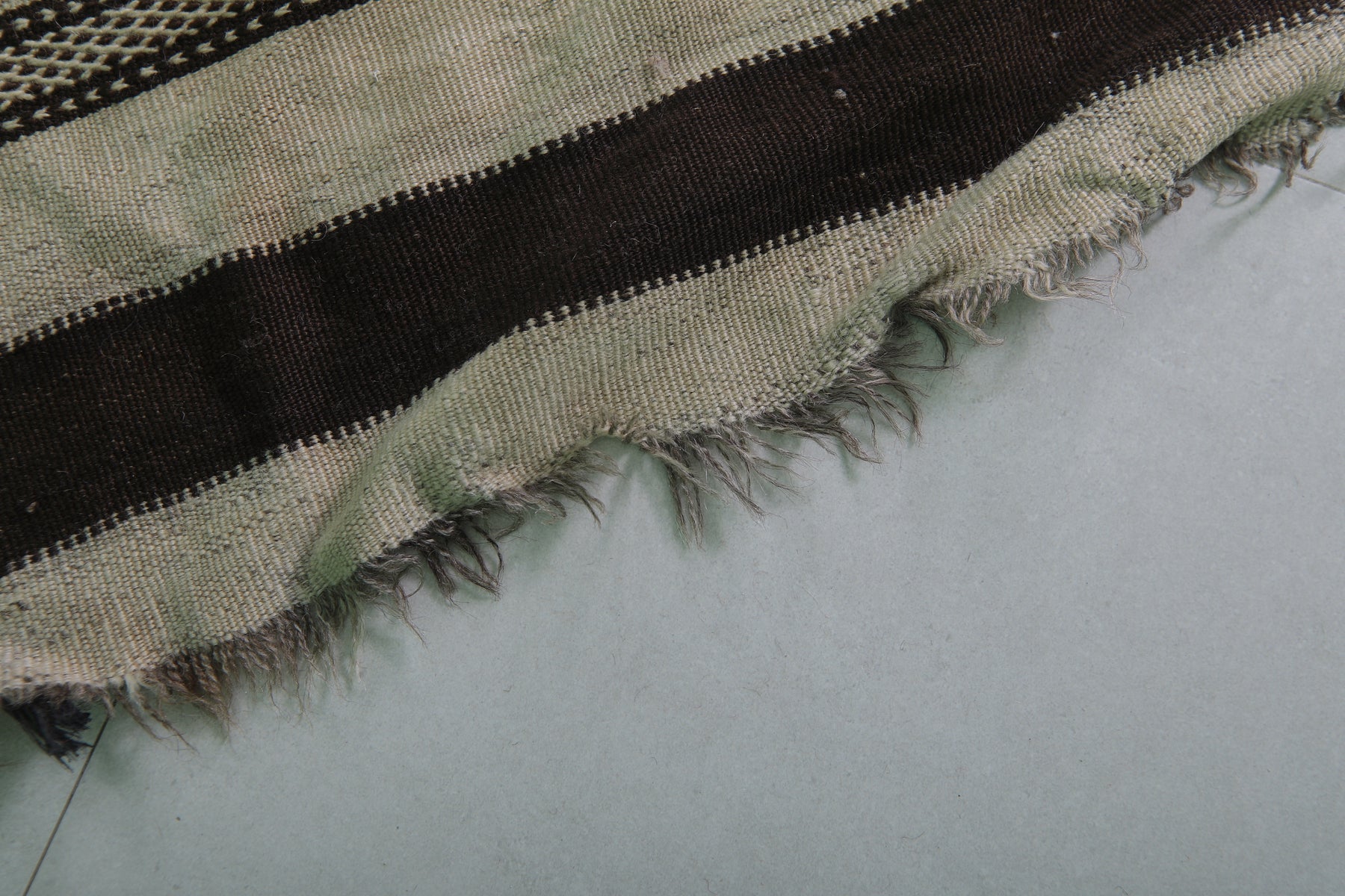 This 4.9 x 9.9 feet Striped Moroccan Kilim rug is a beautifully handwoven hallway runner featuring bold black and cream horizontal stripes. With a clean, elongated design rooted in Berber tradition, it adds both warmth and visual flow to hallways, corridors, or narrow living spaces.