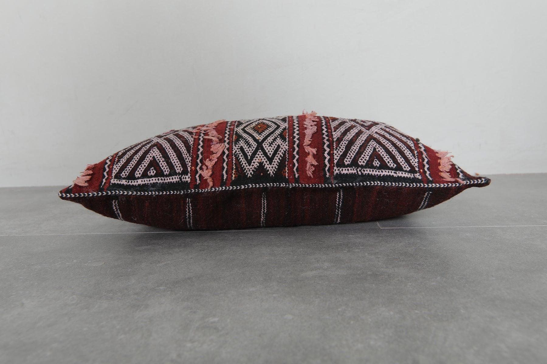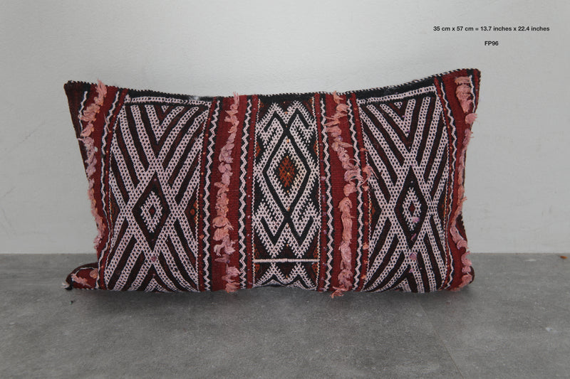 Enhance your decor with this Moroccan tribal pillow, measuring 13.7x22.4 inches. Featuring bold red and black geometric patterns with textured details, it adds a striking boho touch to your space. Perfect for sofas, beds, or cozy nooks, it blends traditional artistry with modern charm.