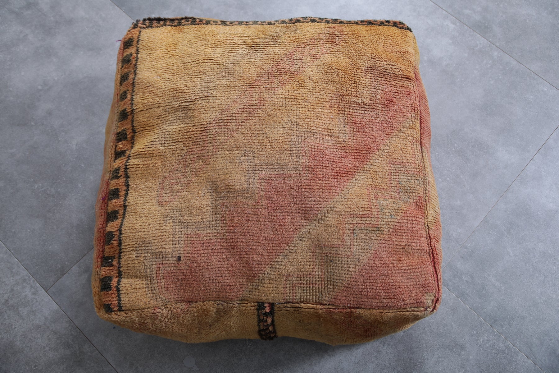 Infuse your space with authentic Moroccan artistry using this handwoven vintage ottoman pouf. Crafted with traditional techniques, this pouf showcases bold geometric tribal patterns, including diamonds, zigzags, and chevrons, in warm tones of terracotta, cream, and black. Its versatile design makes it perfect as a footrest, extra seating, or a unique accent piece, seamlessly blending into modern, boho, or eclectic interiors.
