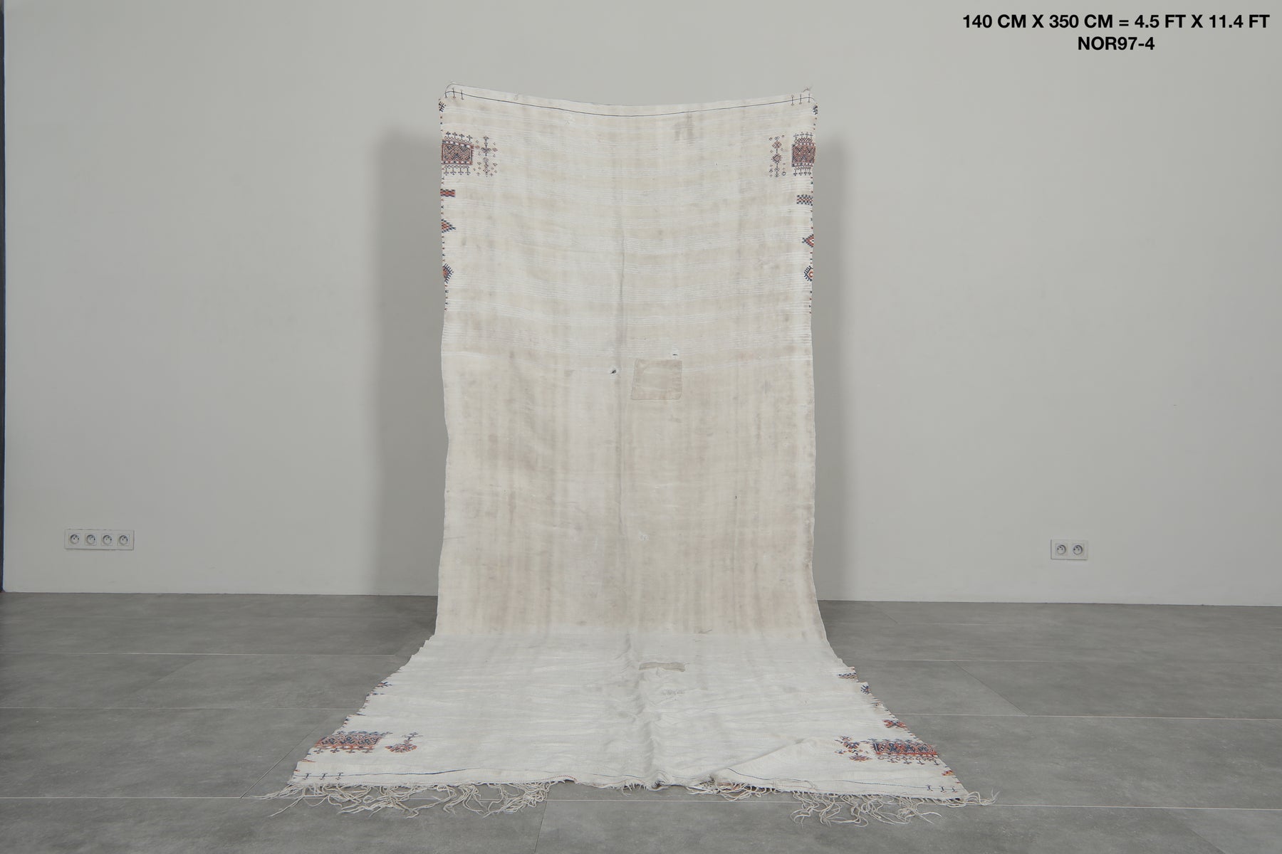 Moroccan Vintage Handwoven Kilim Rug 4.5 FT x 11.4 FT - Traditional Embroidery