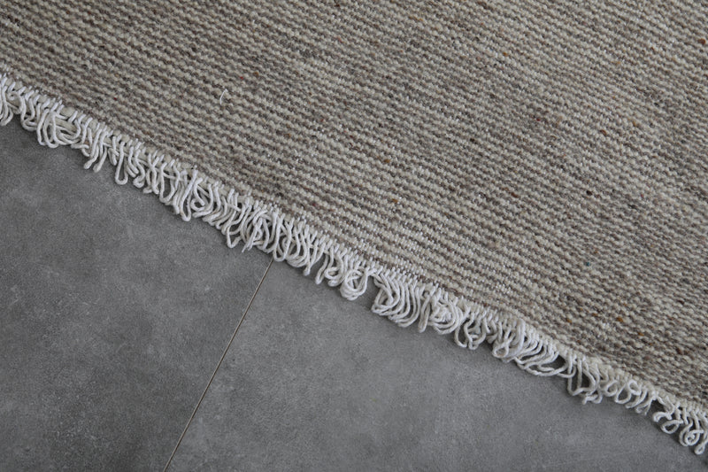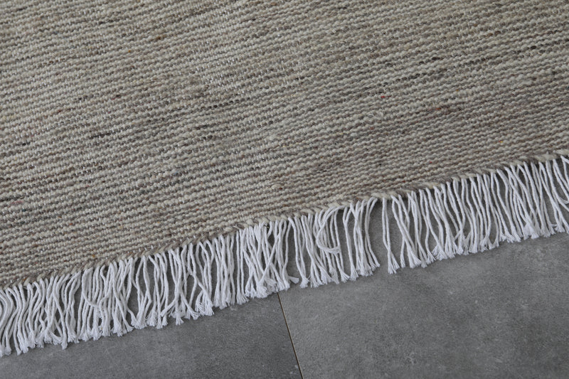 This 3.1 x 5 feet handwoven Moroccan rug brings natural elegance to any space with its soft, neutral tones and minimalist design. Crafted from 100% premium wool, it offers a plush texture and lasting durability, making it a perfect addition to living rooms, bedrooms, or office spaces.