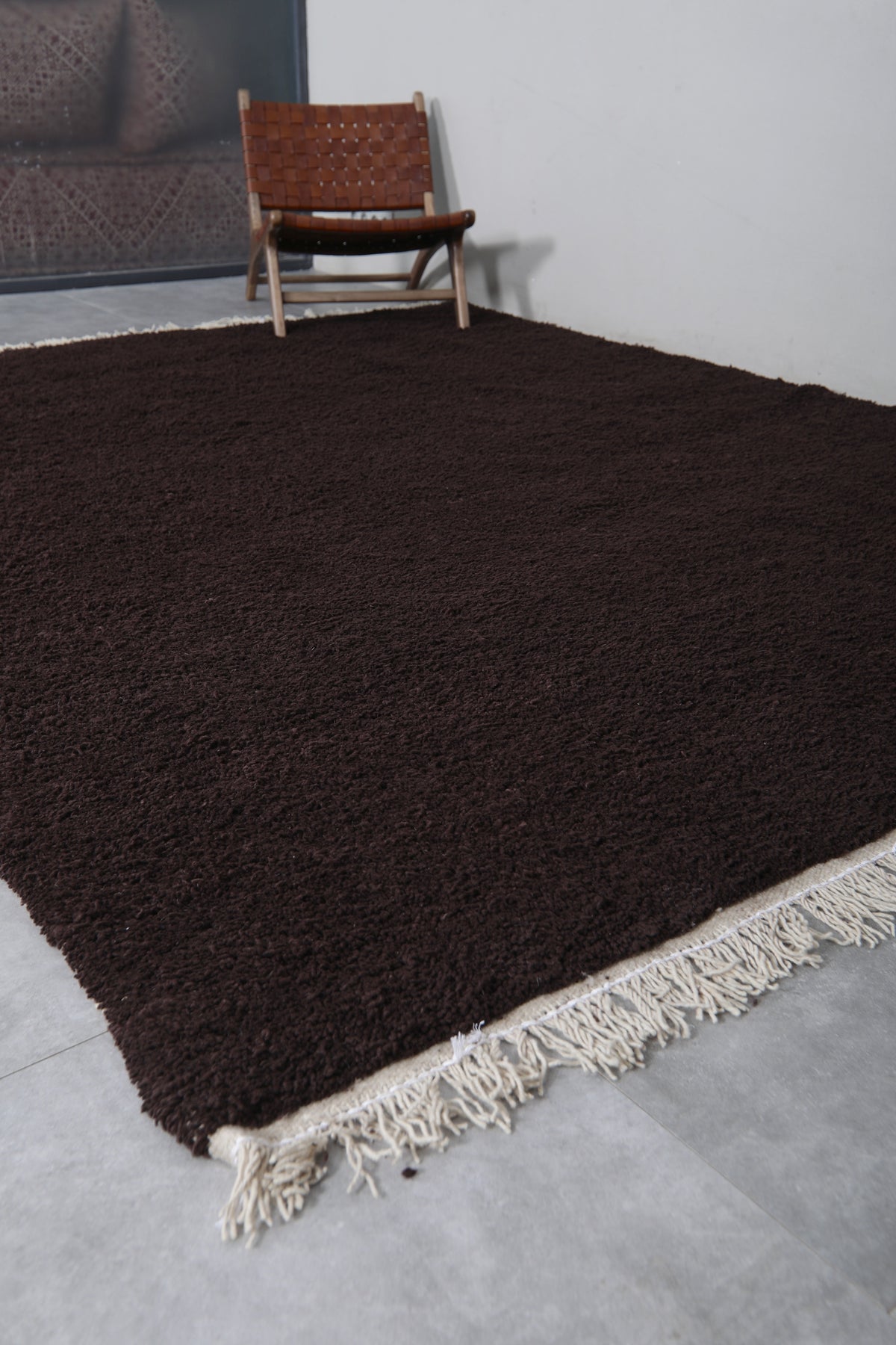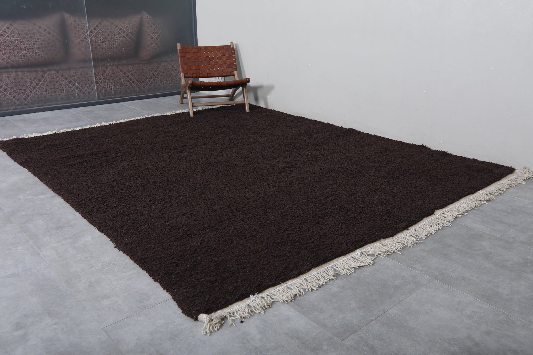 Deep brown Moroccan rug - Custom Minimalist wool texture