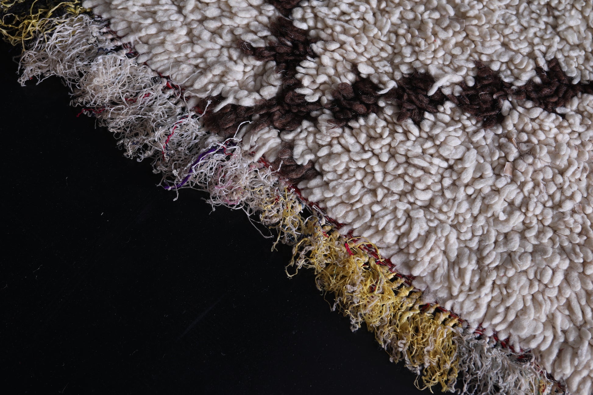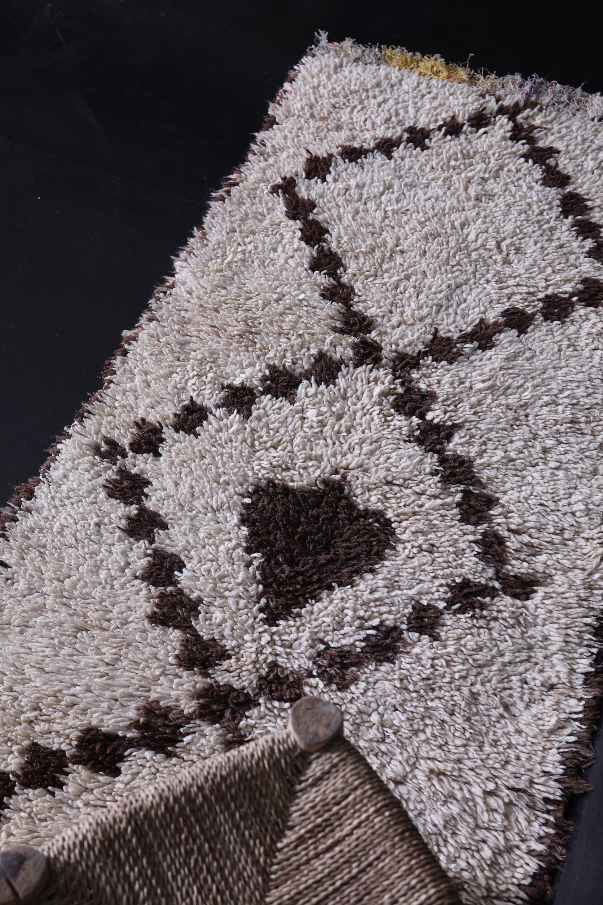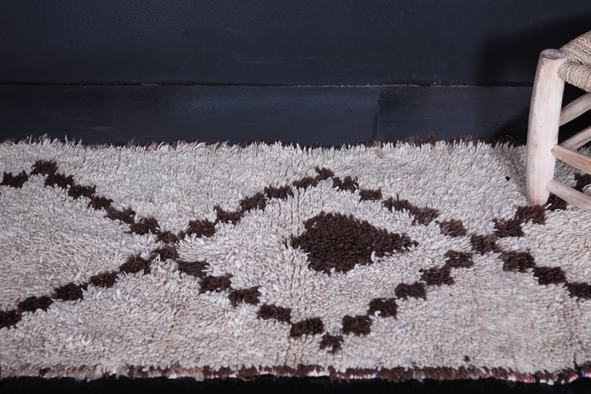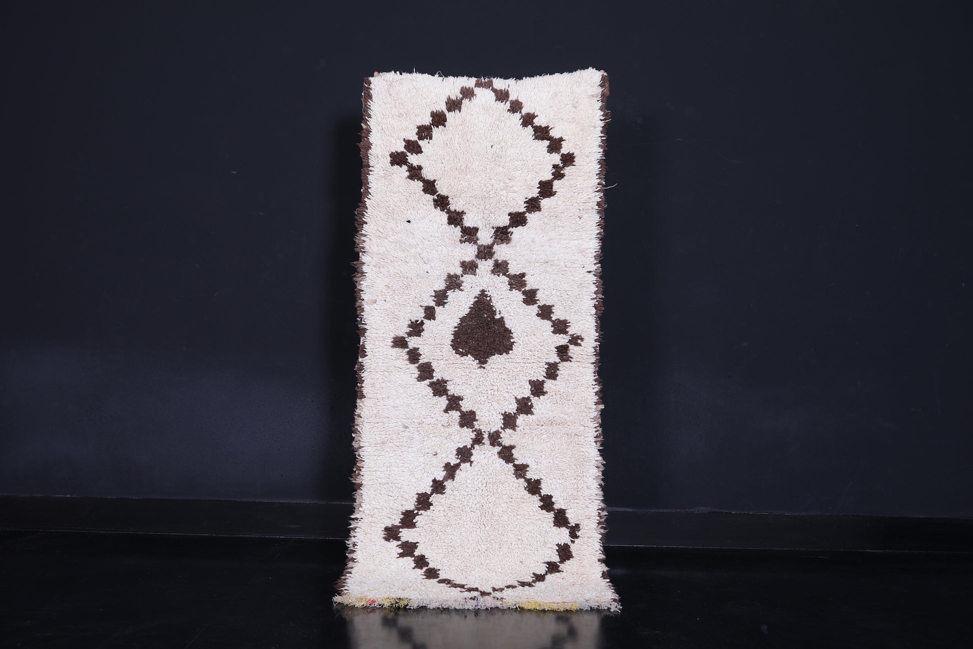This 2.4 x 6 feet Moroccan runner rug features a timeless Berber-inspired geometric design, adding elegance and warmth to any space. Handwoven from high-quality wool, its soft ivory background is adorned with bold diamond motifs in earthy brown tones, creating a perfect blend of tradition and modern style. Ideal for hallways, entryways, or bedside areas, this runner rug enhances your home with its understated charm and durability.