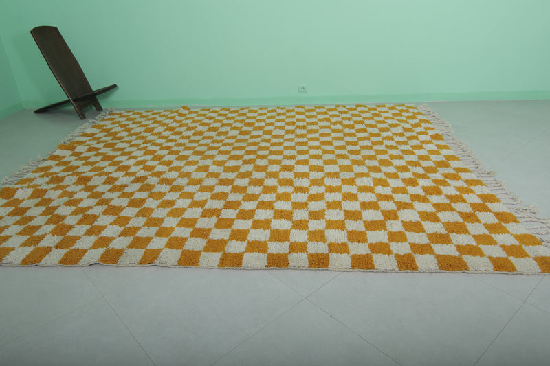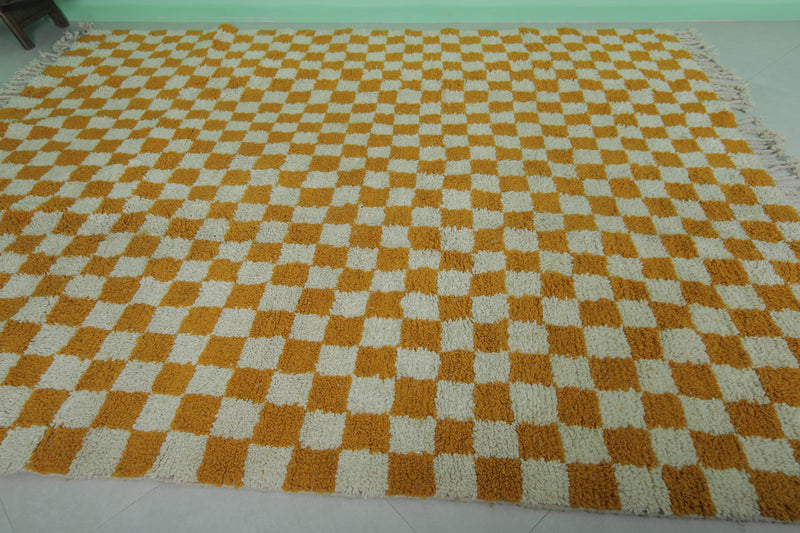 Orange Moroccan Berber Checkered Rug 8 X 9.7 Feet – Handmade Elegance
