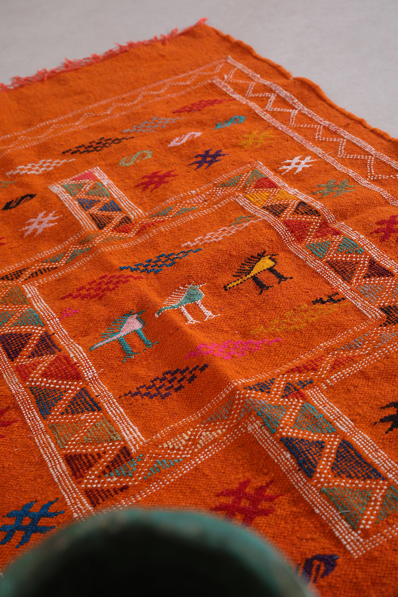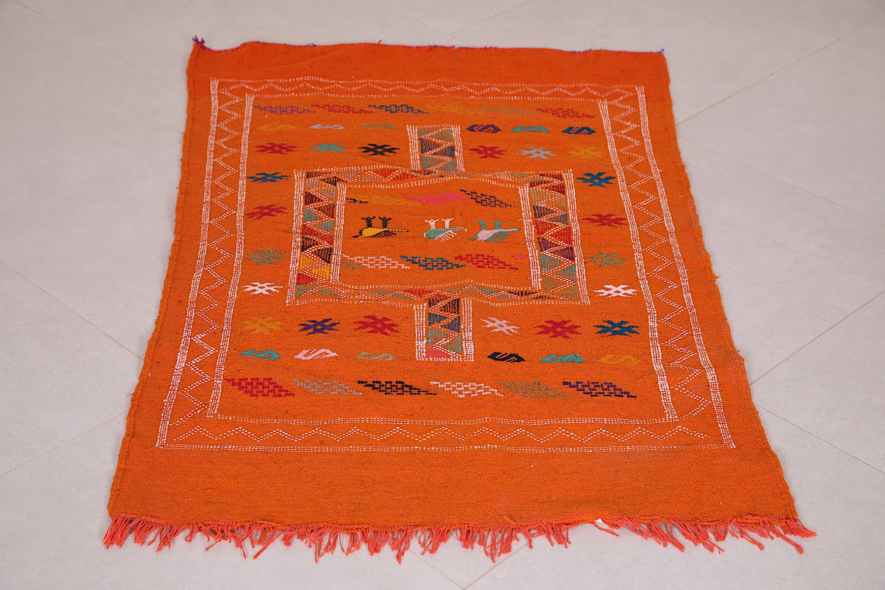 Orange Moroccan Kilim Rug 3 x 4.9 FT - Handwoven Beauty