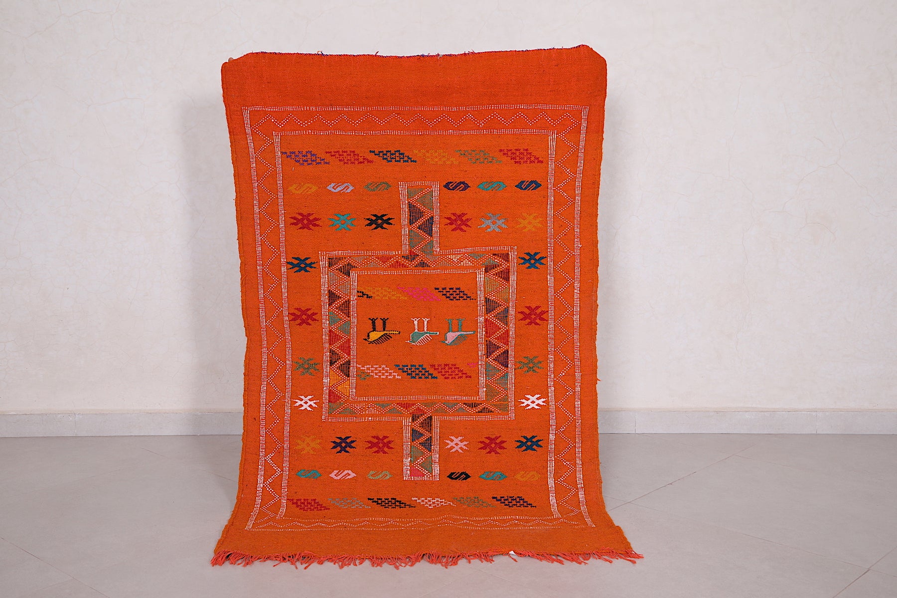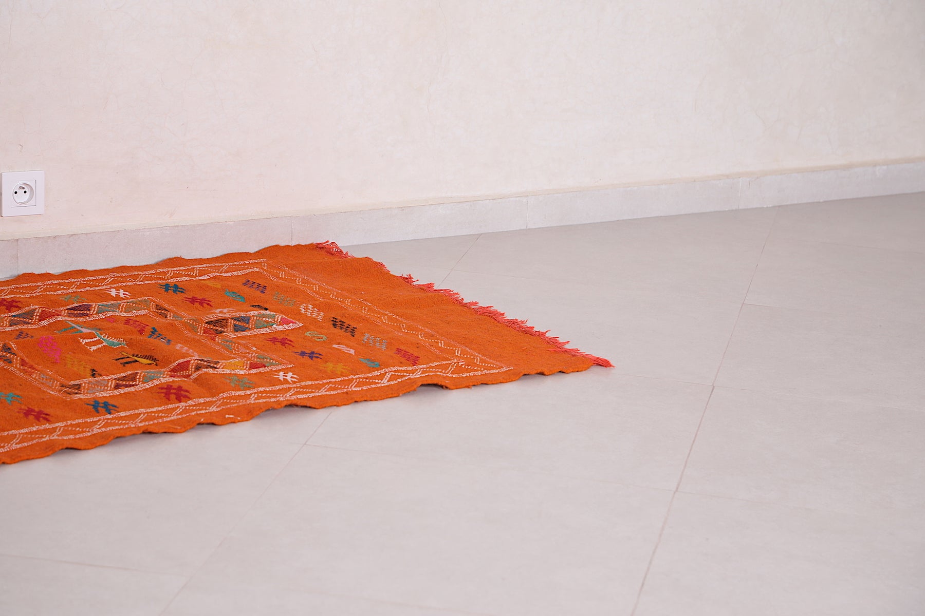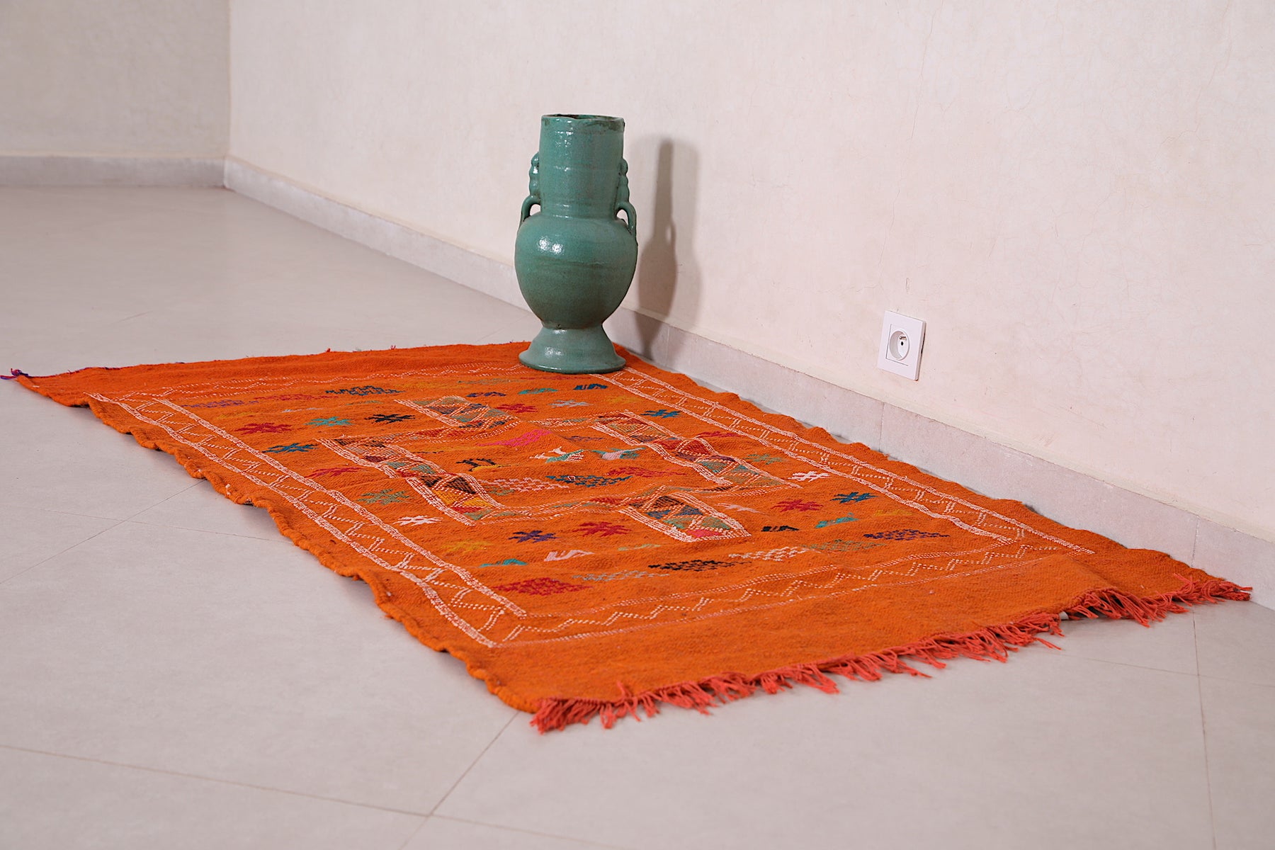 Orange Moroccan Kilim Rug 3 X 4.9 Feet