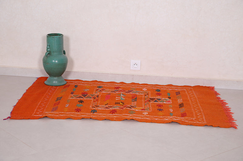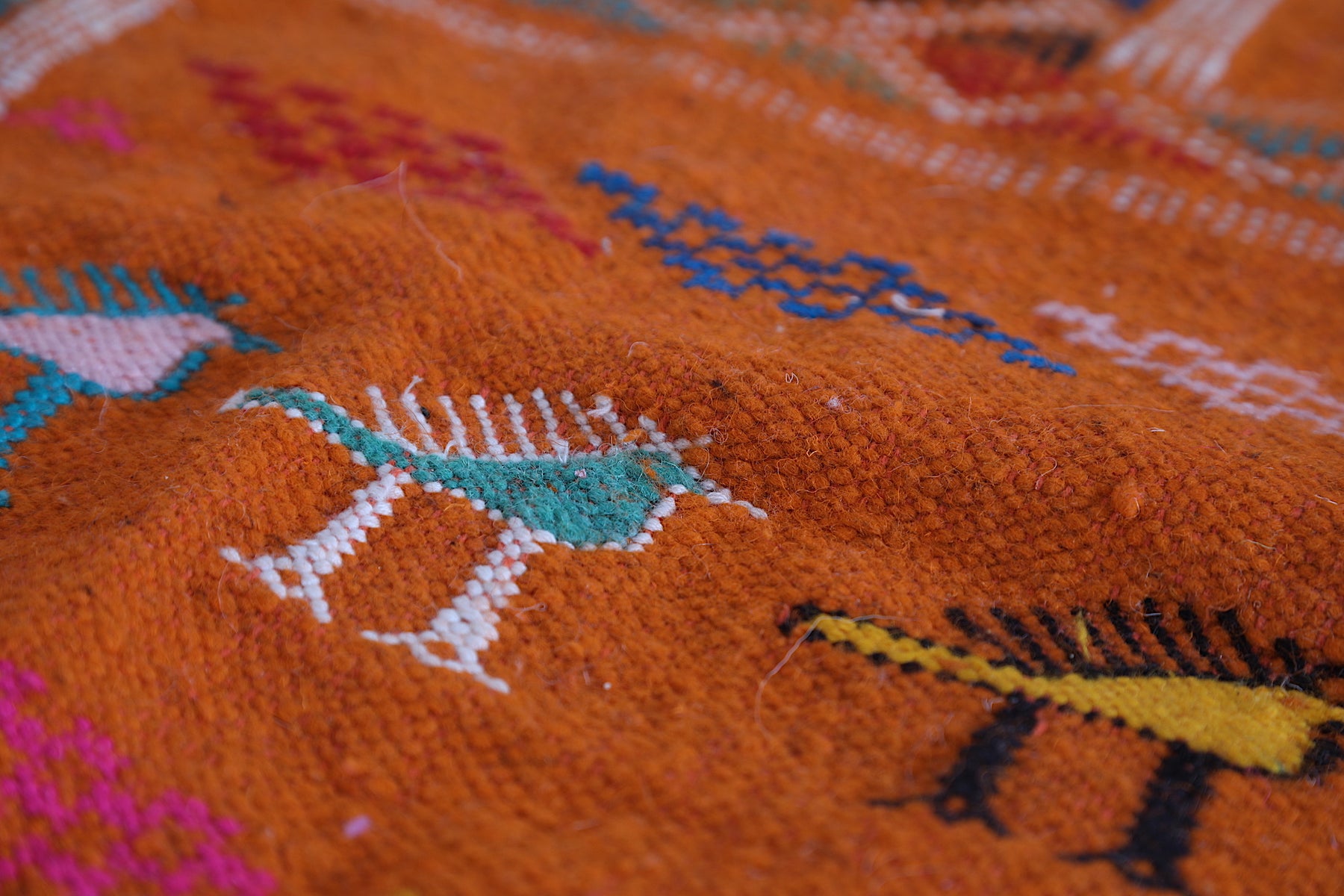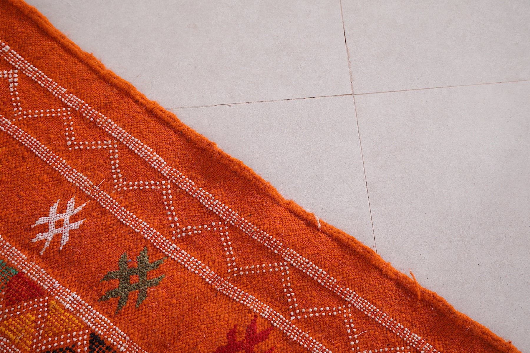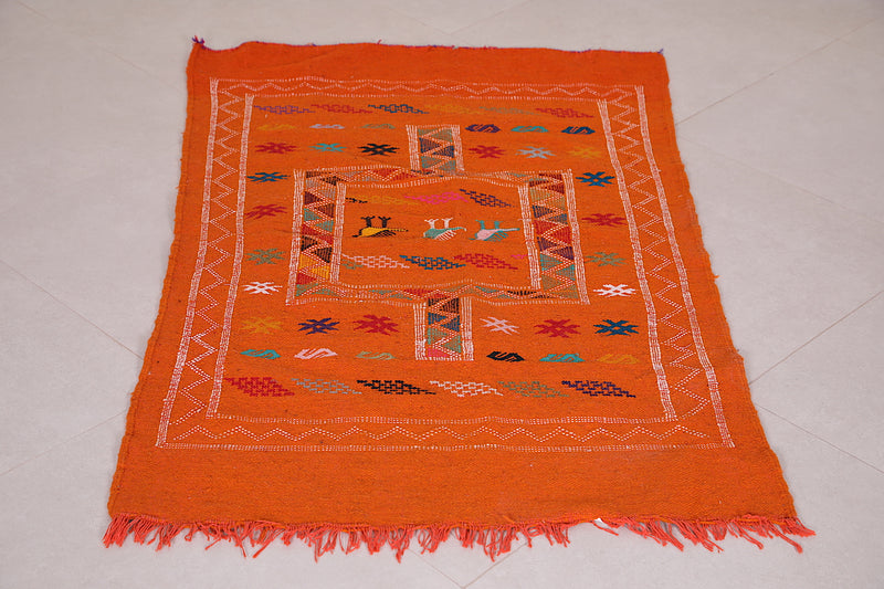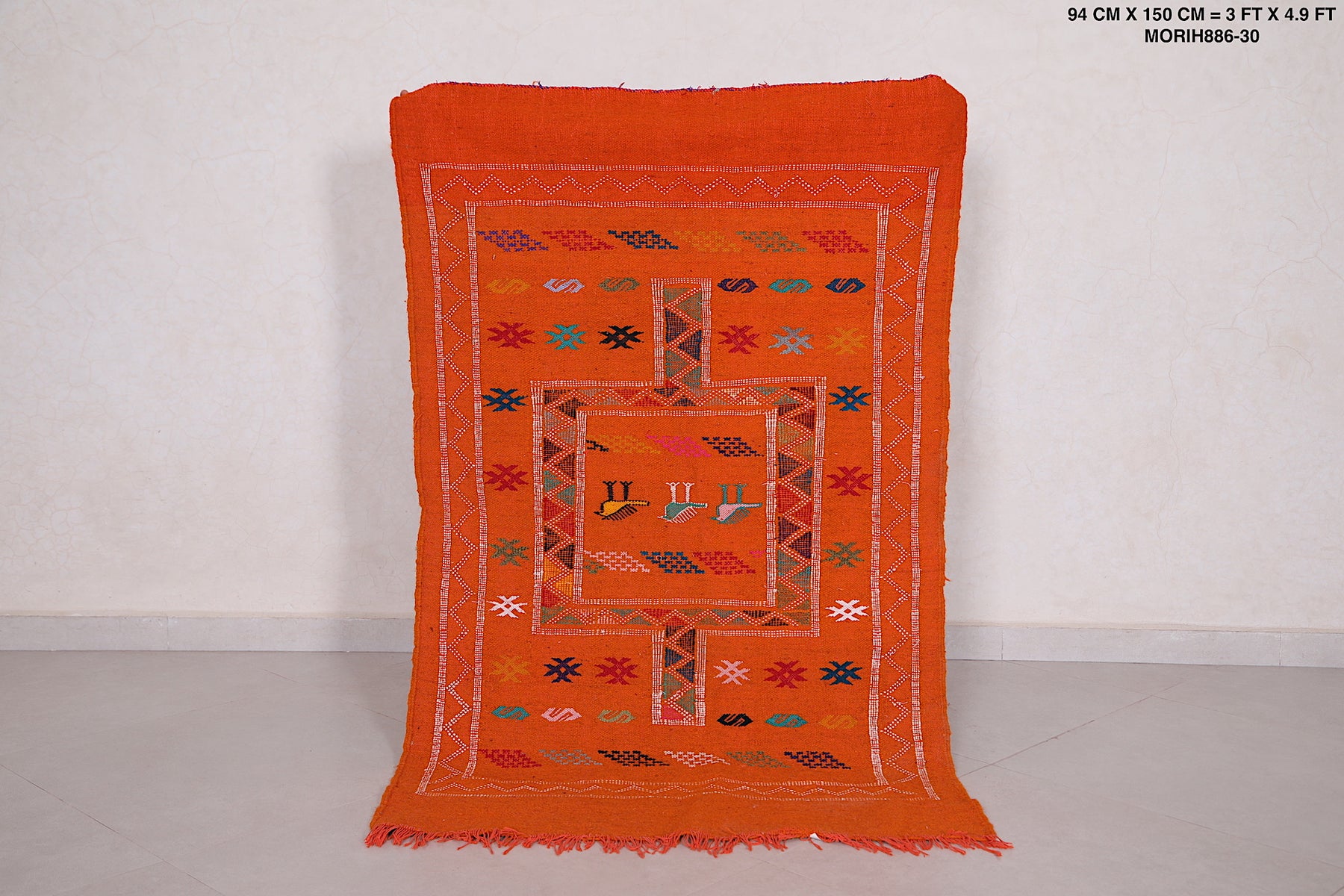 Orange Moroccan Kilim Rug 3 X 4.9 Feet