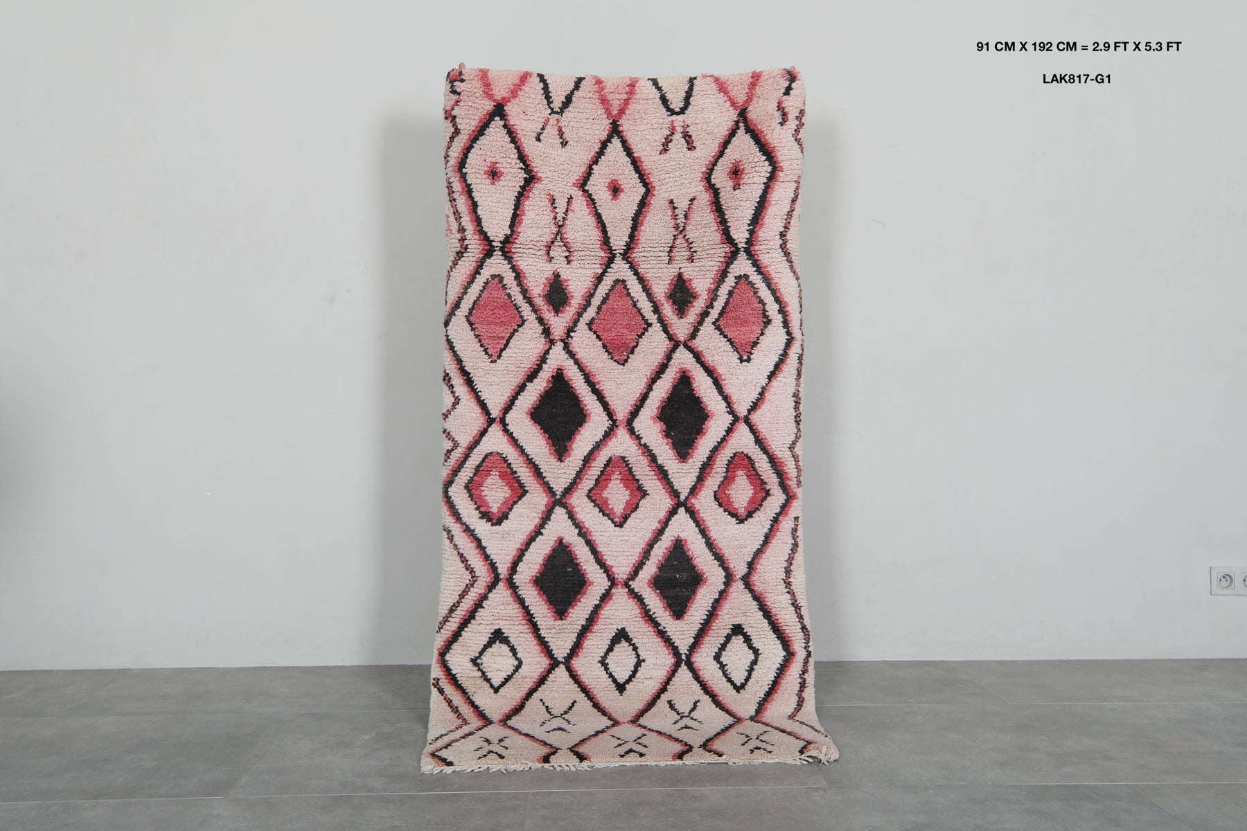 Pink Azilal Rug 2.9 X 5.3 FT All Wool Rug