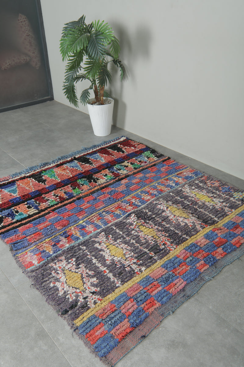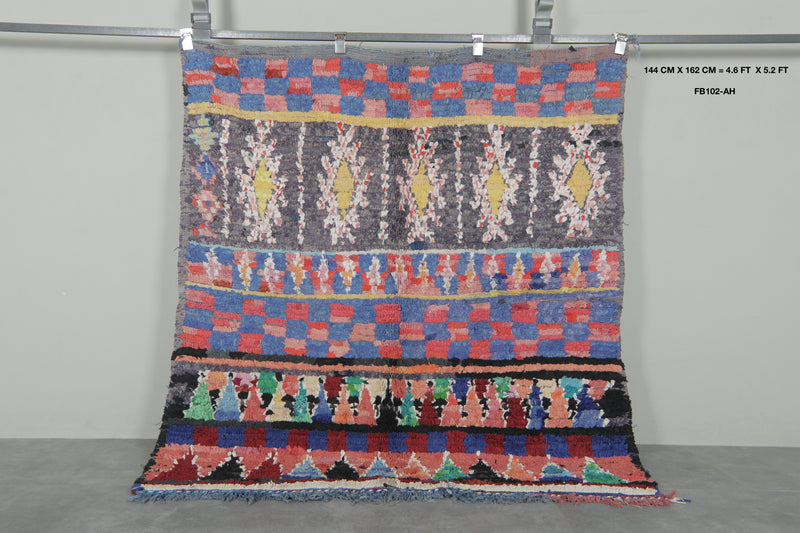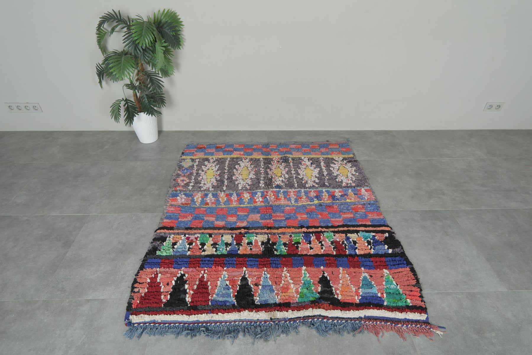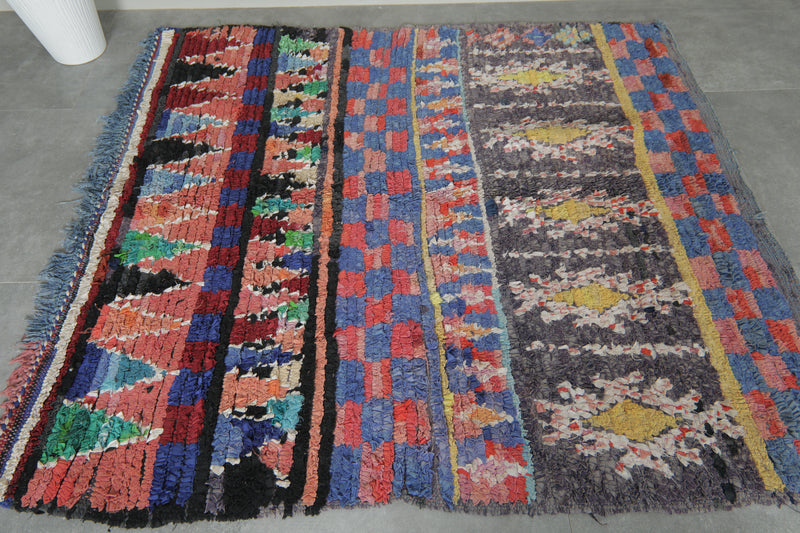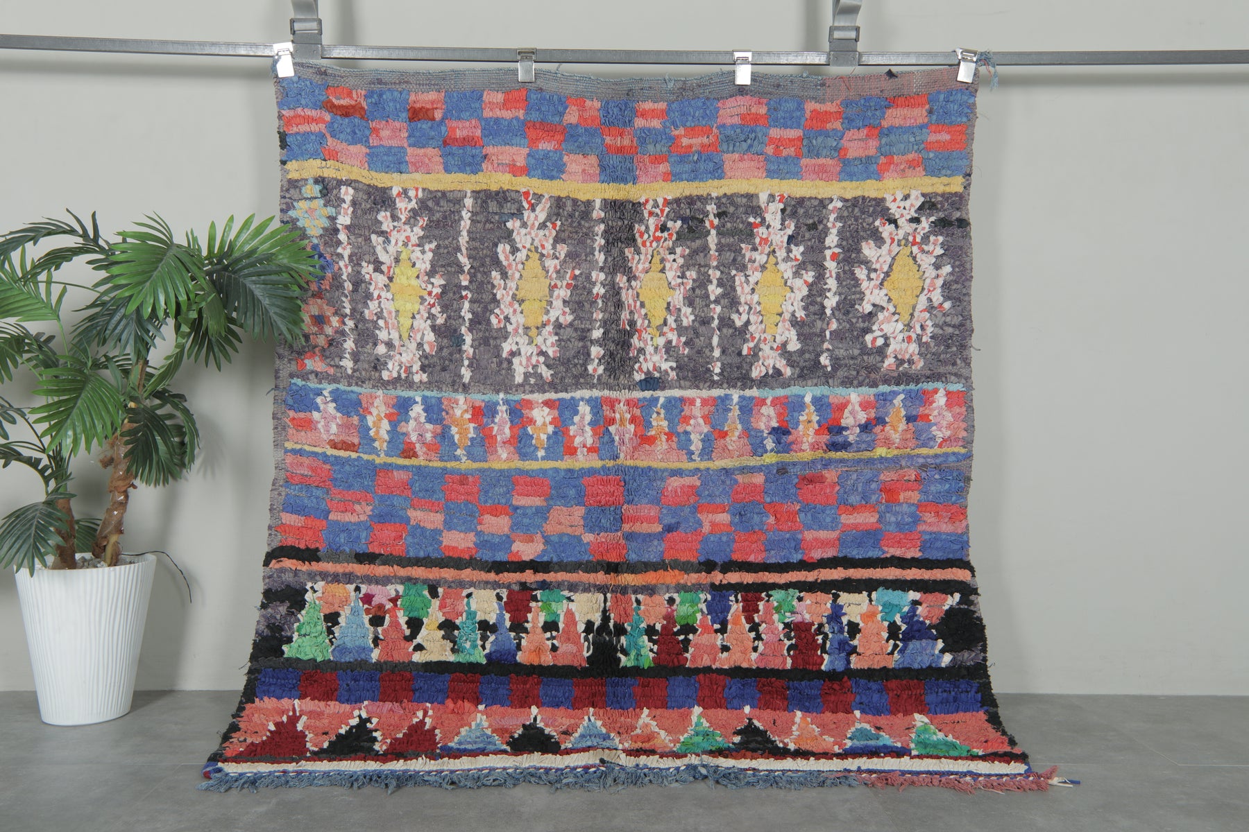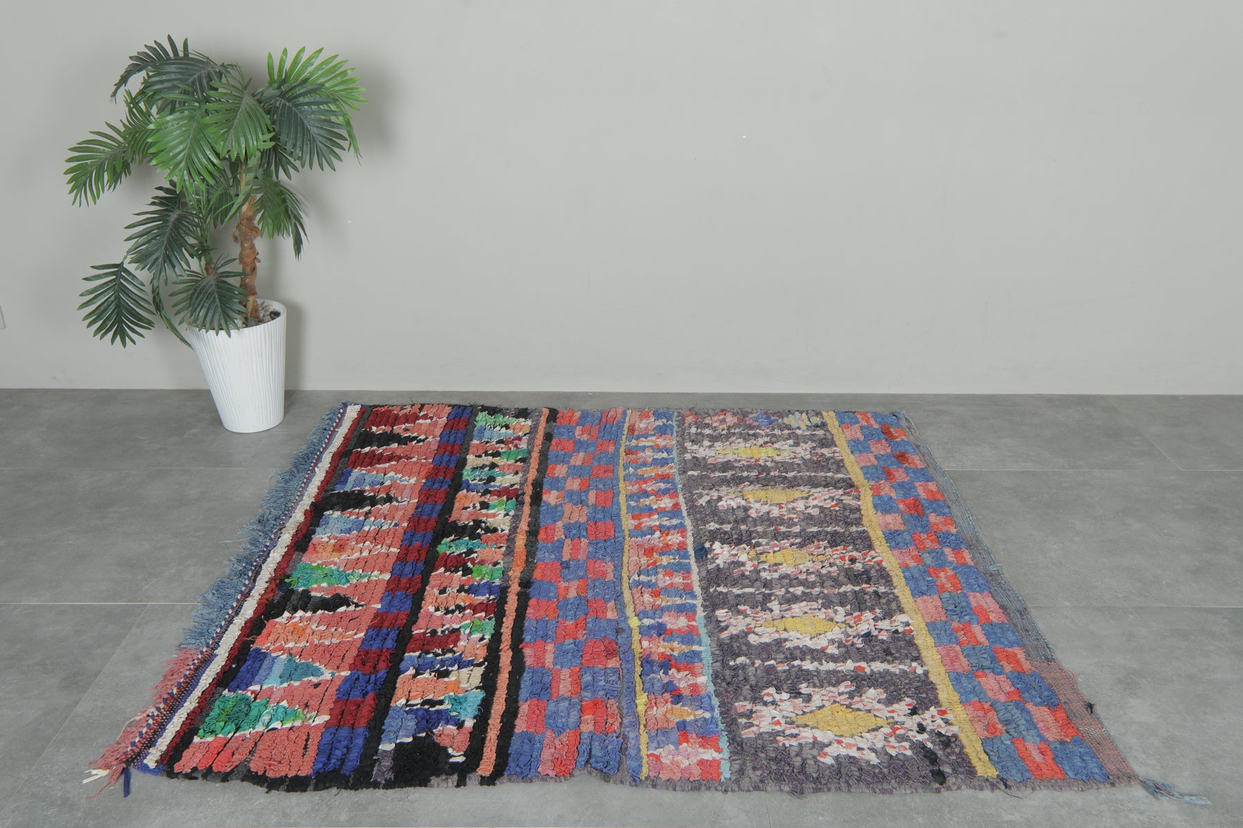 Tribal Stripe Boucherouite Rug – 4.6 x 5.2 ft Vintage Moroccan rug