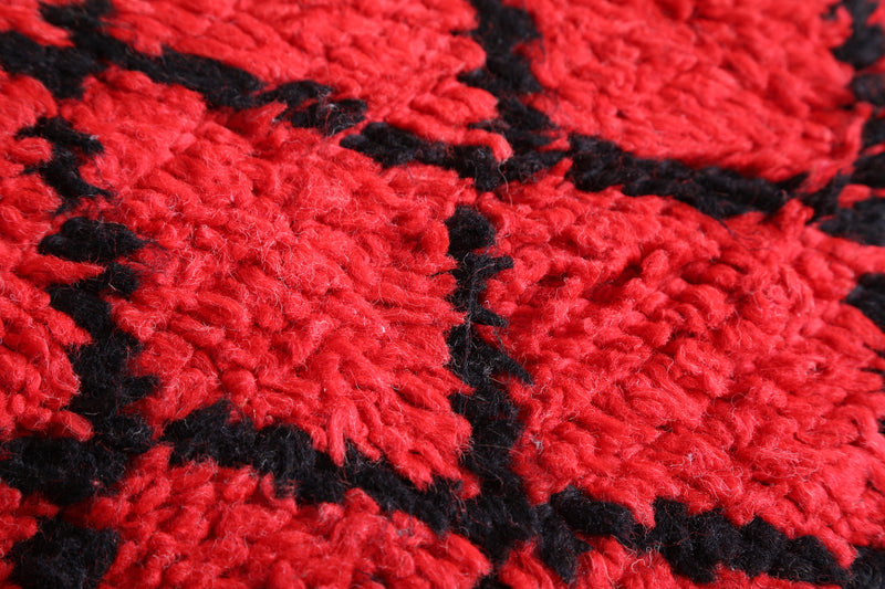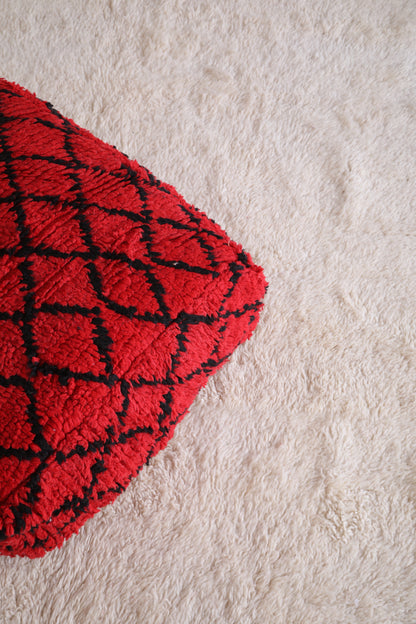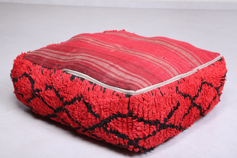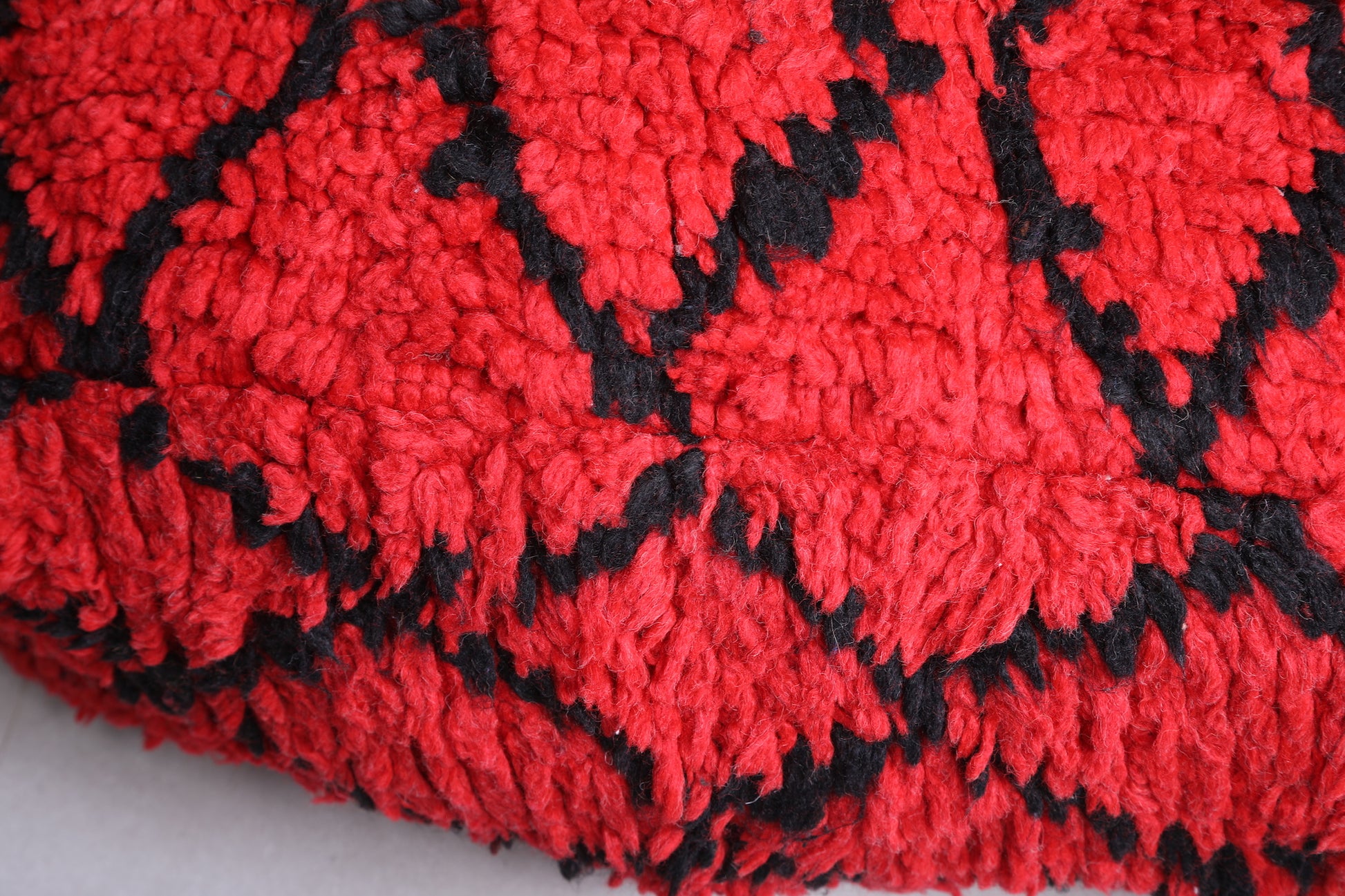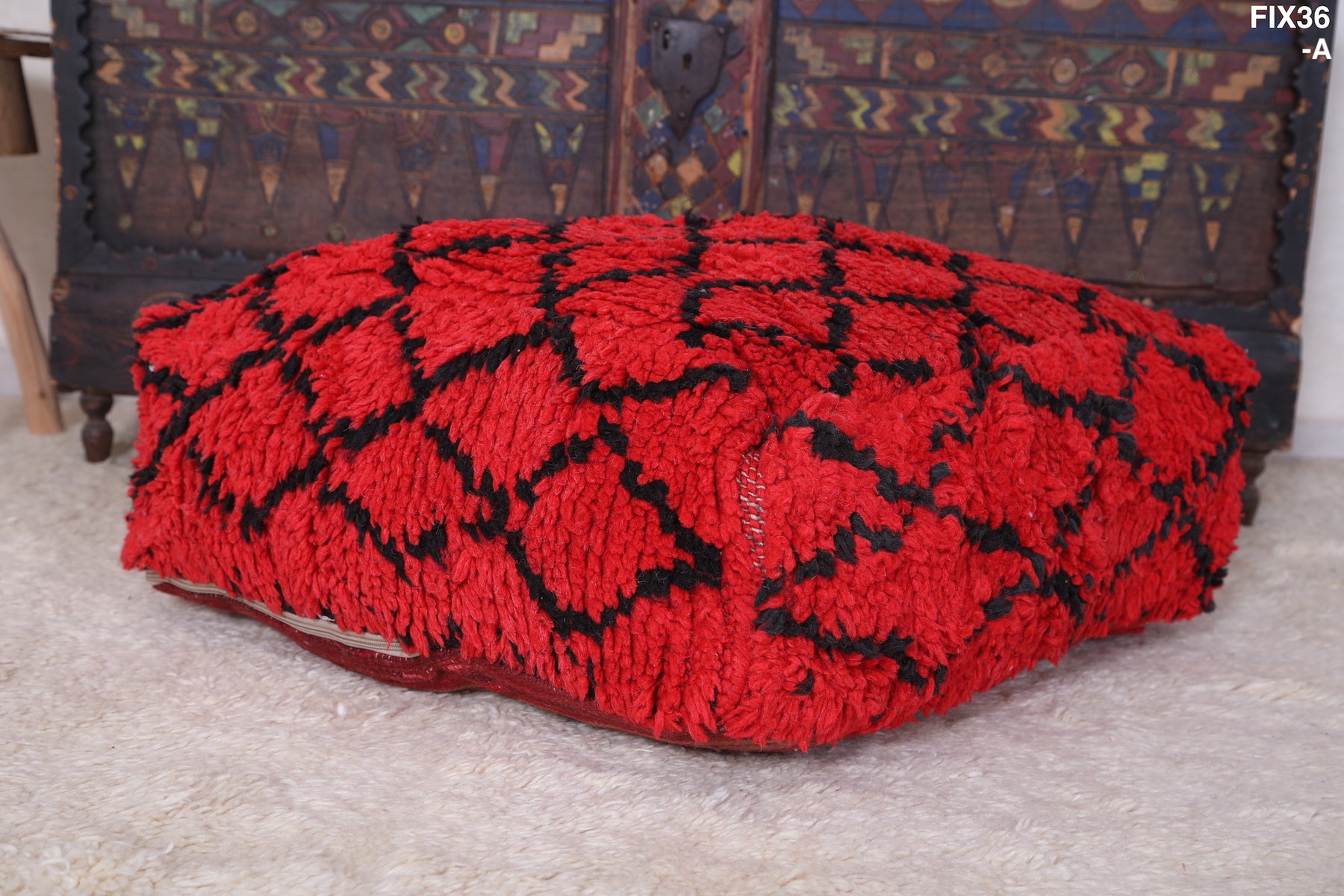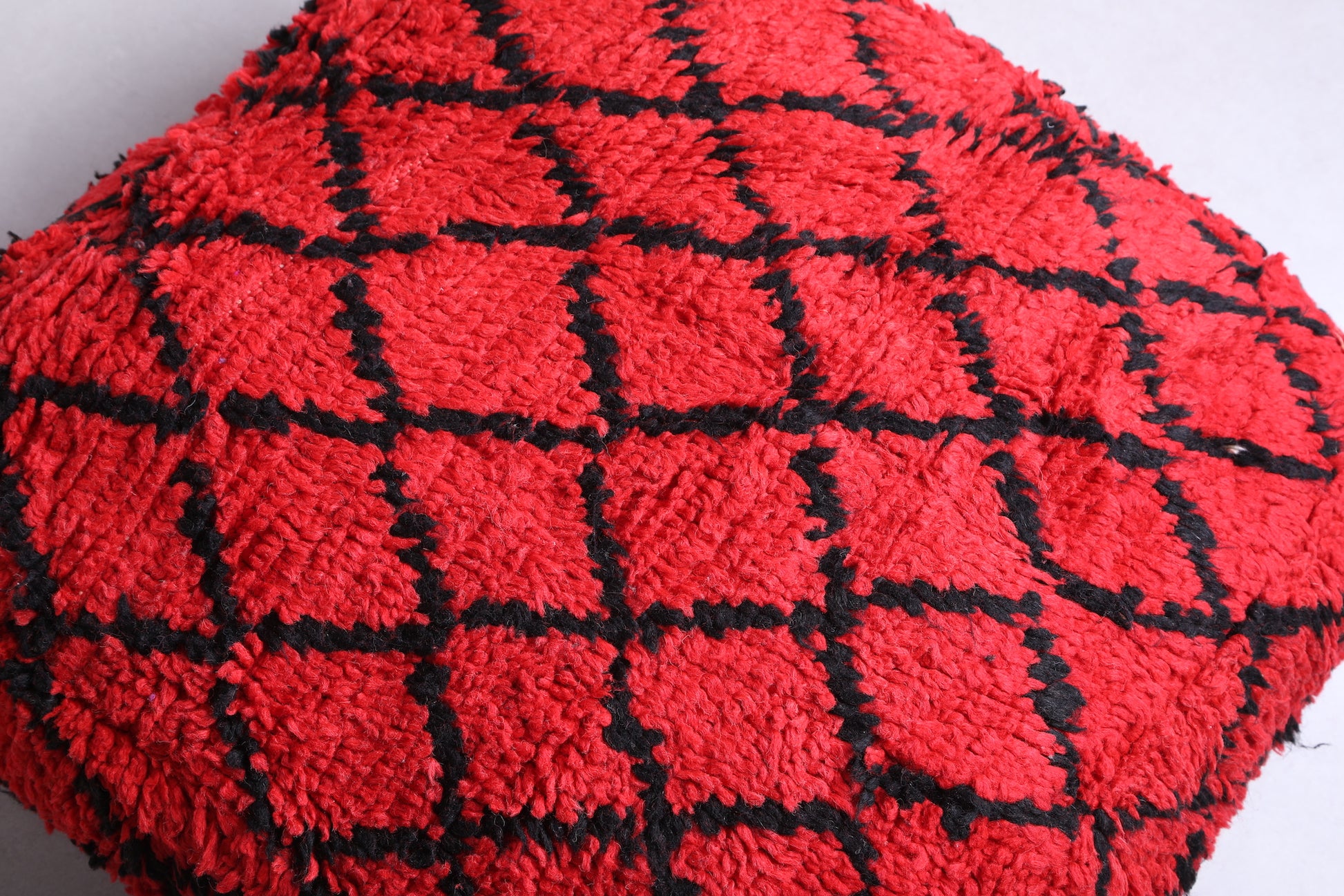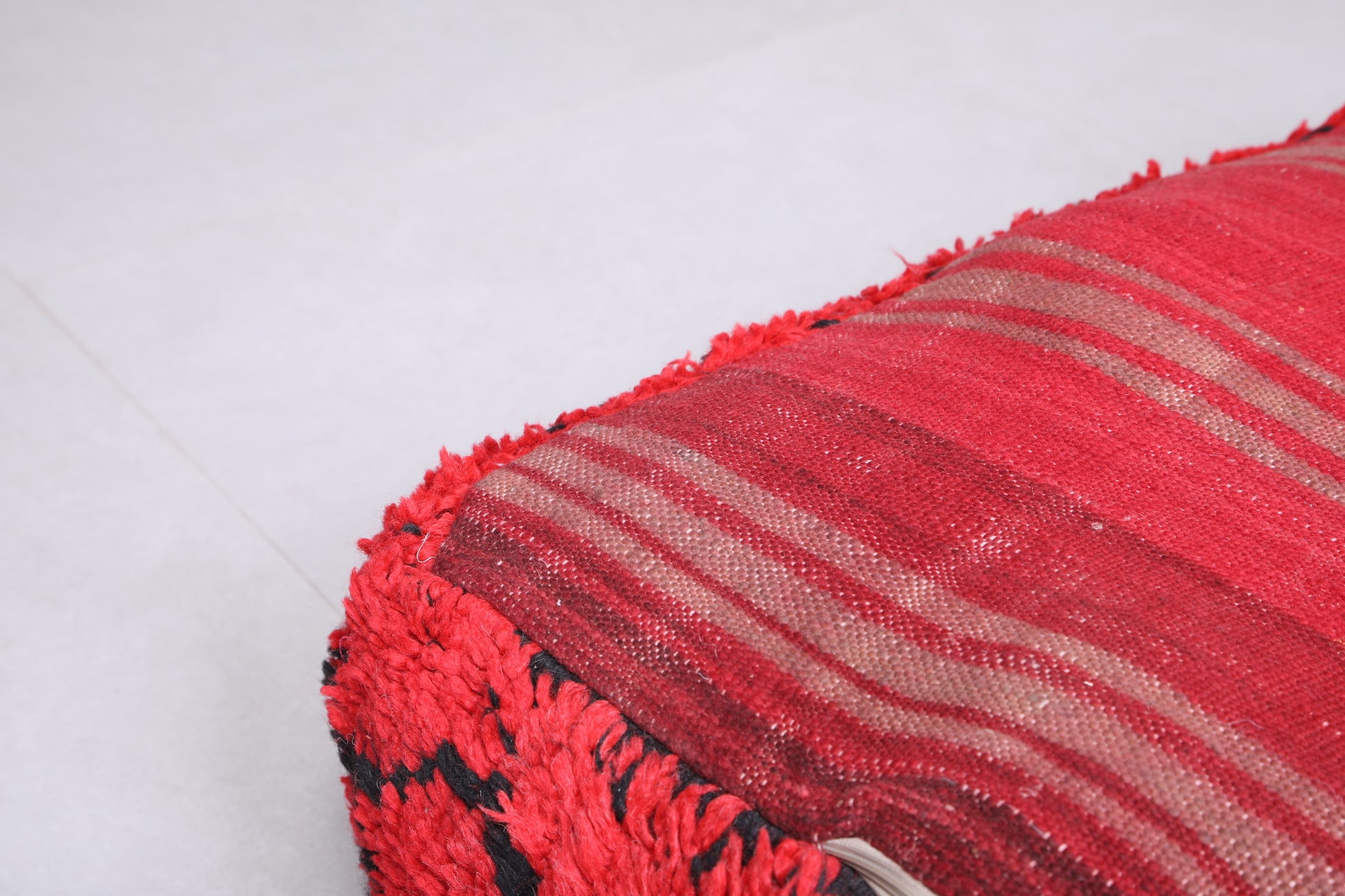 Make a bold statement with this vibrant red Berber pouf ottoman, featuring thick black lattice stripes that bring striking contrast and tribal rhythm to your decor. Handwoven from a plush vintage Moroccan rug, this floor cushion is equal parts art and utility—perfect for seating, lounging, or elevating your bohemian nook.