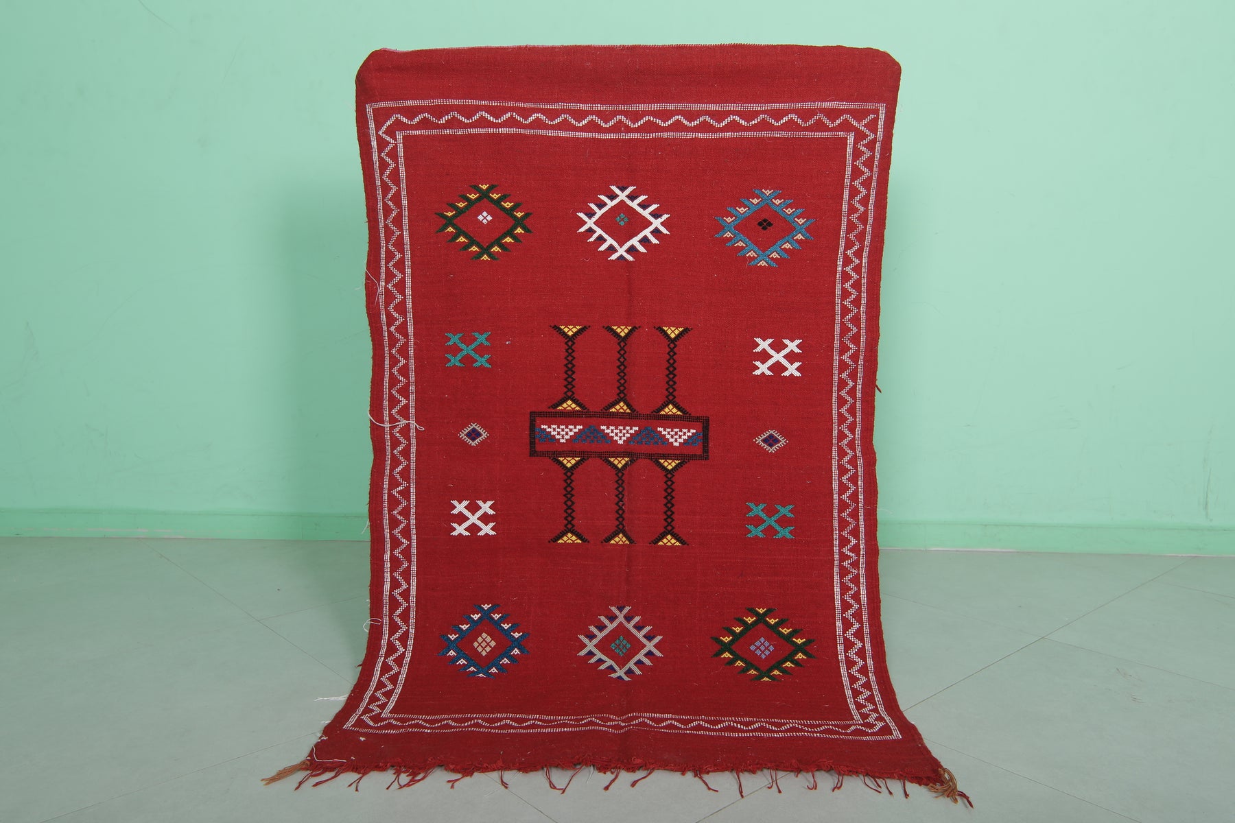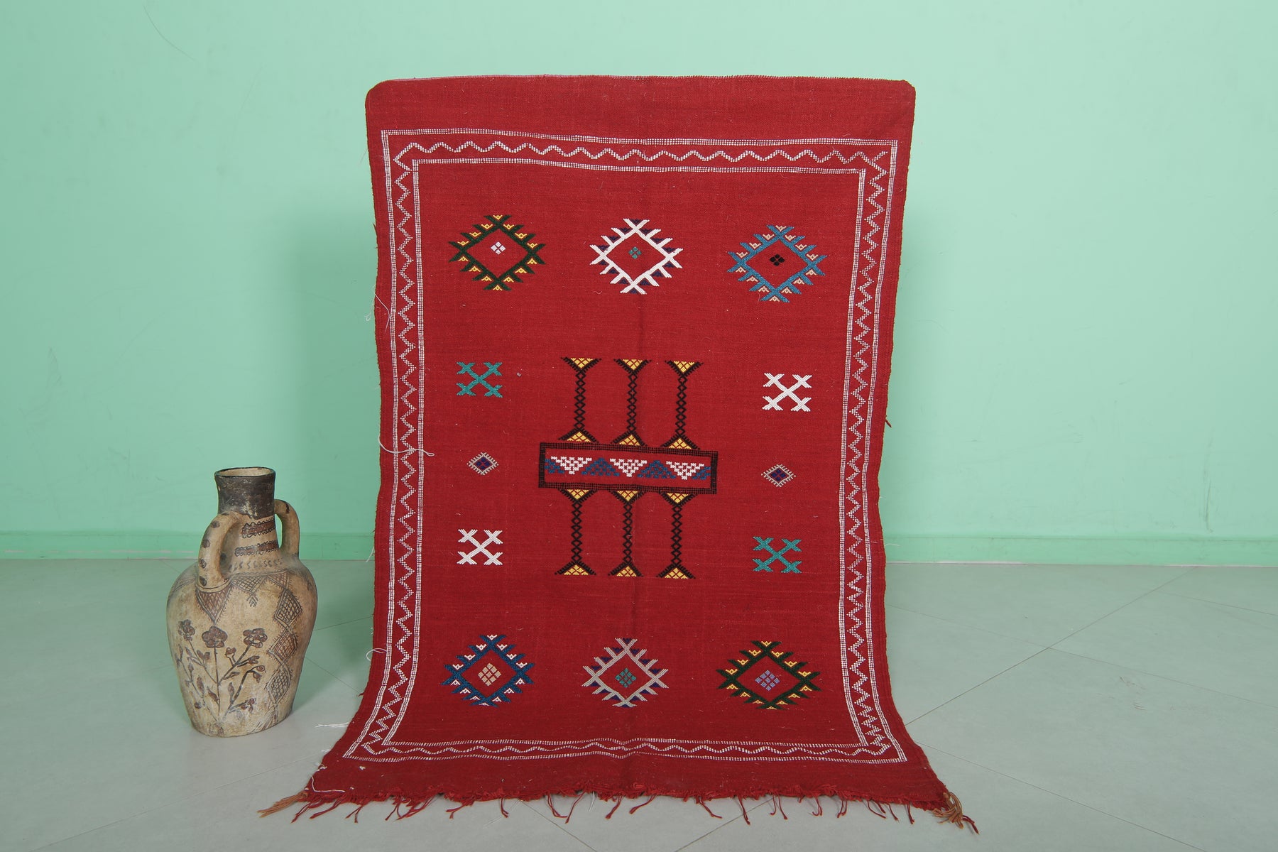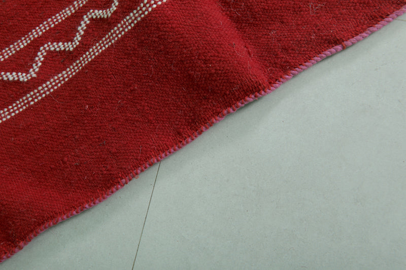 Red Handwoven Moroccan Kilim - 3.2 FT X 4.9 FT | Vibrant Berber Rug