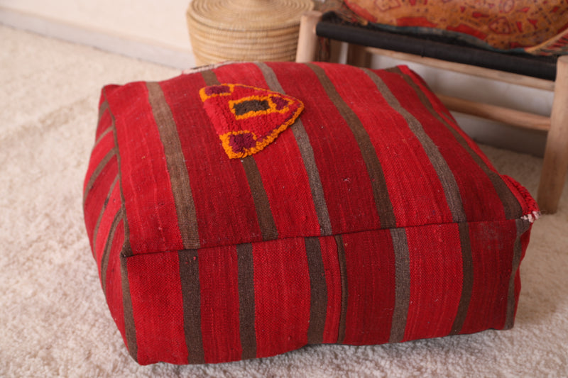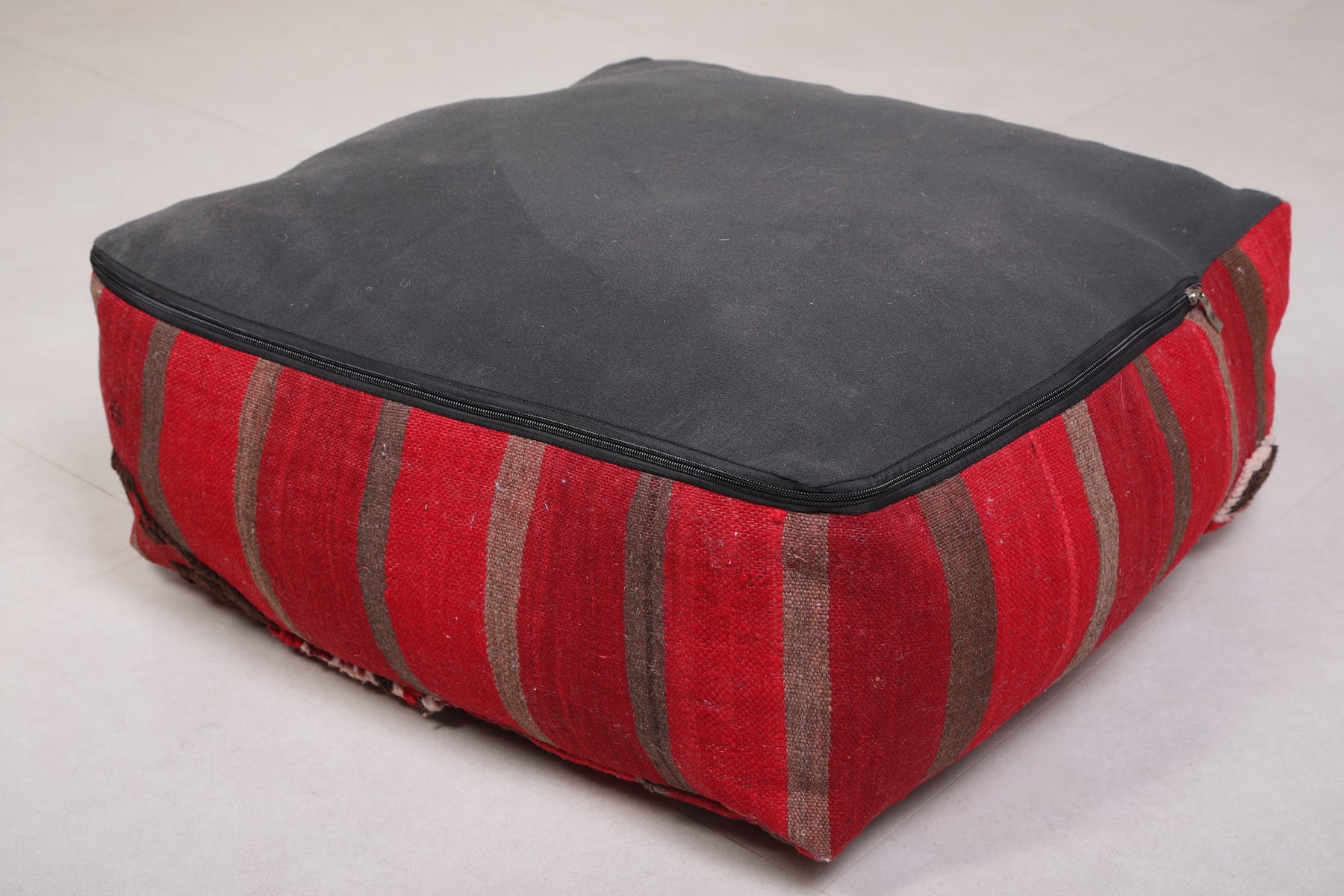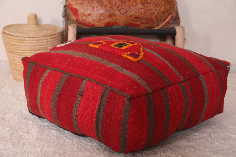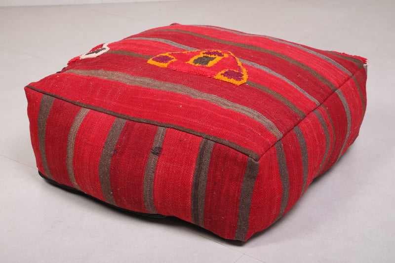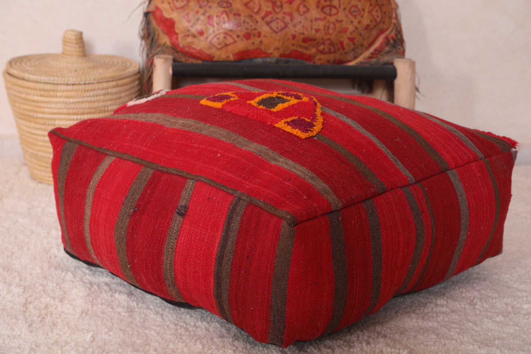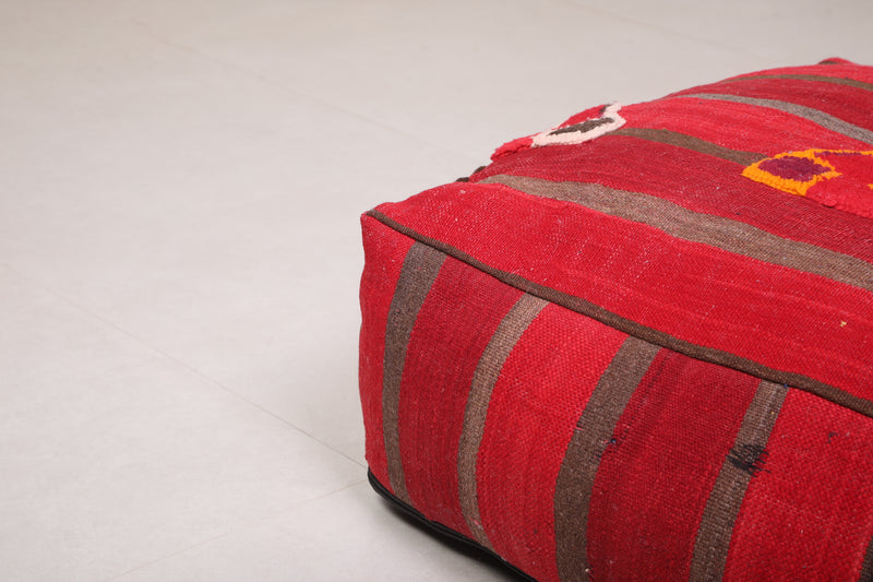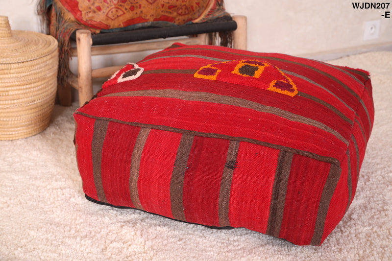 This kilim ottoman red berber pouf is made by a Very Old Moroccan rug.