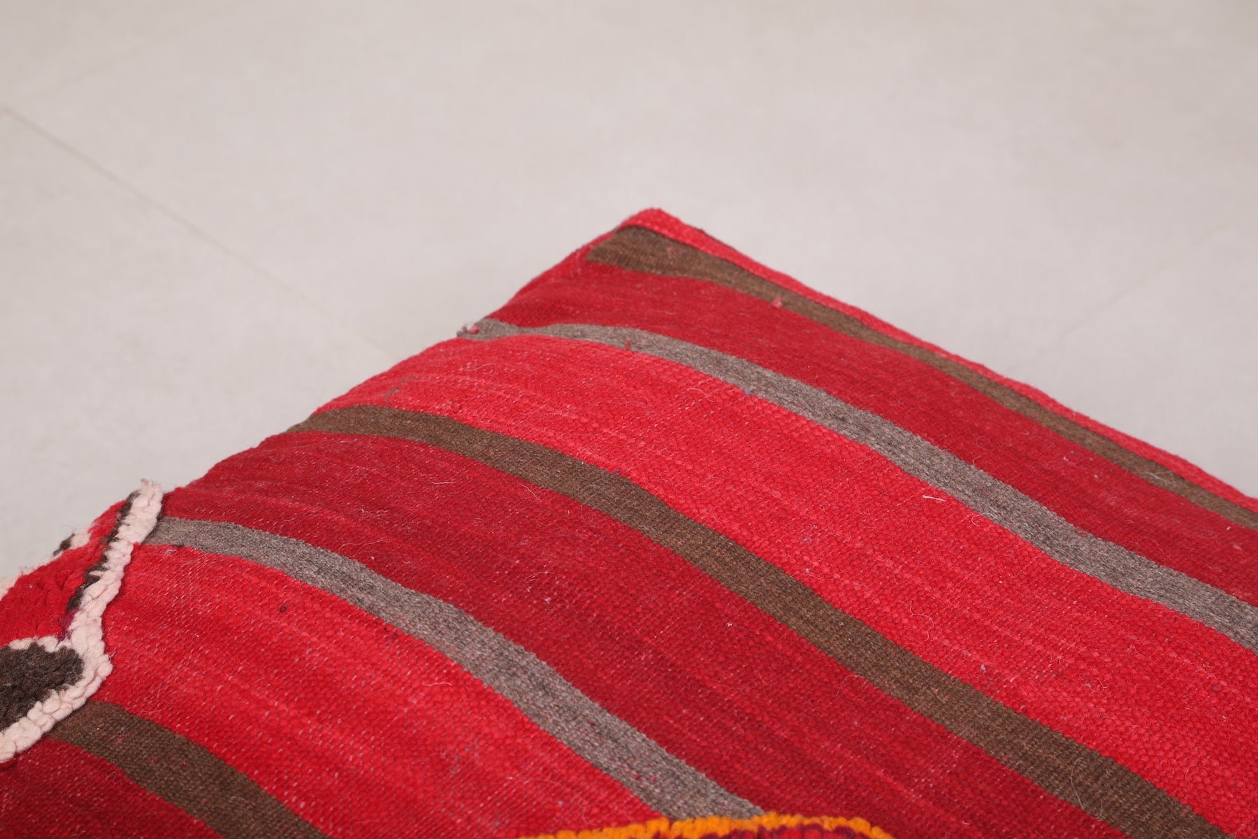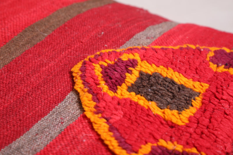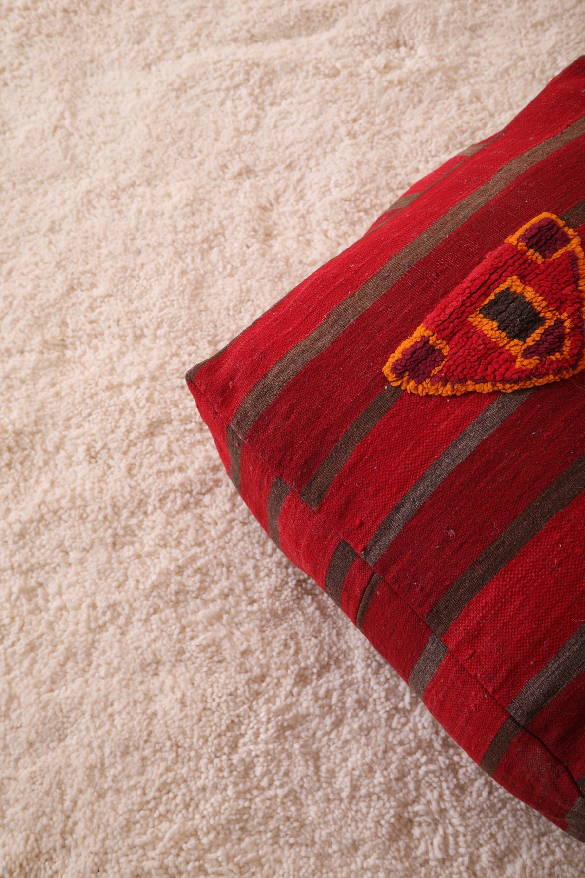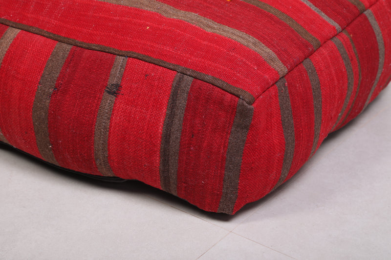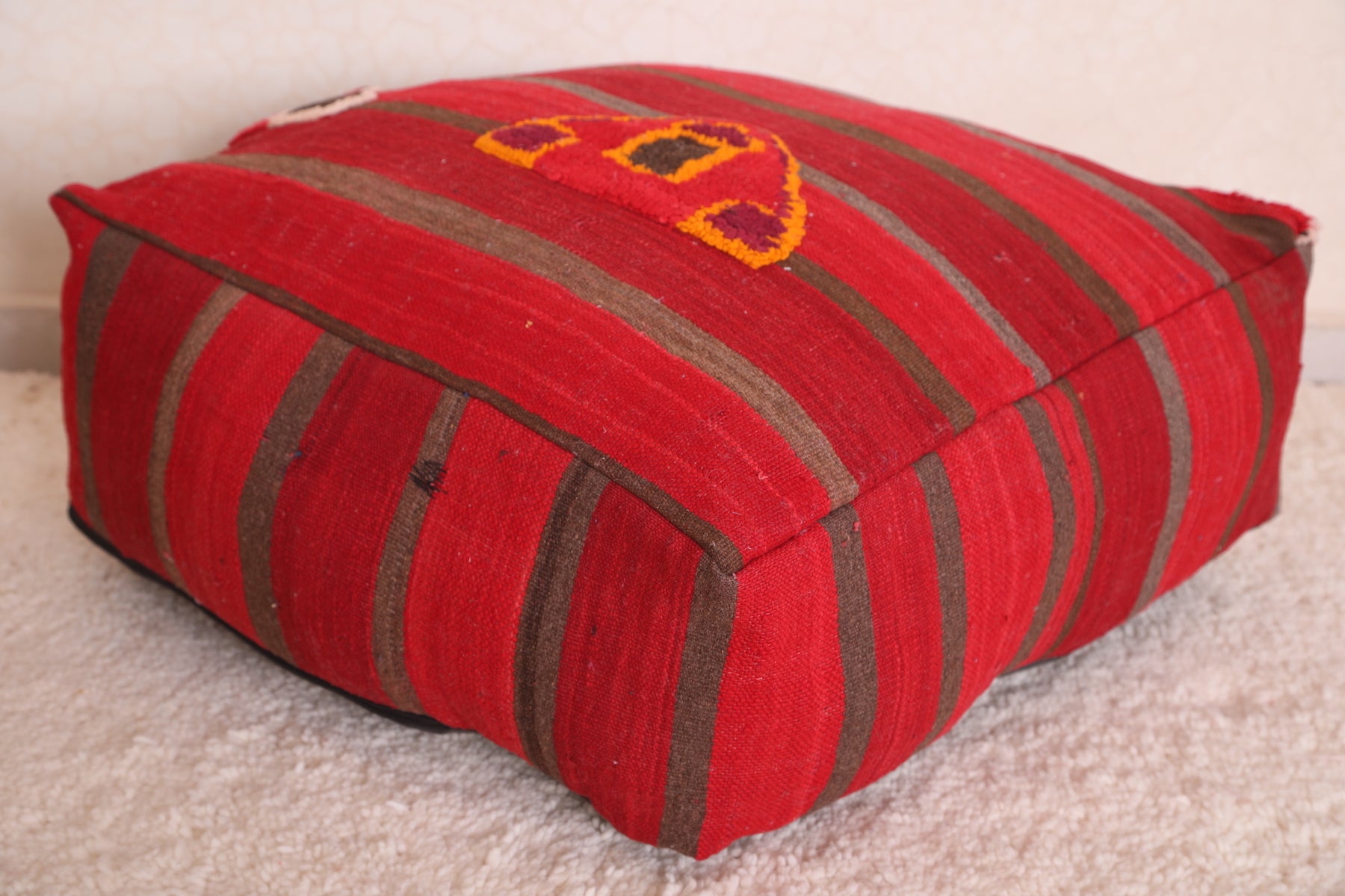 This kilim ottoman red berber pouf is made by a Very Old Moroccan rug.