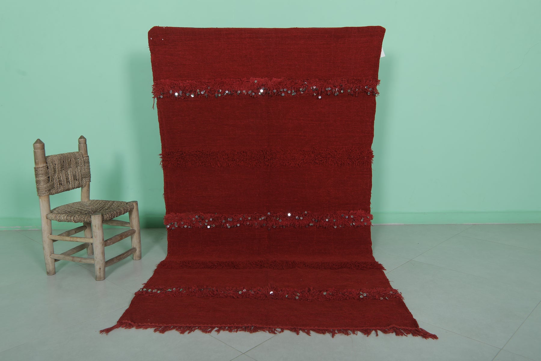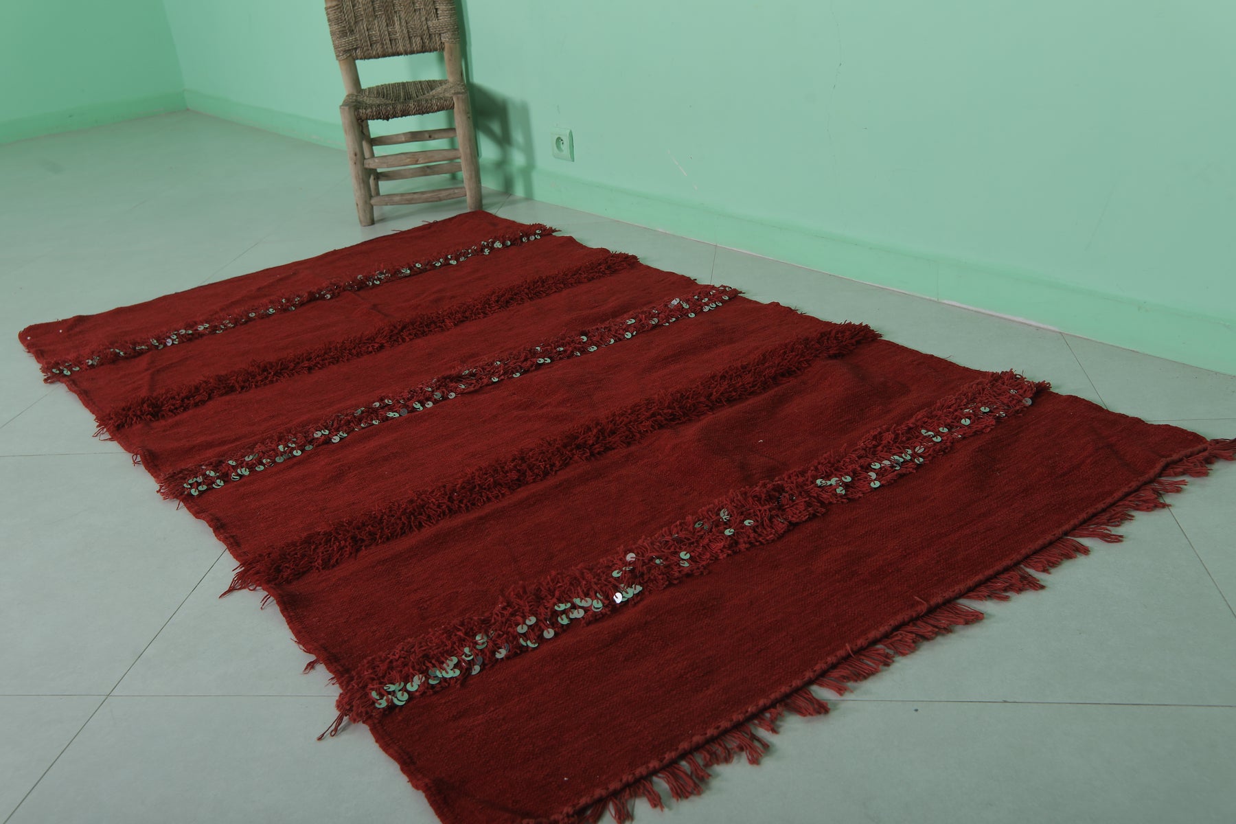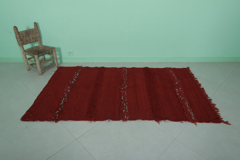 Red Moroccan Kilim Rug 3.6 X 6.3 Feet