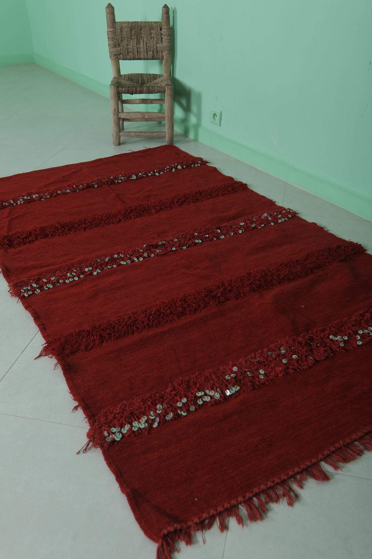 Red Moroccan Kilim Rug 3.6 X 6.3 Feet - Runner moroccan rugs