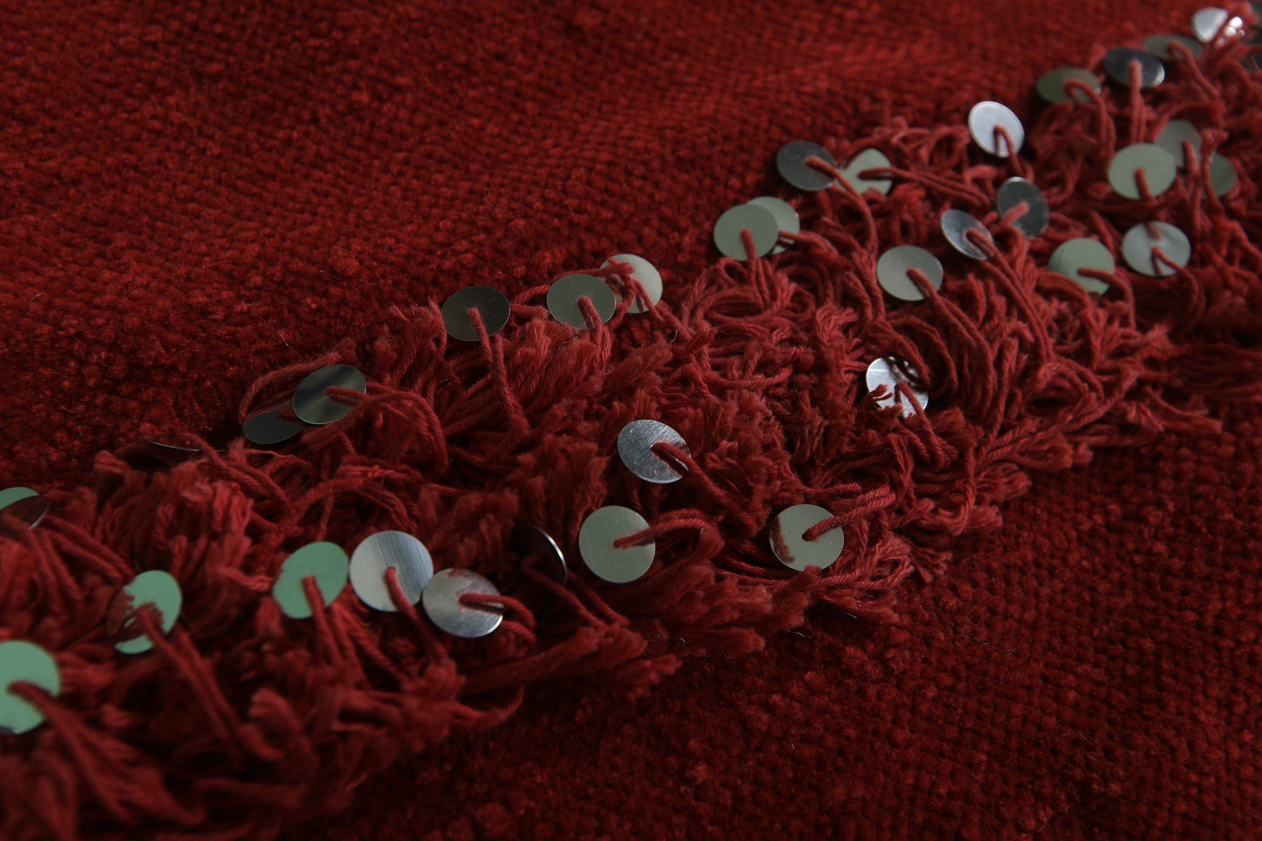 The Dimensions of this Red Moroccan Kilim Rug does not include tassels.