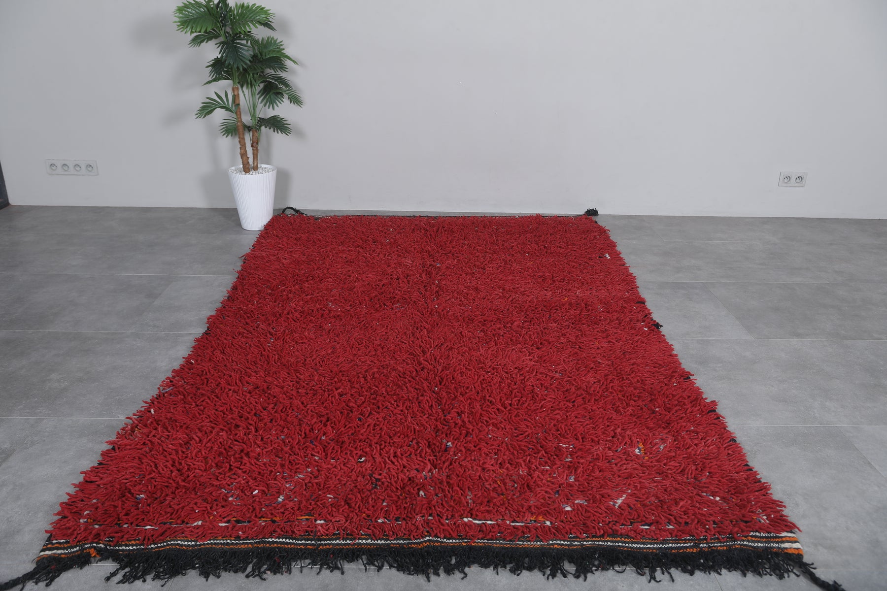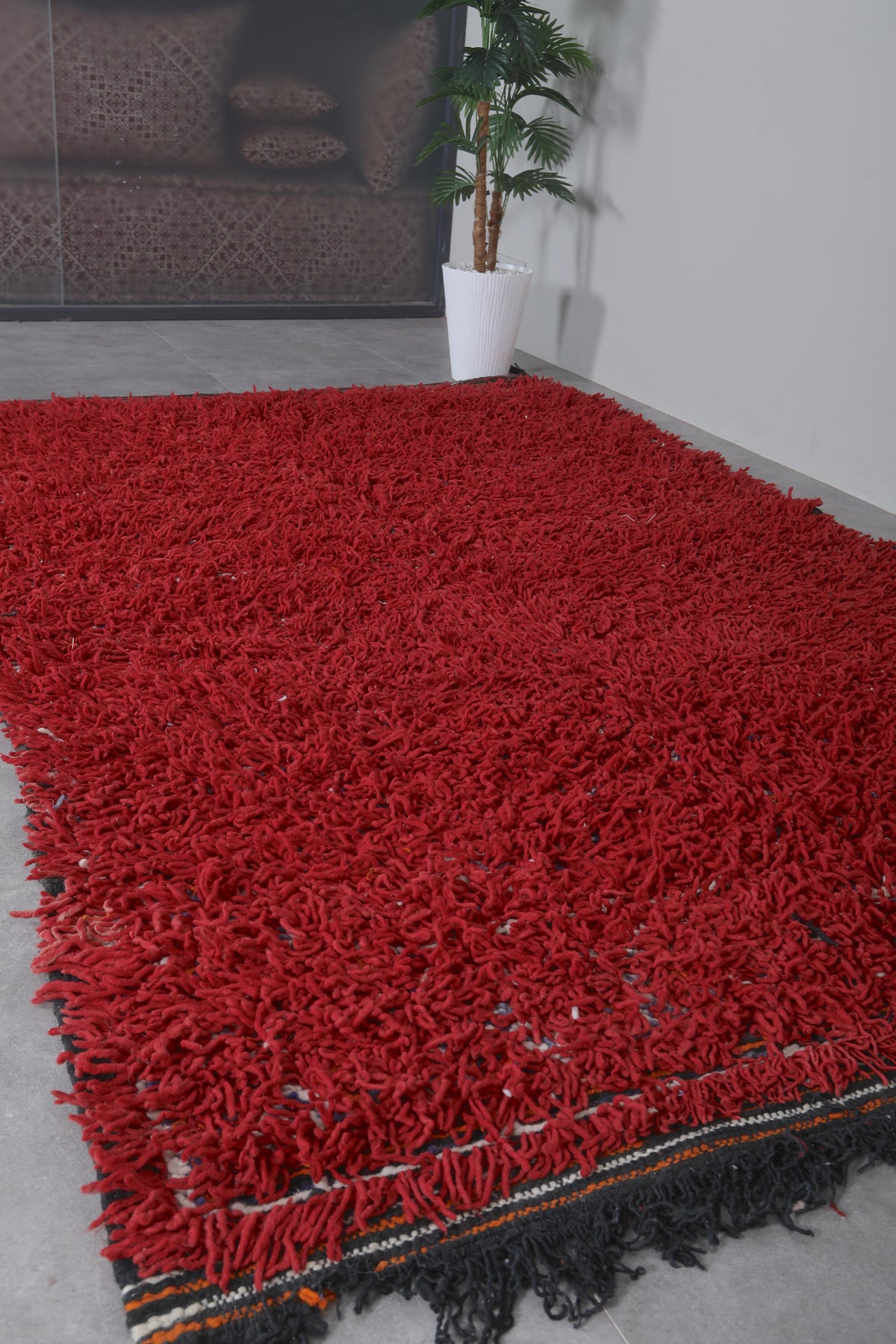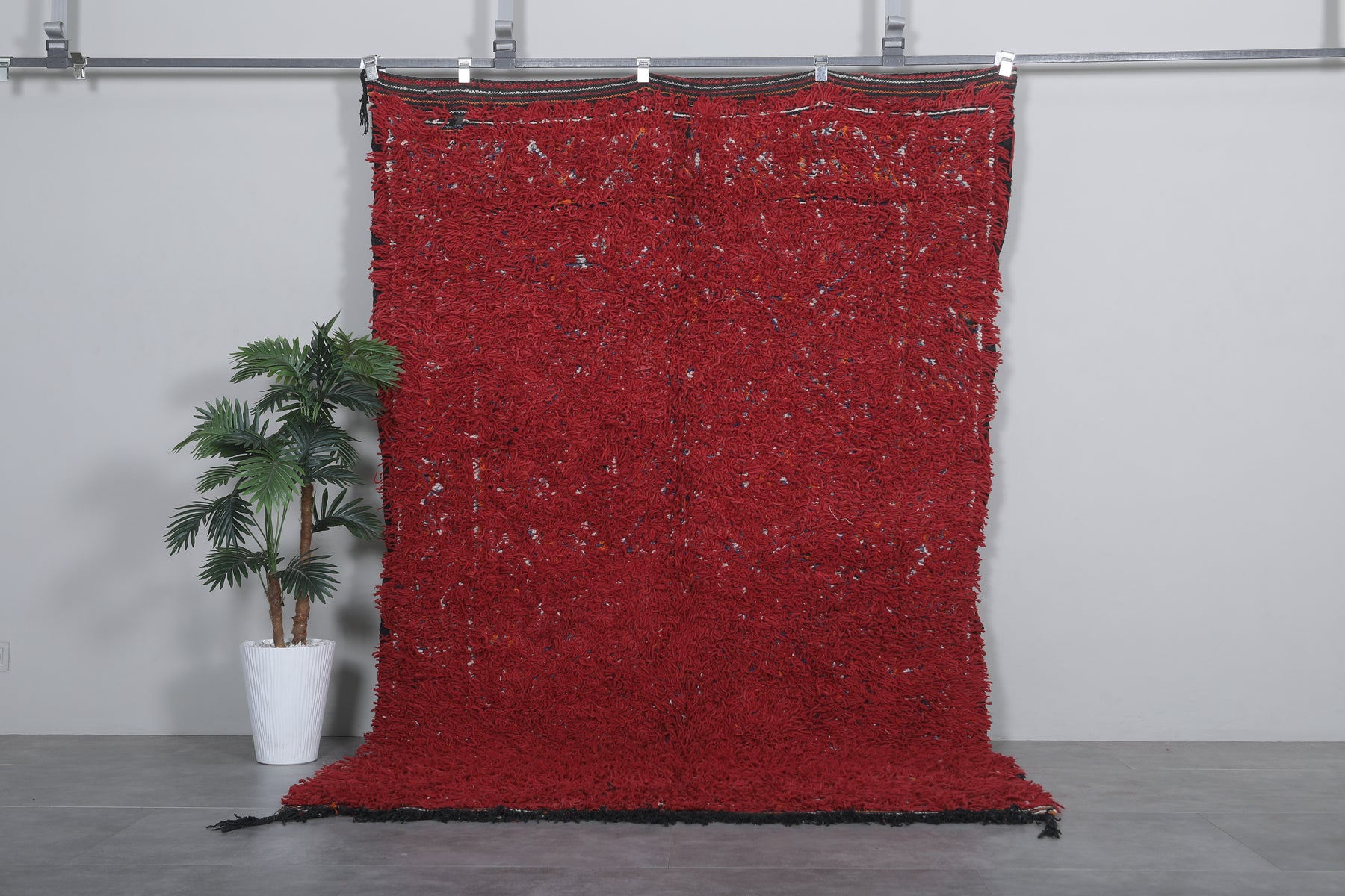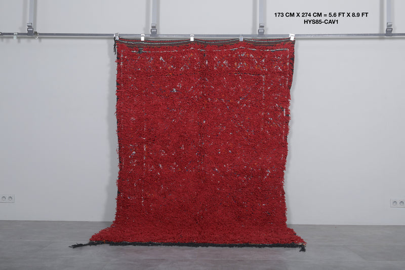 Add a bold statement to your decor with this red Moroccan rug, measuring 5.6 x 8.9 feet. The deep red hues combined with intricate traditional patterns create a striking focal point in any room.