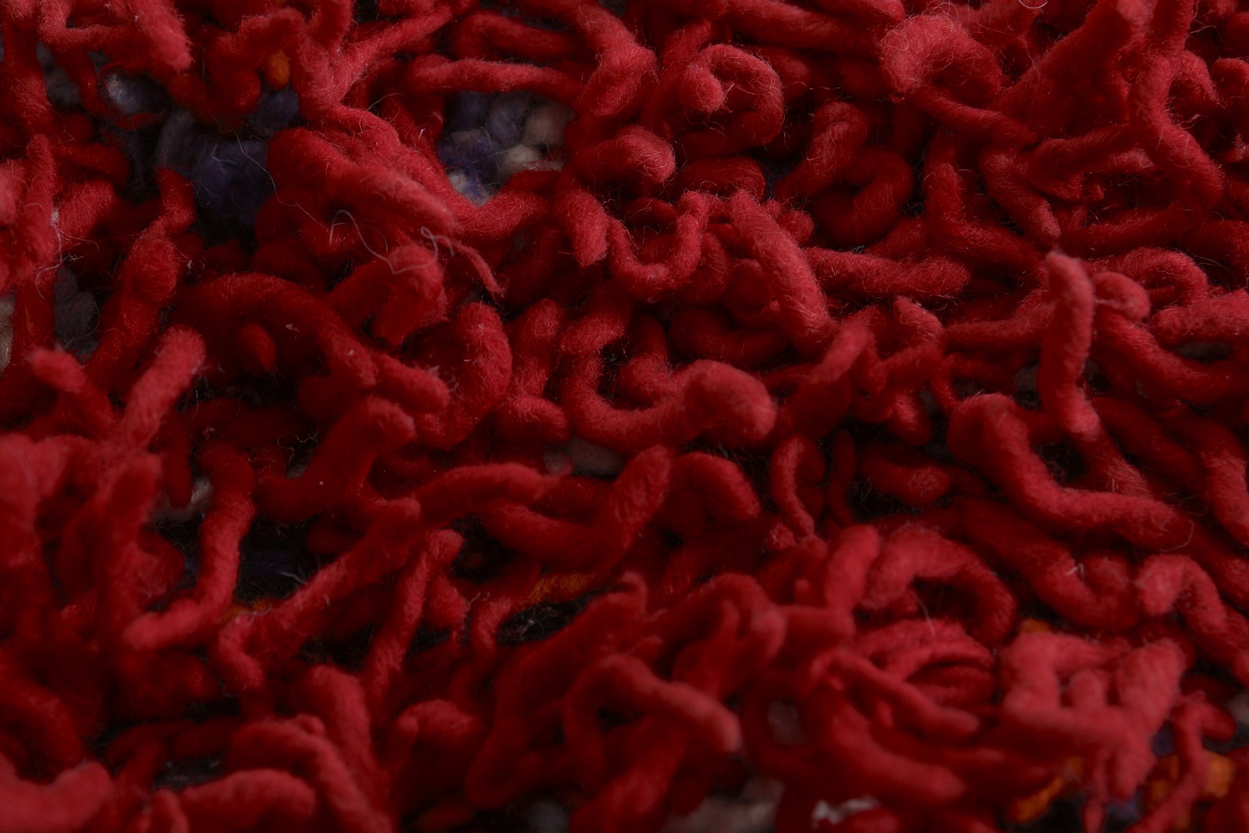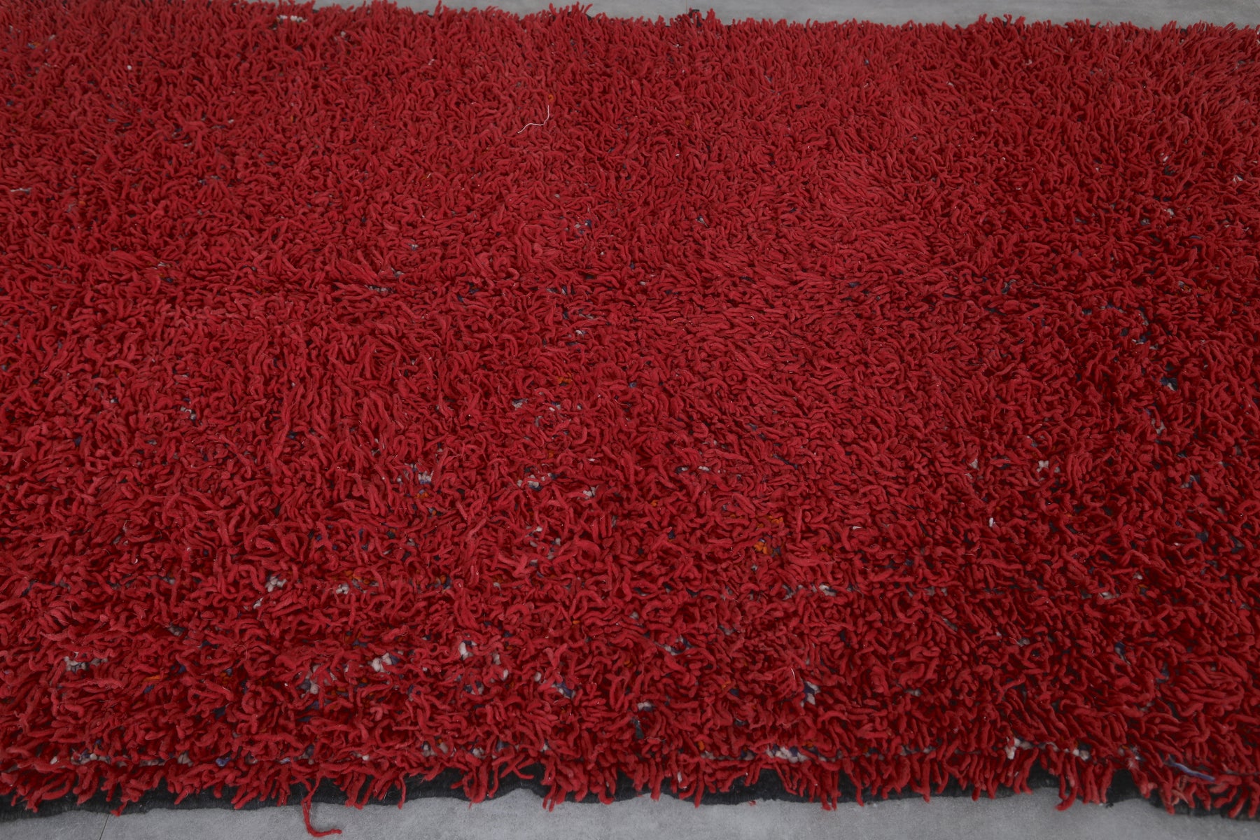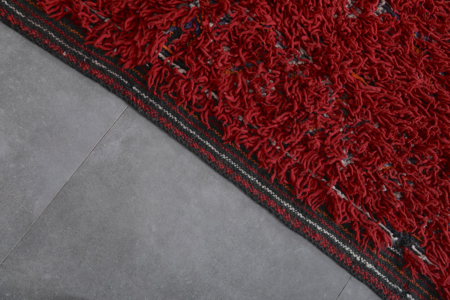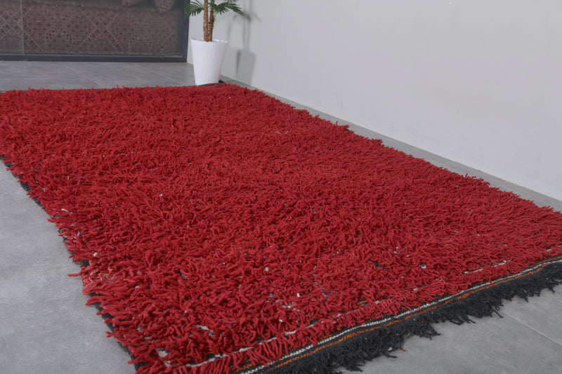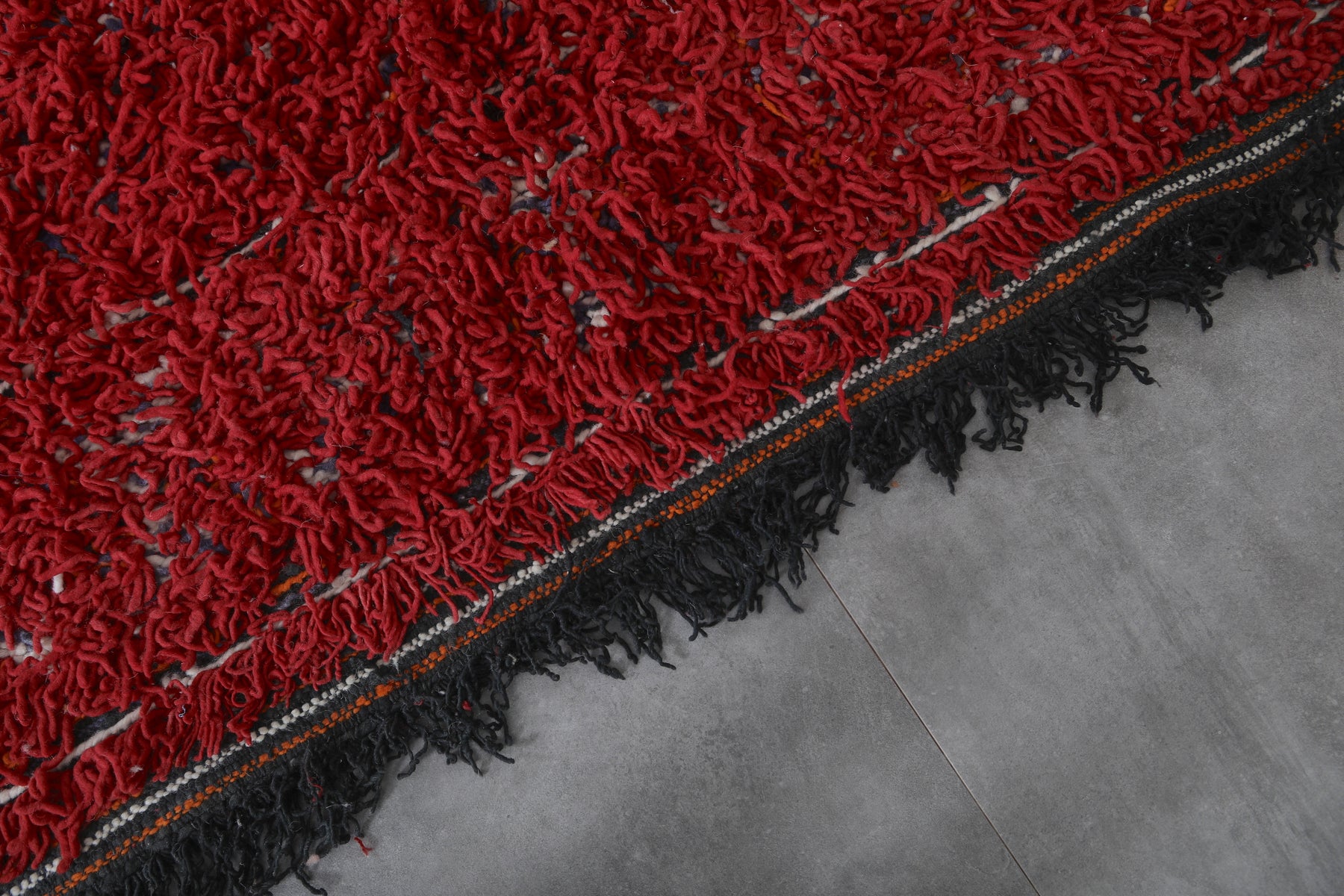 Add a bold statement to your decor with this red Moroccan rug, measuring 5.6 x 8.9 feet. The deep red hues combined with intricate traditional patterns create a striking focal point in any room.