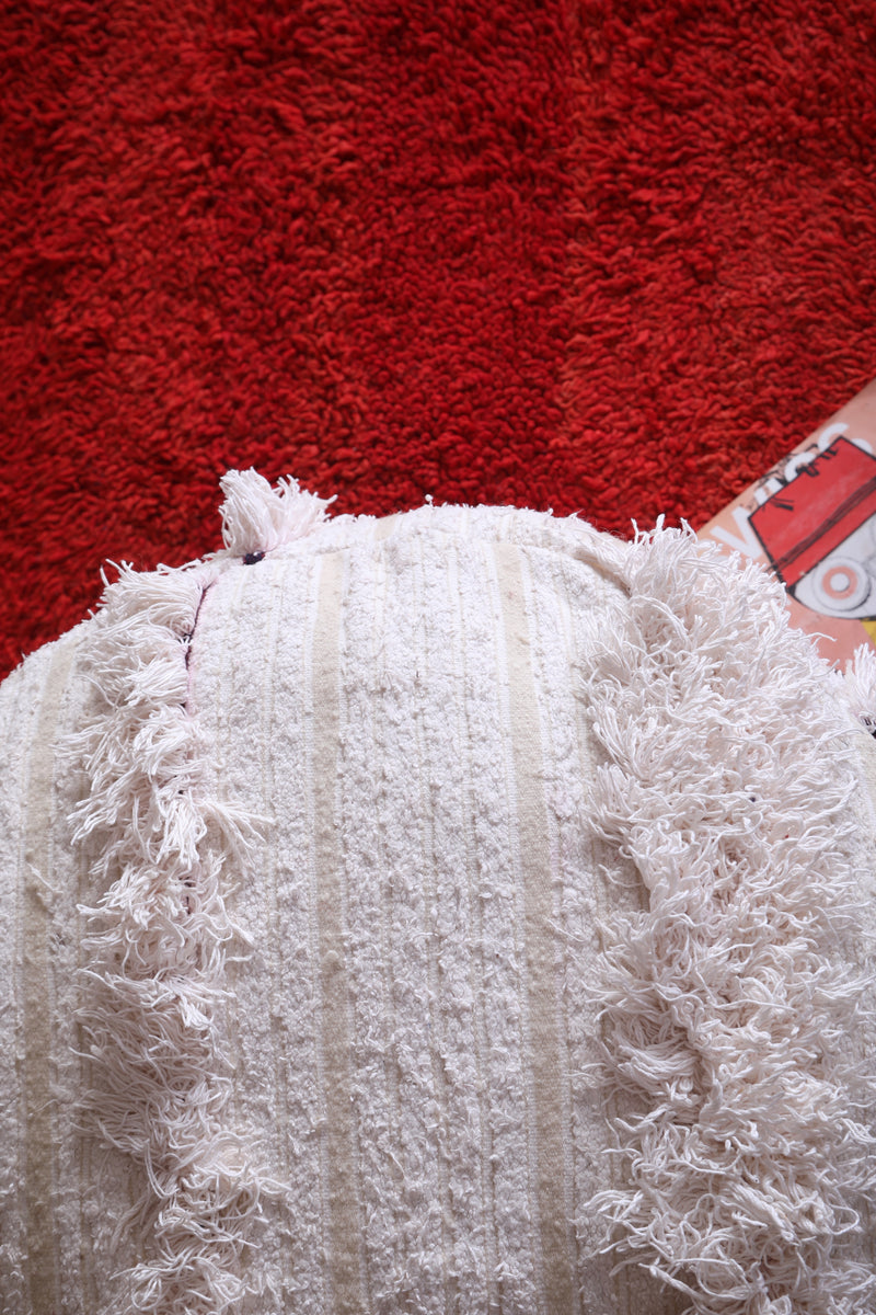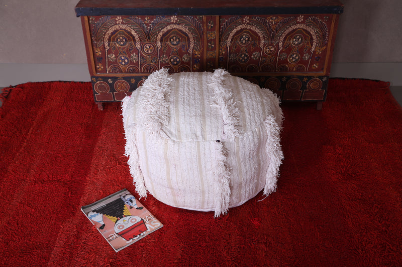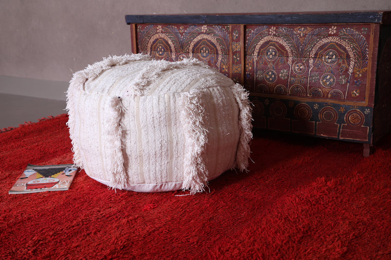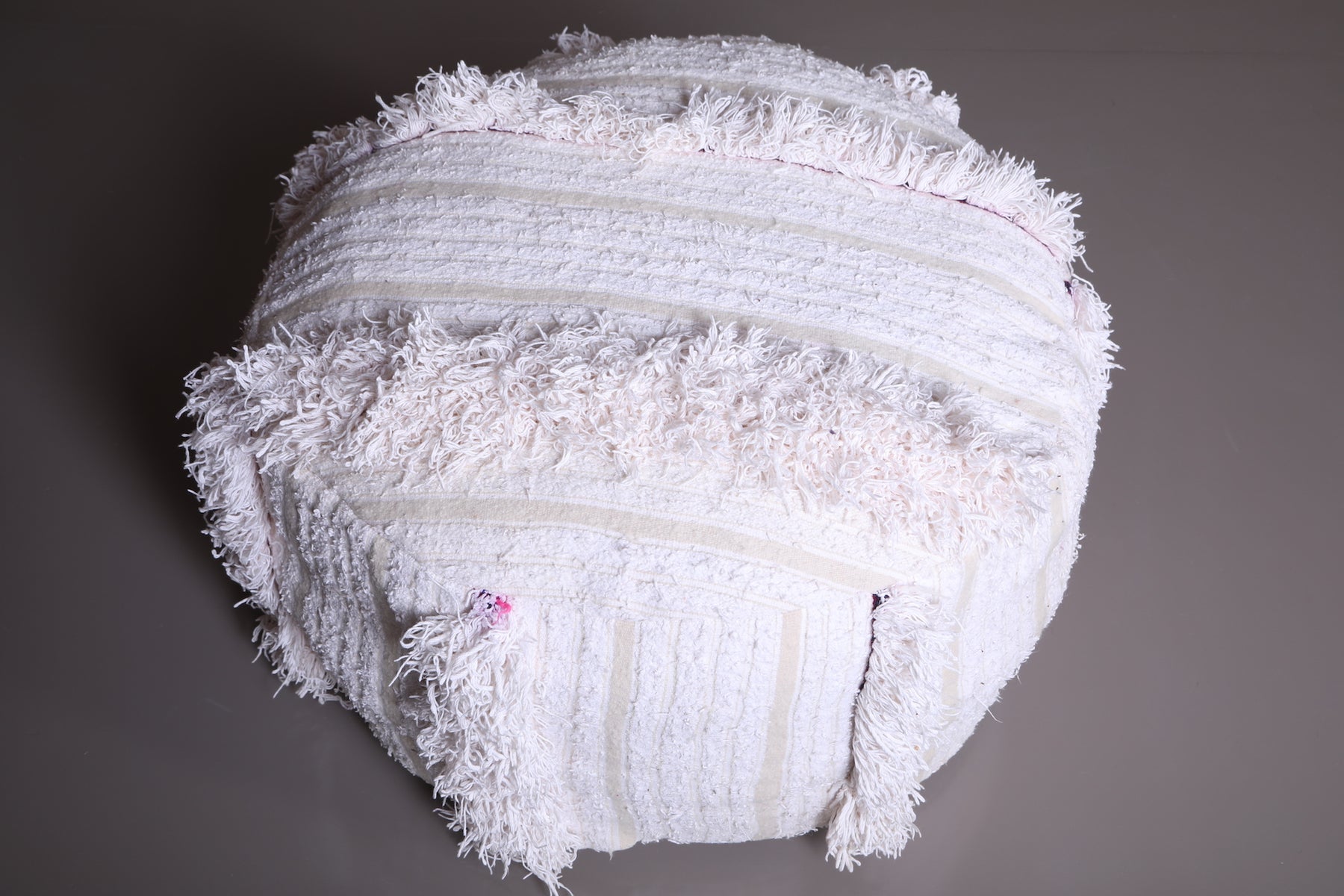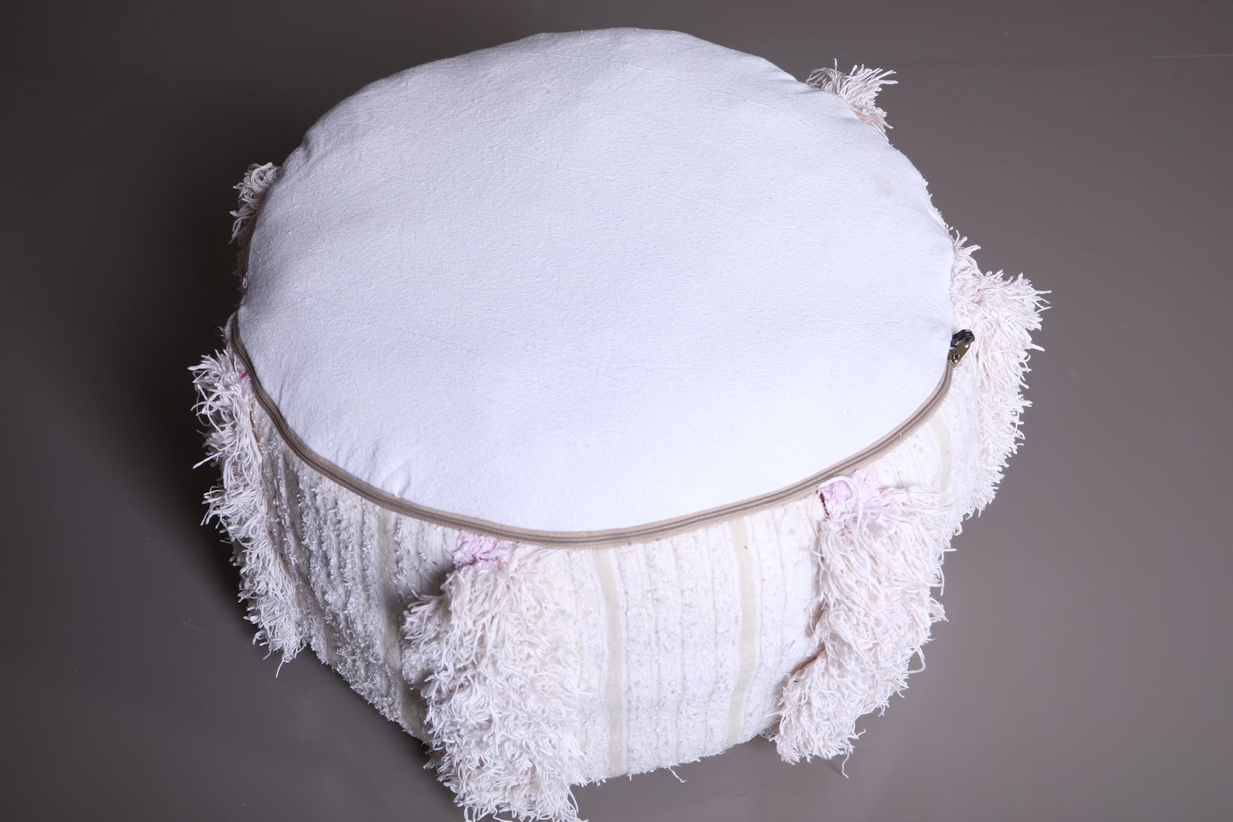 This Ottoman round pouf seat is made by a Very Old Moroccan rug.