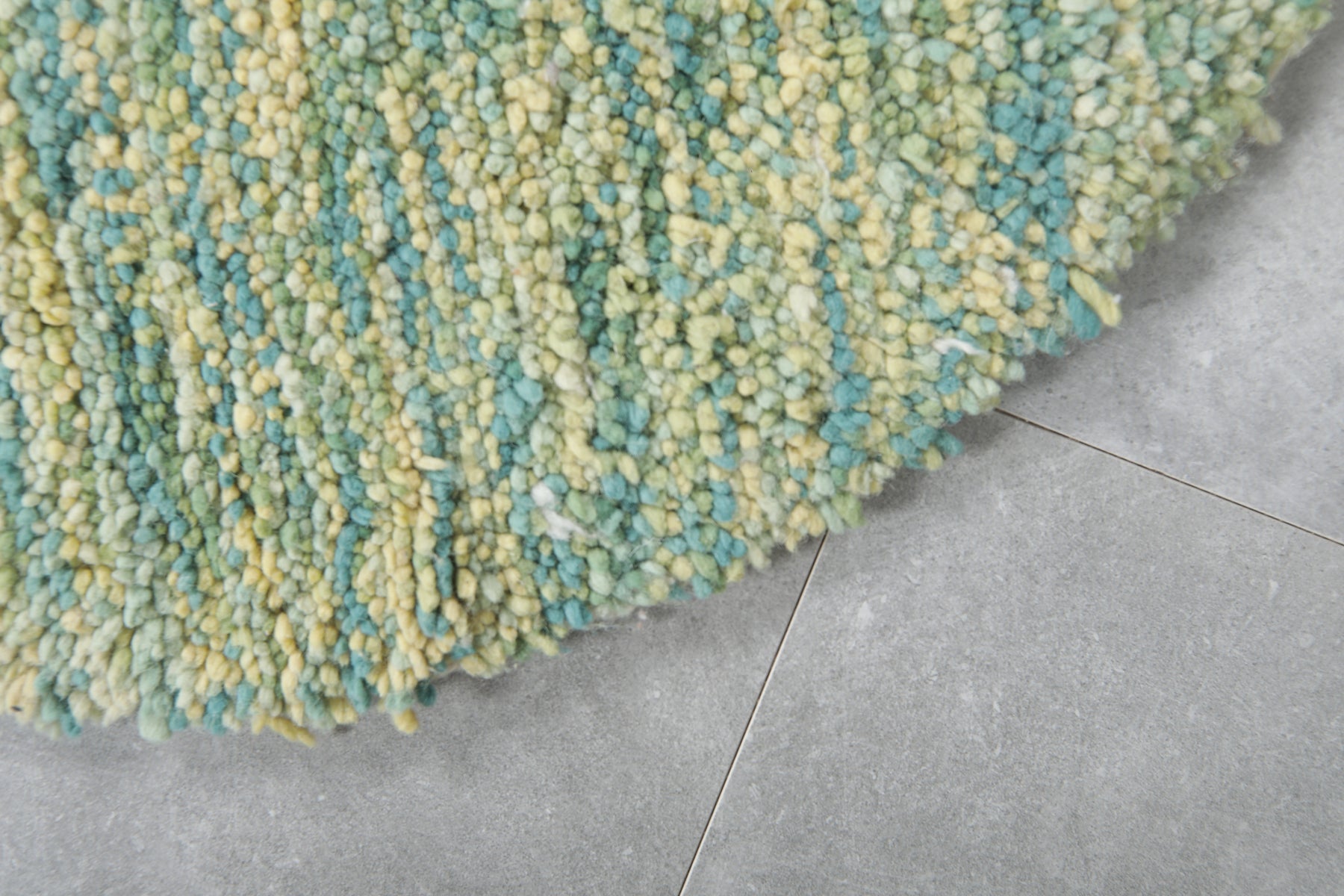 Bring a unique touch of Moroccan artistry and cozy warmth to your home with this 5 ft round handmade wool rug, crafted by skilled Berber artisans in the Atlas Mountains using 100% natural wool. Its soft ivory texture features subtle geometric patterns that reflect the rich Amazigh heritage. The compact round shape and plush feel make it perfect for entryways, reading nooks, or as a standout accent in any room, adding handcrafted beauty and cultural richness to your space.
