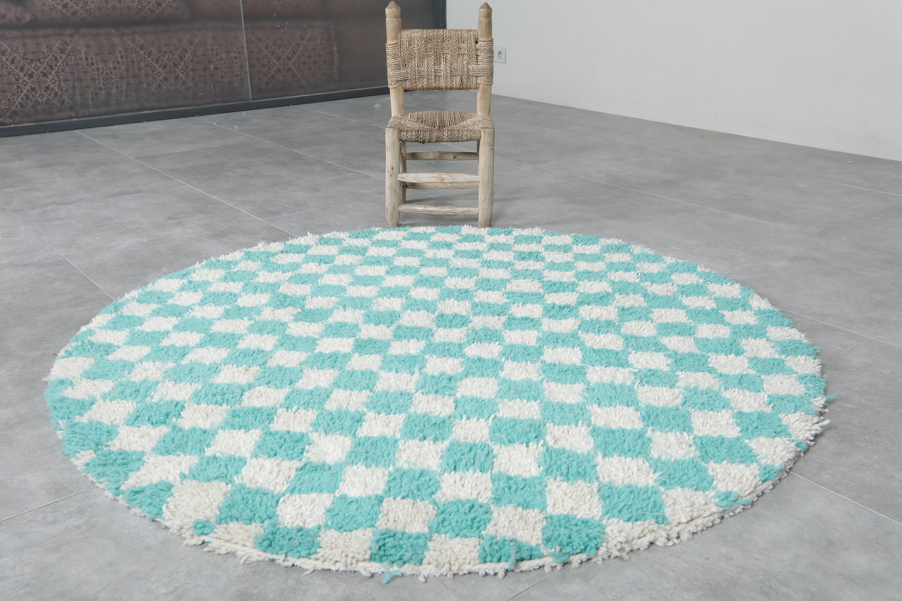Moroccan round rug - checkered rug