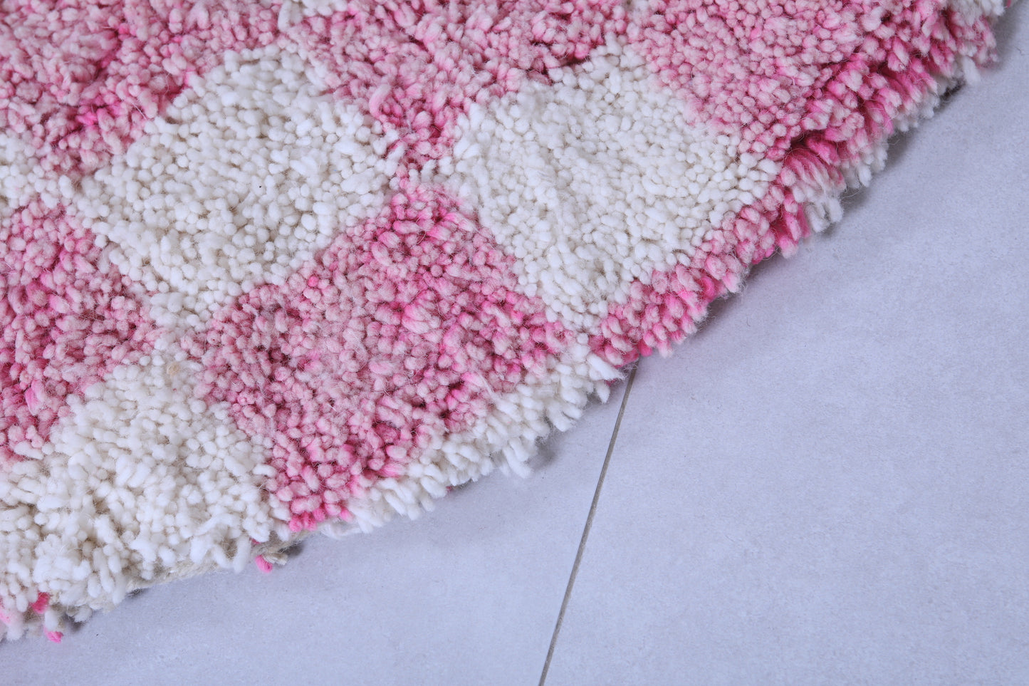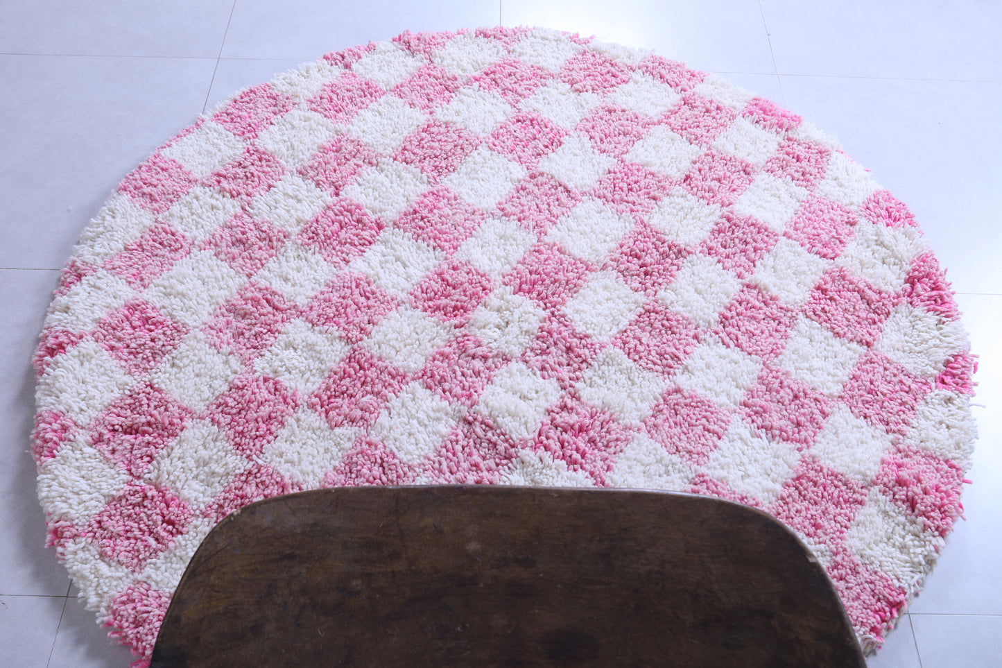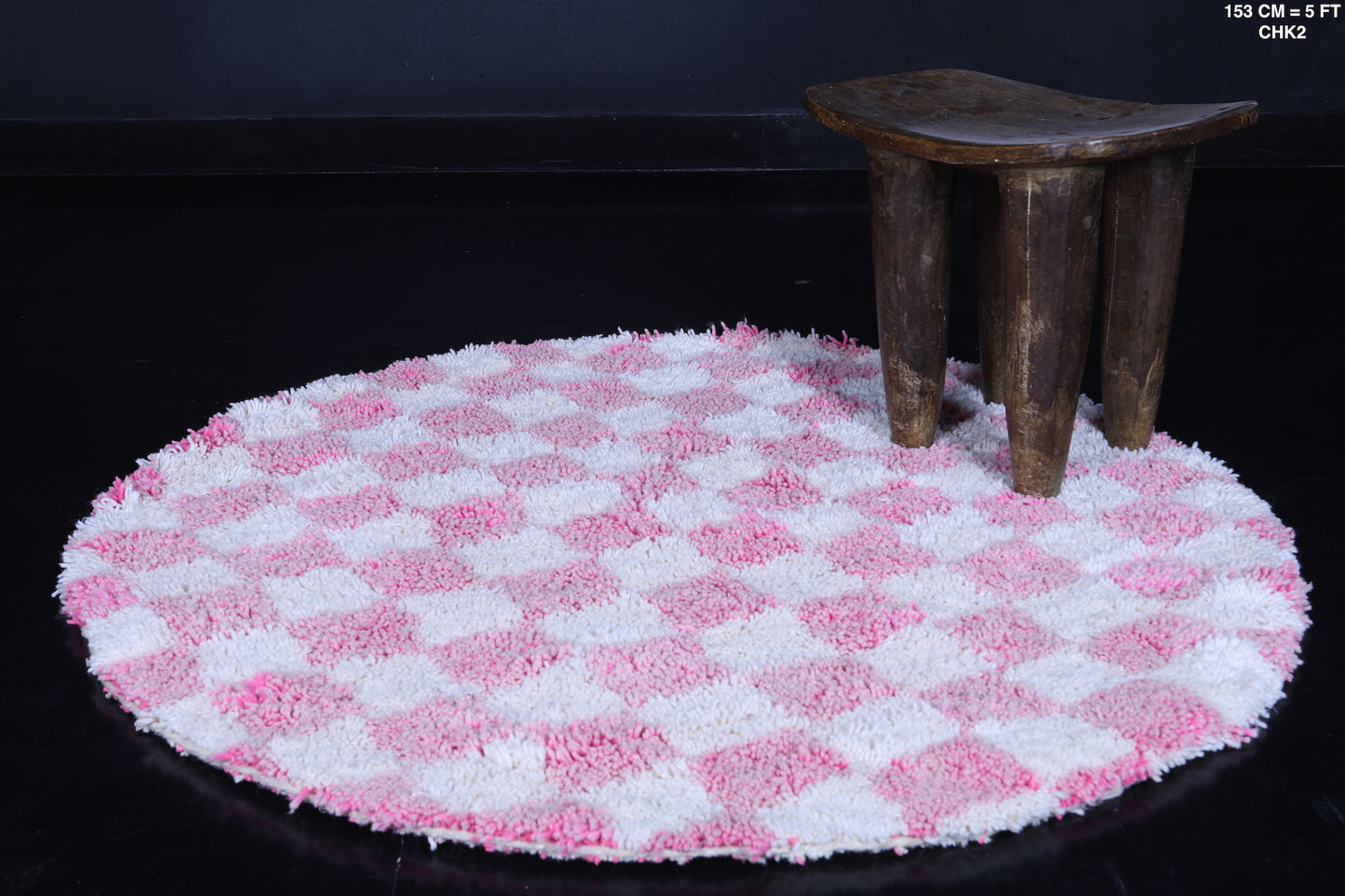 Round Moroccan Wool Rug - 5ft Pink Checkerboard