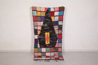 Make a bold statement with this Runner Boucherouite Rug, measuring 3.4 x 7.1 feet. This handwoven Moroccan rug features a striking central motif surrounded by a colorful checkered pattern, crafted from upcycled textiles. Its unique design blends traditional Moroccan artistry with contemporary style, making it perfect for hallways, entryways, or narrow spaces. Eco-friendly and visually captivating, this rug brings both functionality and character to your decor.