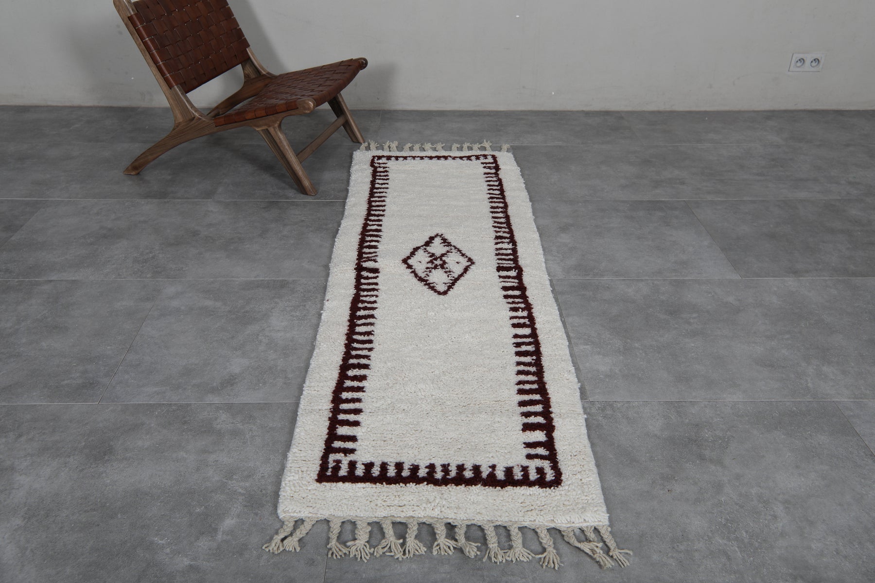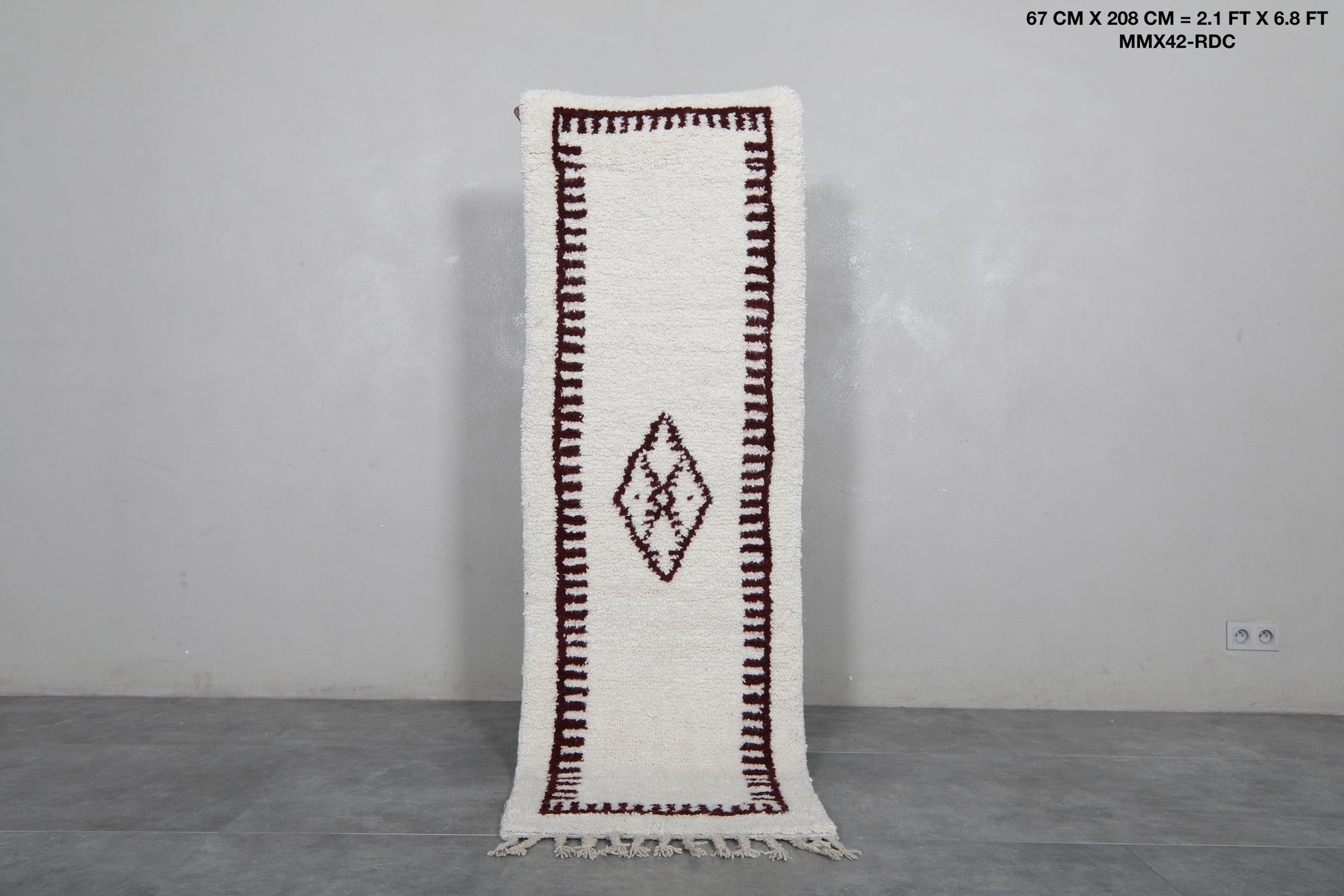 Runner Moroccan rug - 2.1 x 6.8 Feet | Handwoven with central diamond motif
