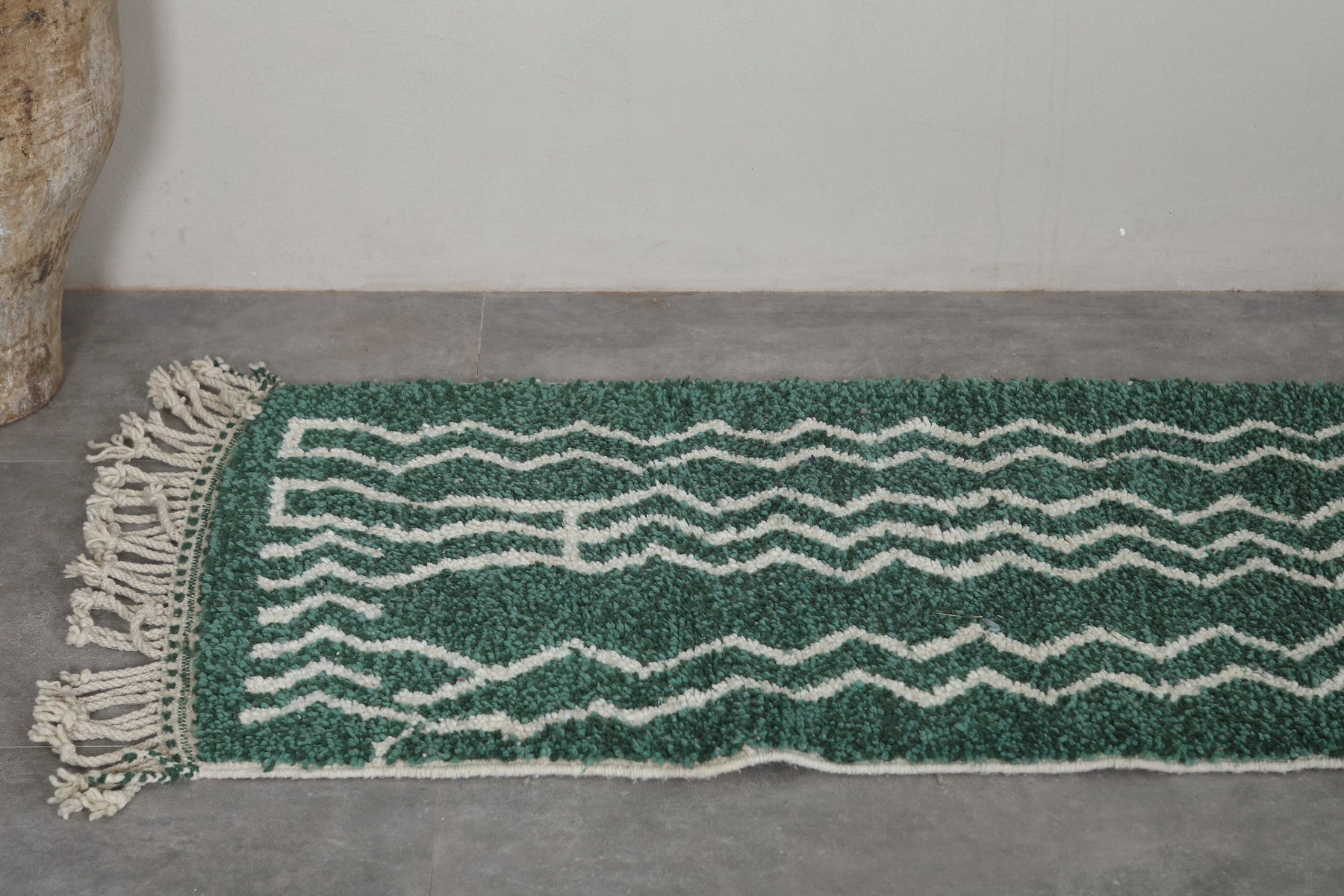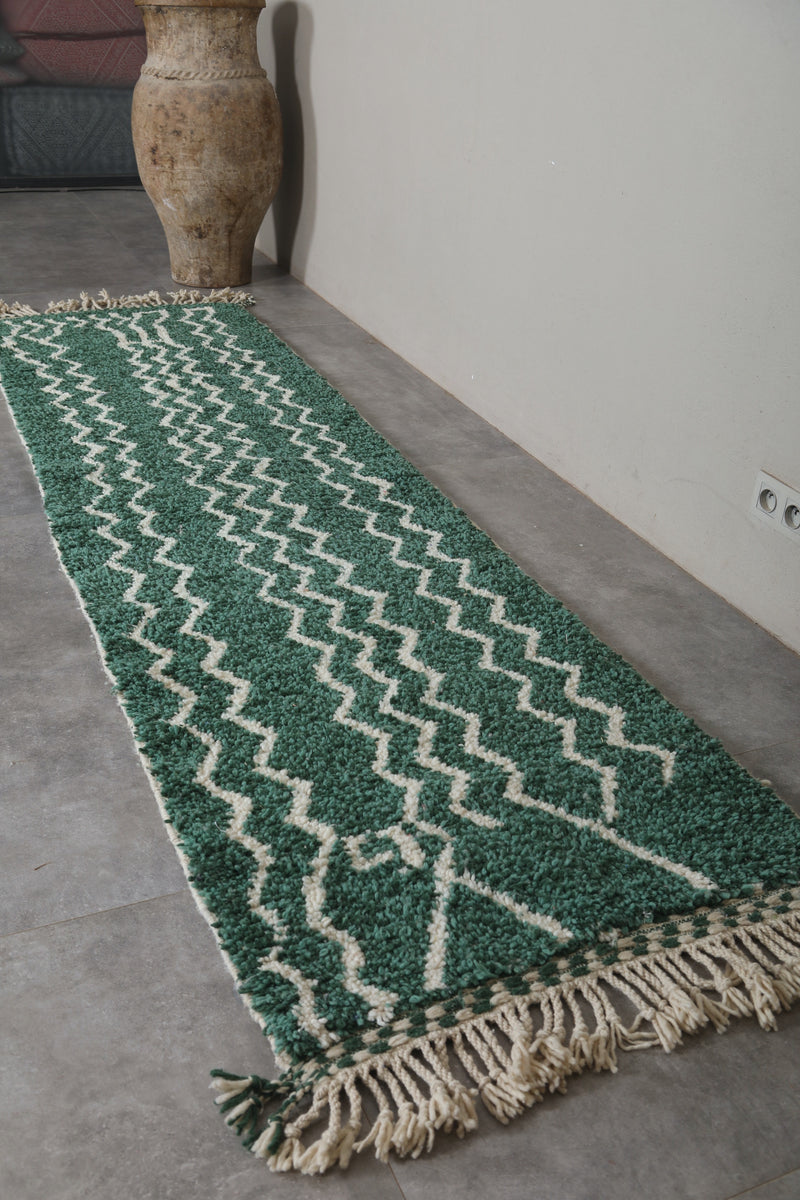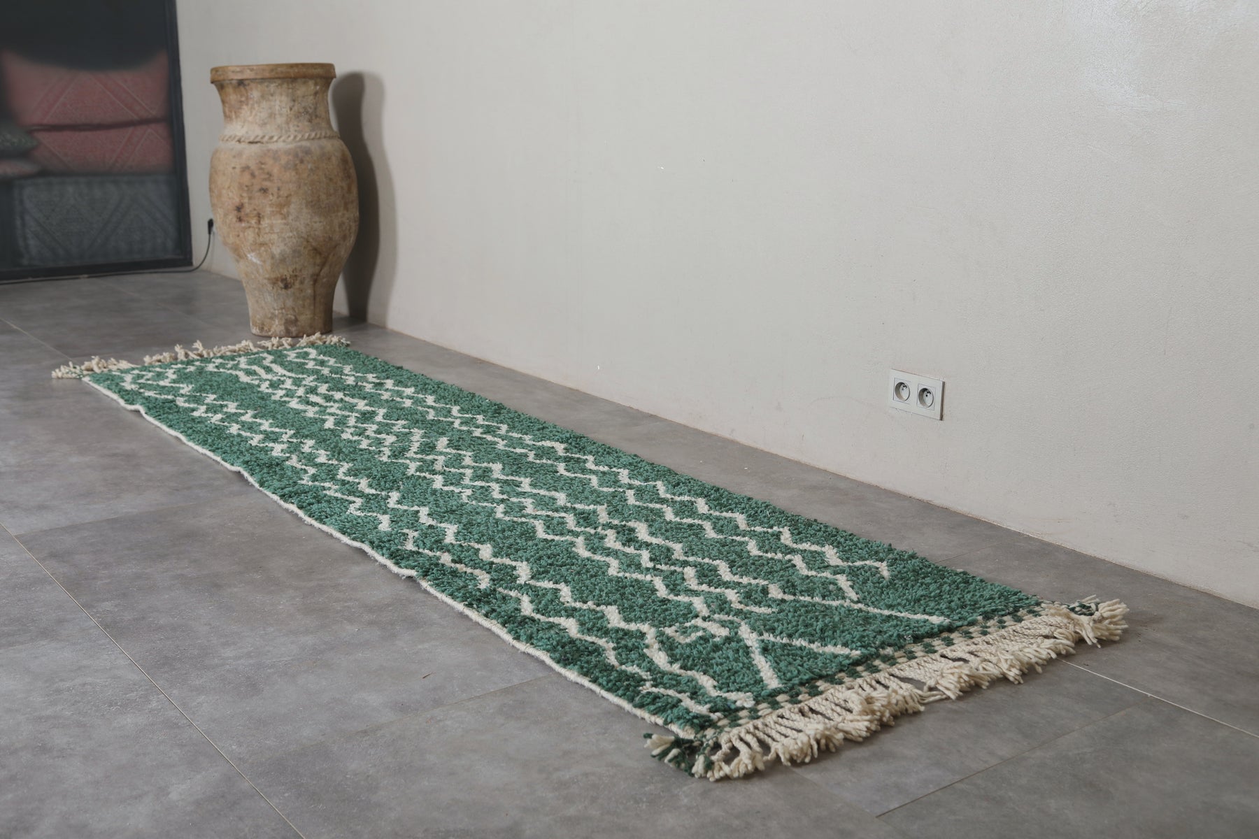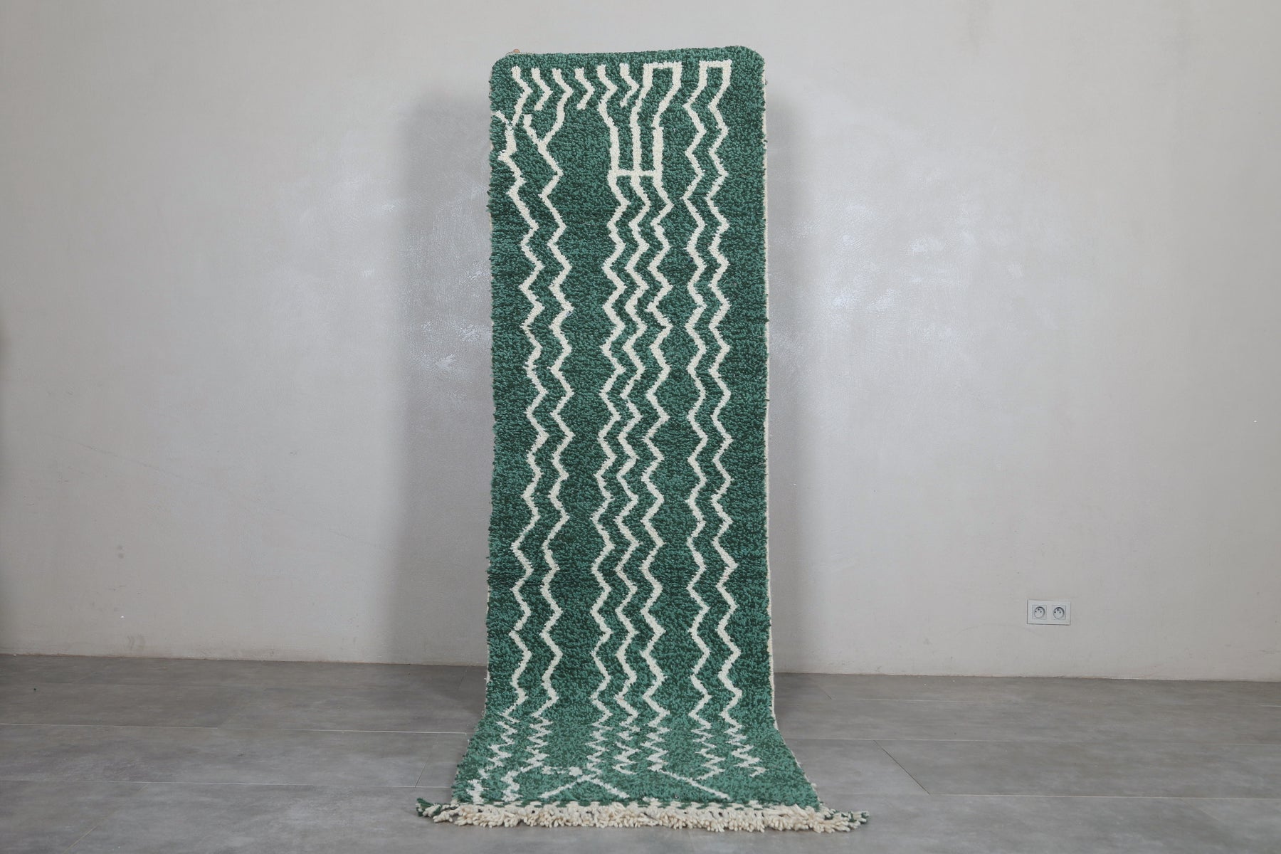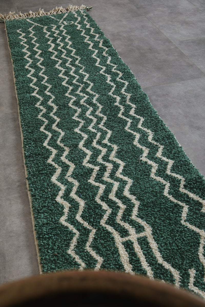 Runner Moroccan Rug - 2.7 x 9.9 ft | Handwoven Green Zigzag Design