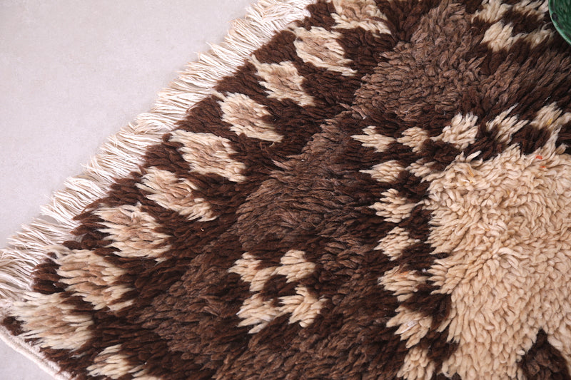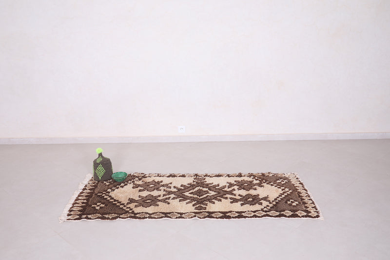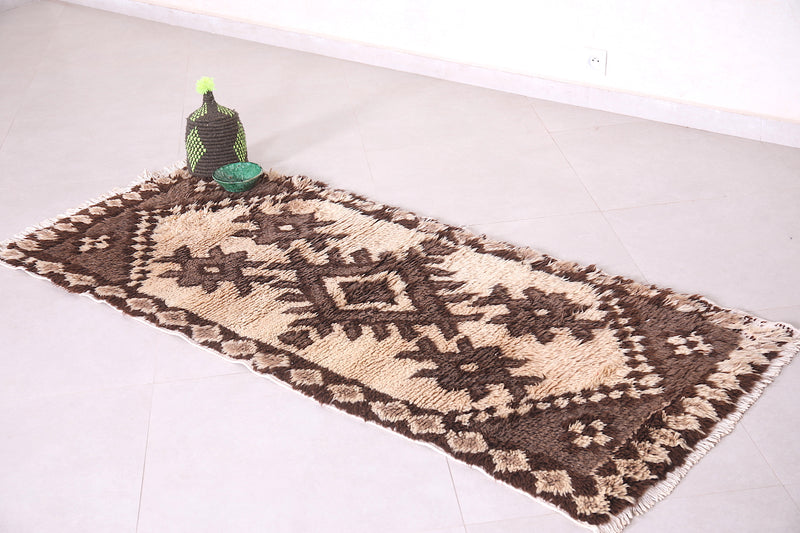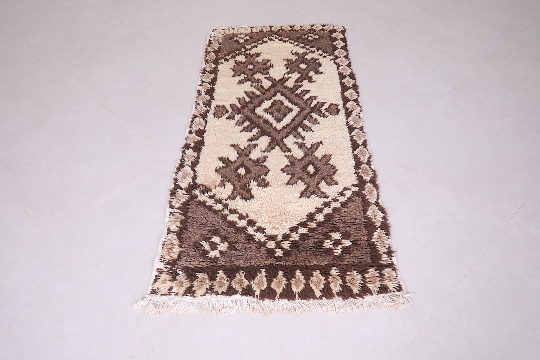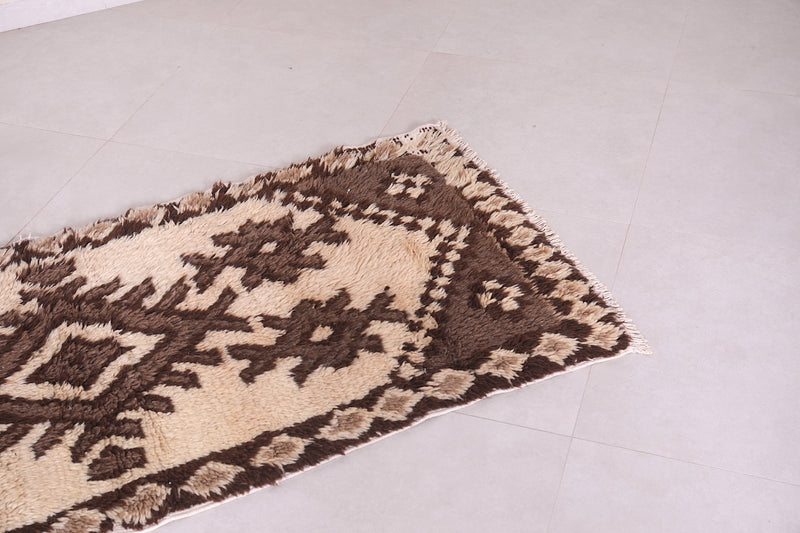 Bring warmth and tradition to your space with this Runner Moroccan Rug in Beige, sized at 2.6 x 6.3 feet. Handwoven in Morocco, this rug features a neutral cream base highlighted by bold tribal motifs in rich brown tones. Its cozy texture and timeless design make it an excellent addition to hallways, entryways, or beside a bed.