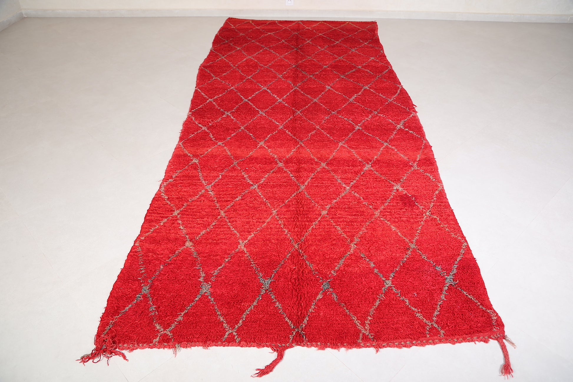 Transform your hallway or long space with this handmade red Azilal runner rug, measuring an impressive 5.1 x 12.3 feet. Featuring a classic Moroccan diamond pattern, this rug adds elegance and warmth to your décor. Meticulously crafted with vibrant red hues, it brings a cozy and bold touch to any space. Perfect for those who appreciate authentic, artisan-made pieces.