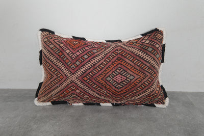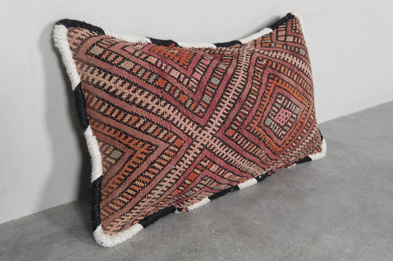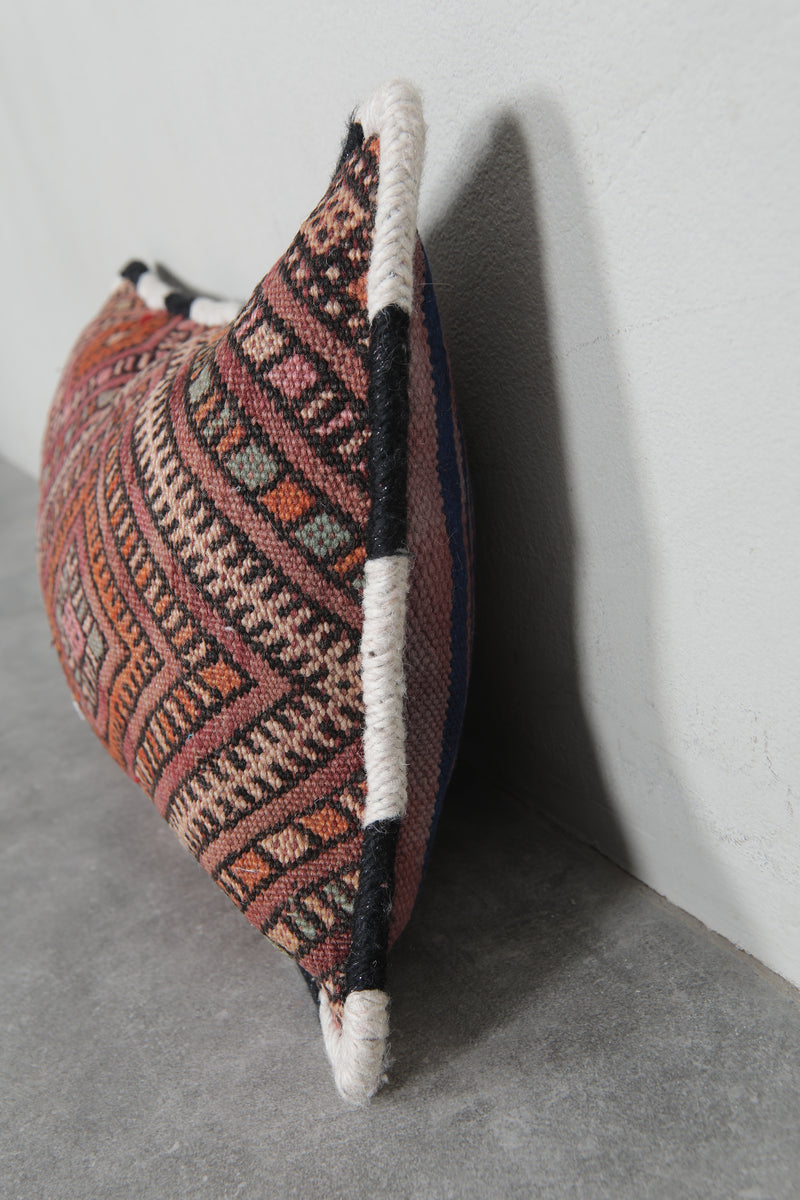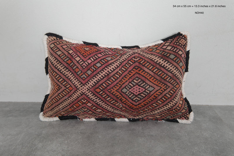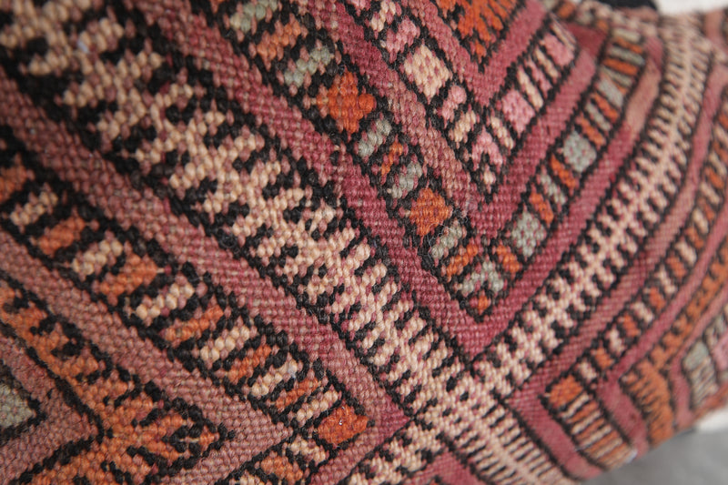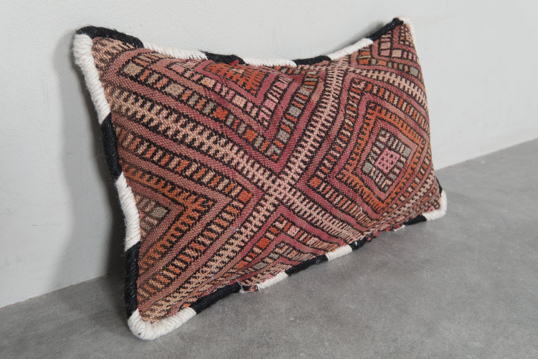 Add a touch of Moroccan tradition to your decor with this handwoven pillow. Featuring earthy tones of terracotta, pink, and beige, the intricate diamond motifs create a bold centerpiece. With its timeless design, this pillow is perfect for enhancing sofas, chairs, or beds. Dimensions: 13.3 x 21.6 inches.