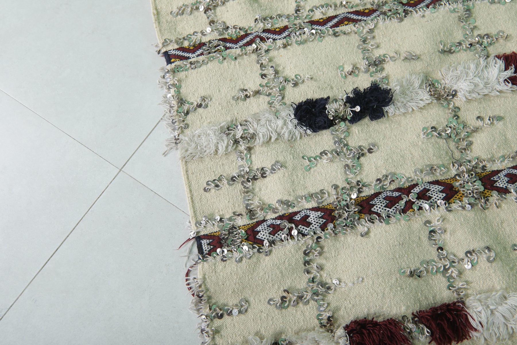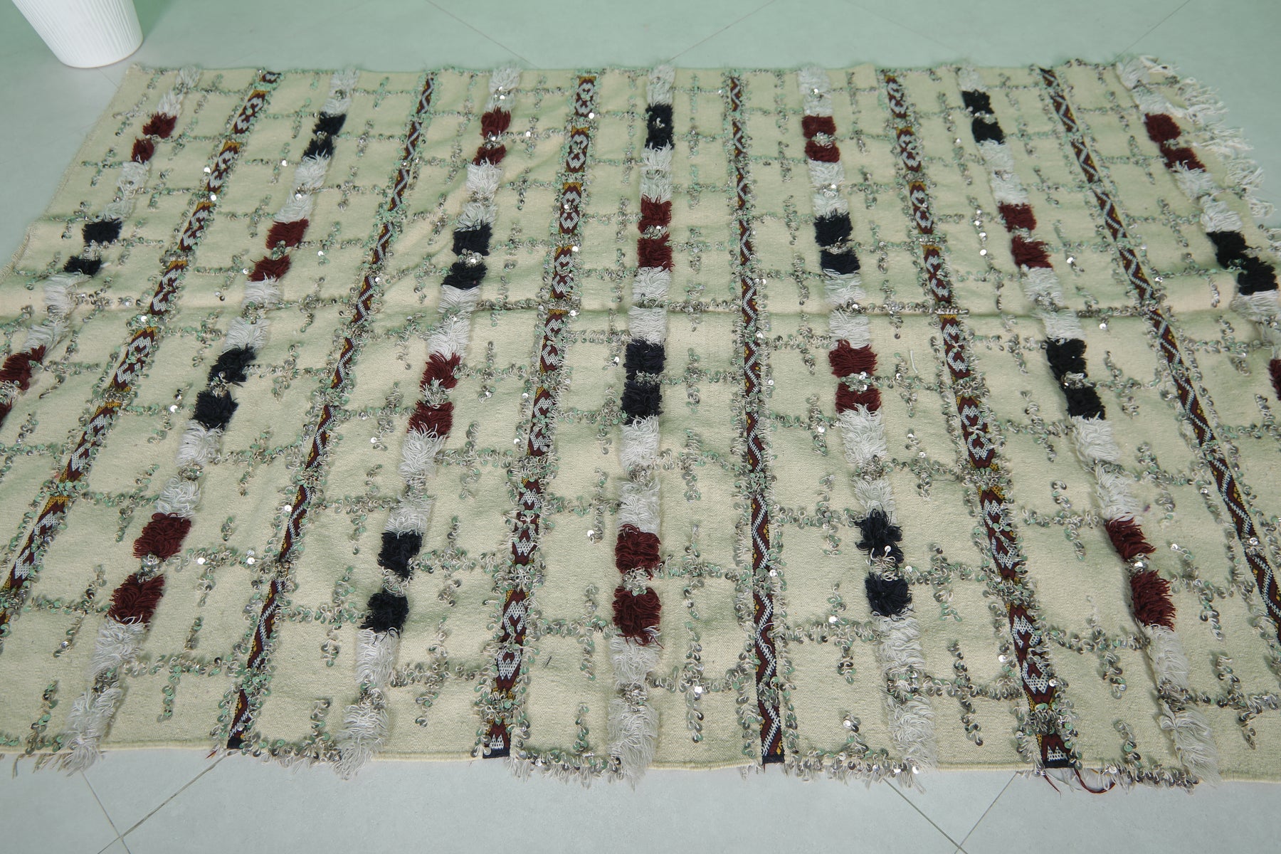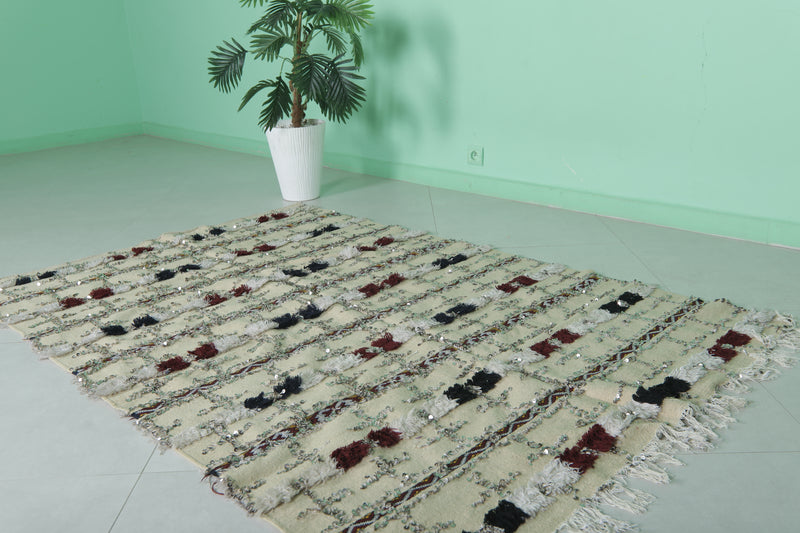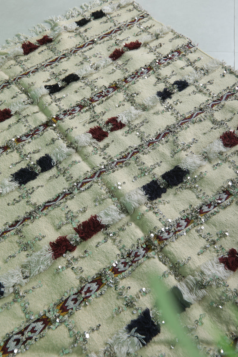 Sequins Wedding Berber Blanket - 4.2 FT x 6.4 FT | Handmade Moroccan Rug