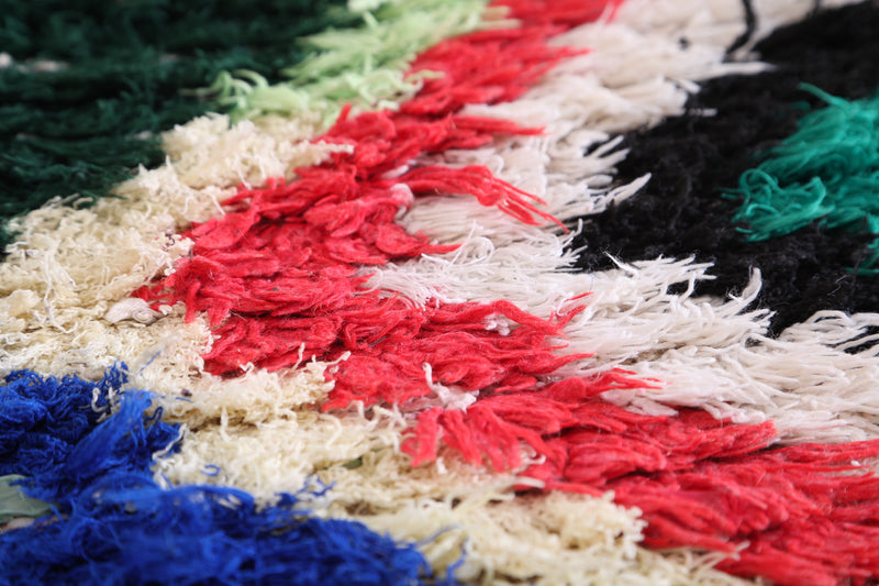 Add bold rhythm and texture to your home with this Shaggy Handmade Moroccan Rug (2.7 x 5.3 FT), a handcrafted piece featuring wave-like patterns and lush shag — perfect for boho spaces craving movement and color.
