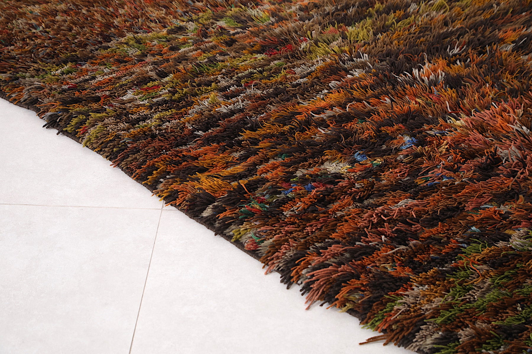 - Shaggy texture with deep hues of brown, orange, red, and black.
