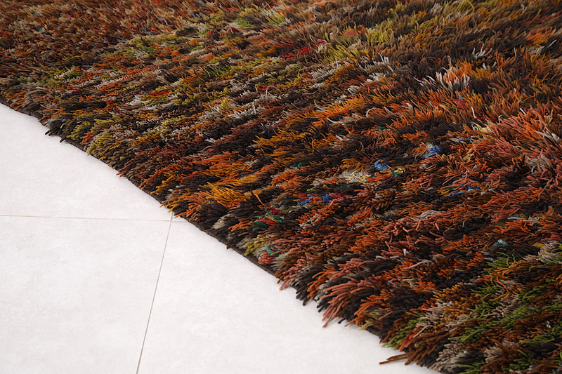 Add rich texture and warmth to your space with this Shaggy Moroccan Runner Rug, measuring 4.8 x 14.8 feet. Handwoven in Morocco, this one-of-a-kind Berber rug features a high-pile shag design, adorned with symbolic tribal motifs and a bold, earthy color palette. Perfect for long hallways, large entryways, or as a luxurious accent in boho-inspired interiors.