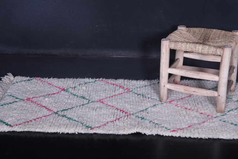 Elevate your hallway or small space with this charming Azilal rug, meticulously handcrafted in Morocco. Measuring 2 x 4.1 feet, this petite treasure features a soft cream base adorned with vibrant green and pink diamond patterns, creating a delightful pop of color. Perfect for narrow spaces or as a cozy accent piece. Add a touch of Moroccan charm to your home with this delightful small Azilal rug!