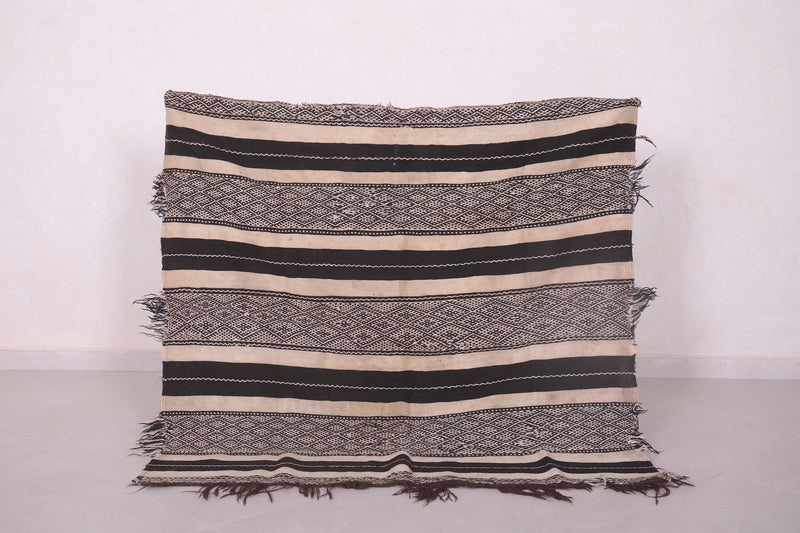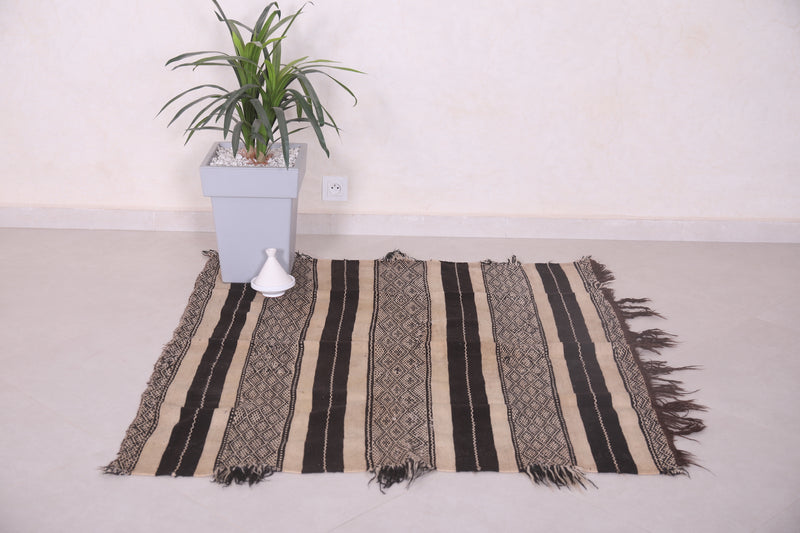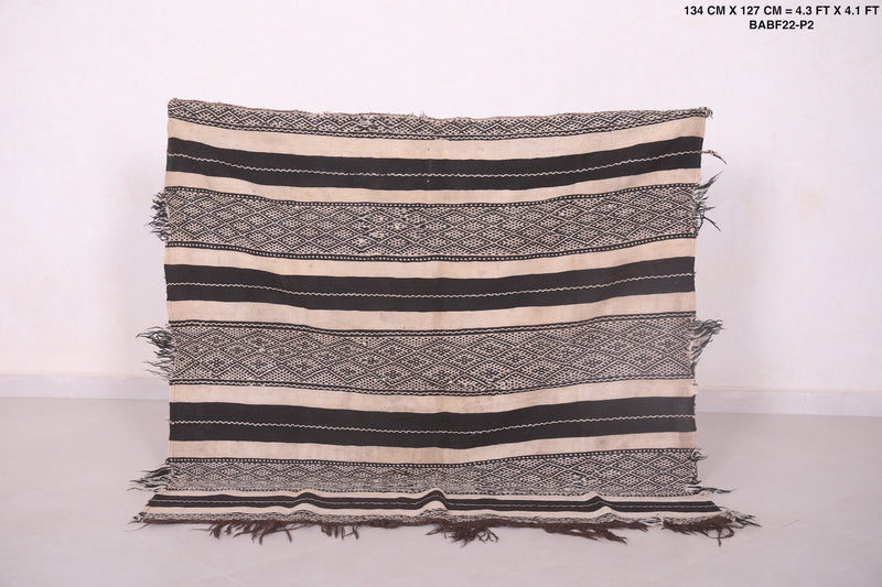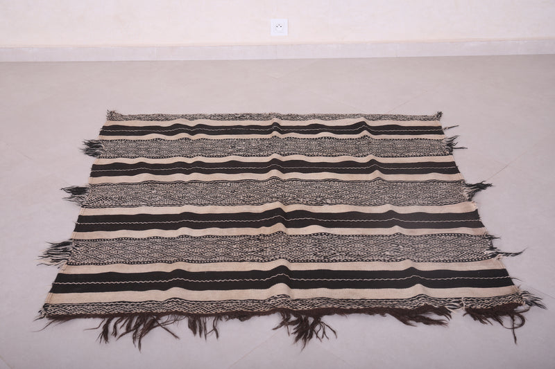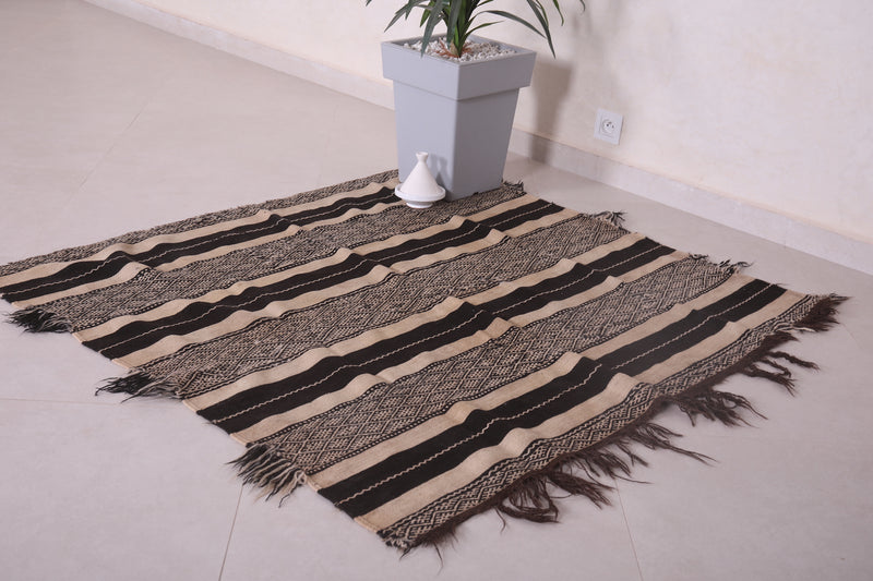 Small Handwoven Kilim Rug 4.3 FT x 4.1 FT - Classic Black & White Design