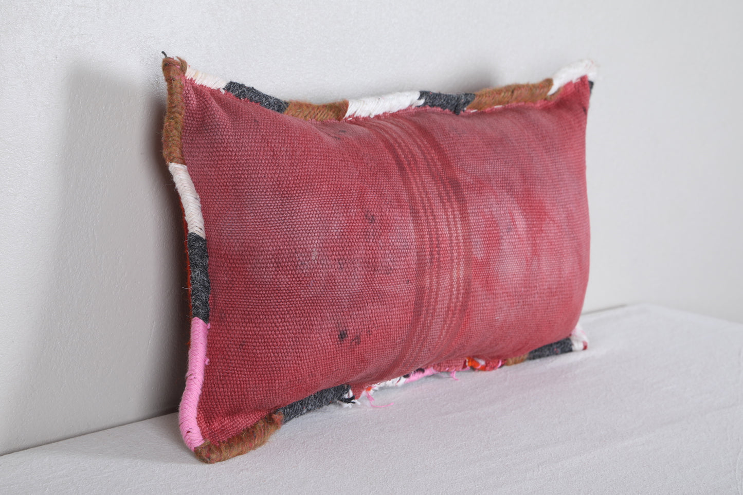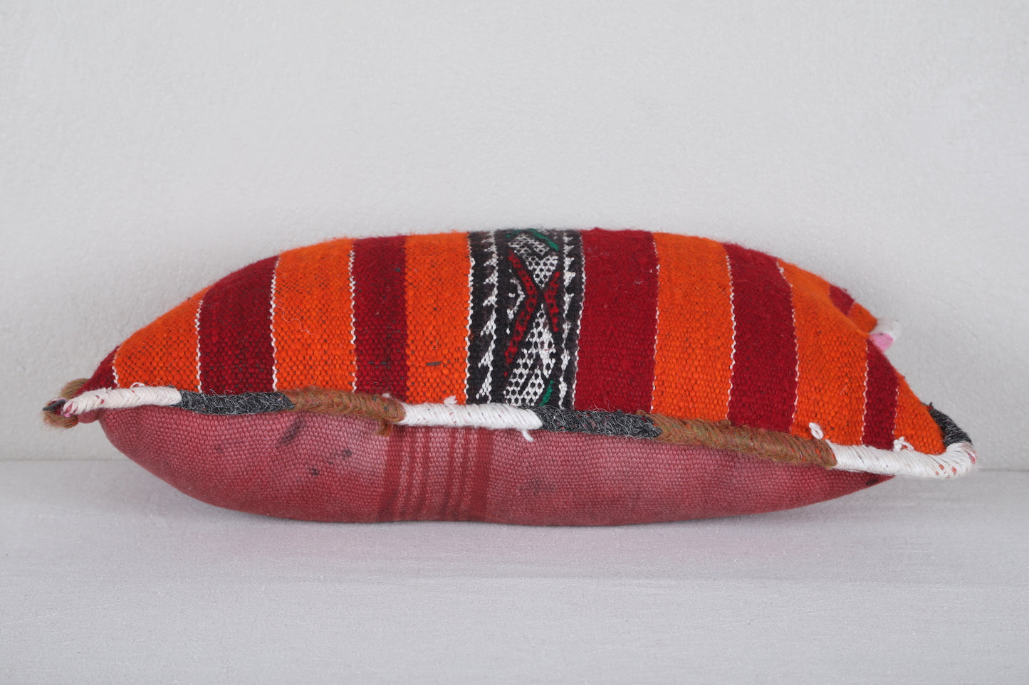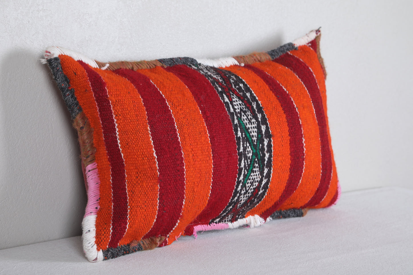 Add vibrant color and authentic Moroccan craftsmanship to your home with this handwoven Moroccan Pillow, sized at 13.3 x 22.4 inches (34 CM x 57 CM). Featuring bold stripes in rich red and orange tones, accented with a detailed embroidered center panel, this pillow brings warmth, texture, and global charm to any space. Whether placed on a sofa, bench, or bed, it’s a statement piece with timeless appeal.