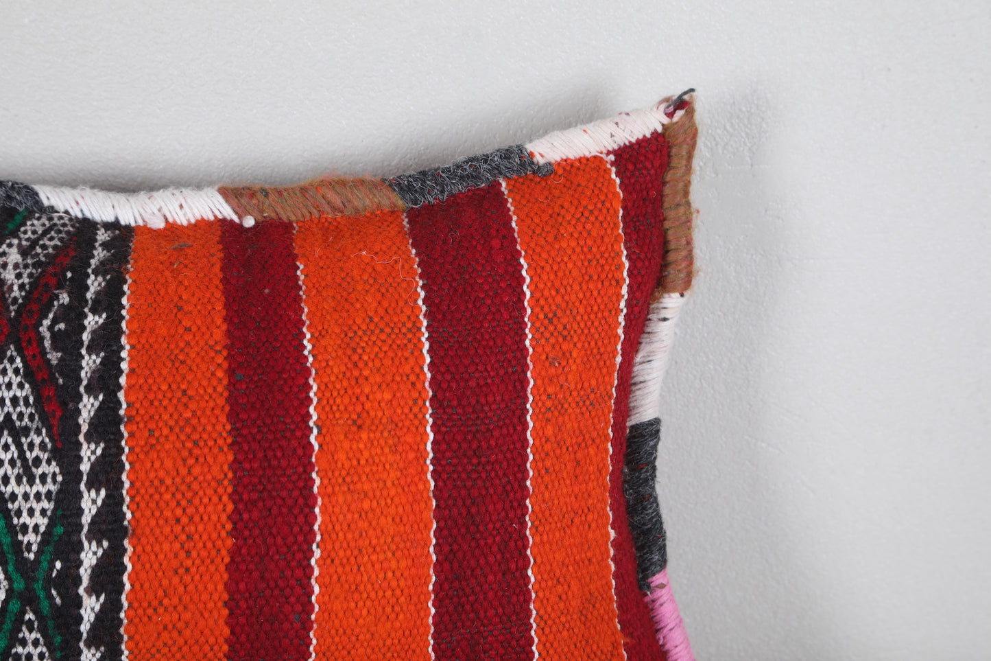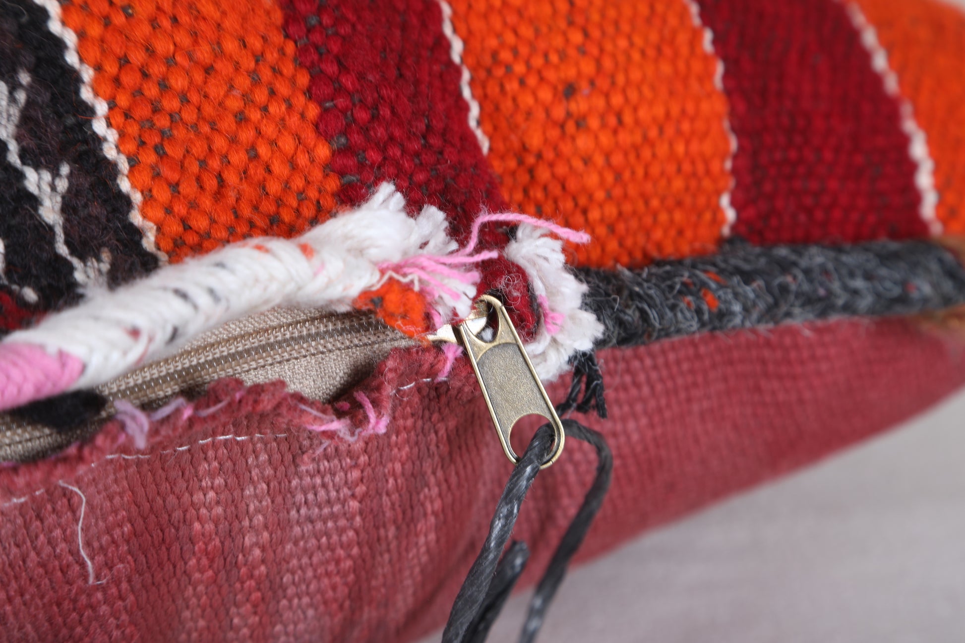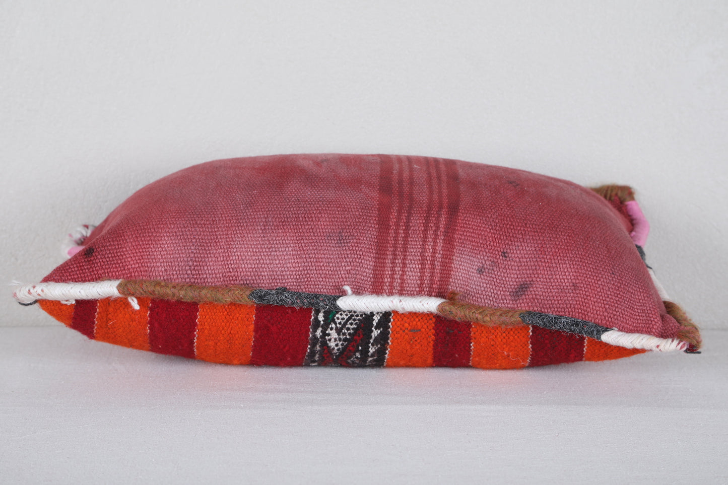 Add vibrant color and authentic Moroccan craftsmanship to your home with this handwoven Moroccan Pillow, sized at 13.3 x 22.4 inches (34 CM x 57 CM). Featuring bold stripes in rich red and orange tones, accented with a detailed embroidered center panel, this pillow brings warmth, texture, and global charm to any space. Whether placed on a sofa, bench, or bed, it’s a statement piece with timeless appeal.