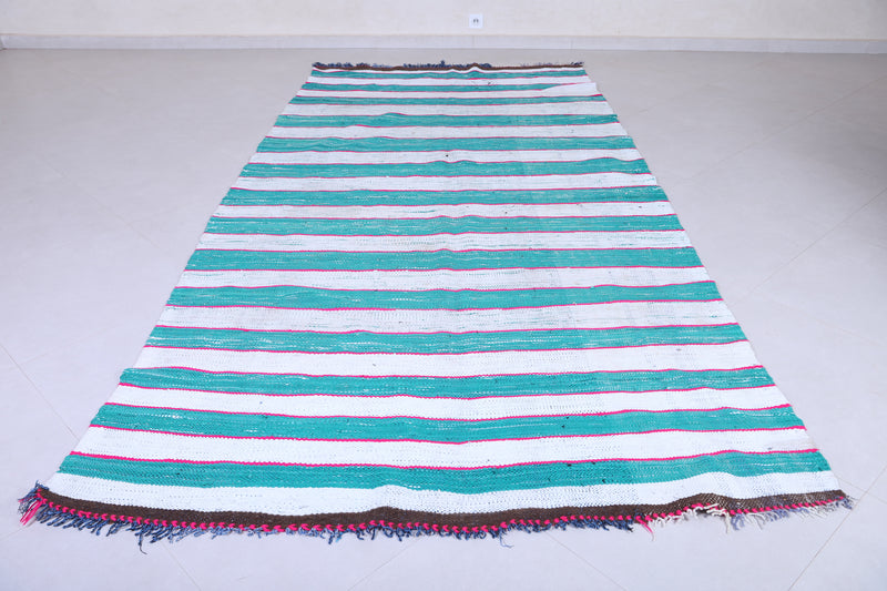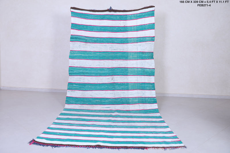 Striped Moroccan Kilim Blue 5.4 X 11.1 Feet